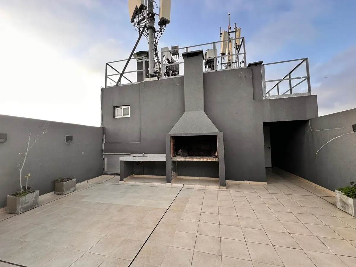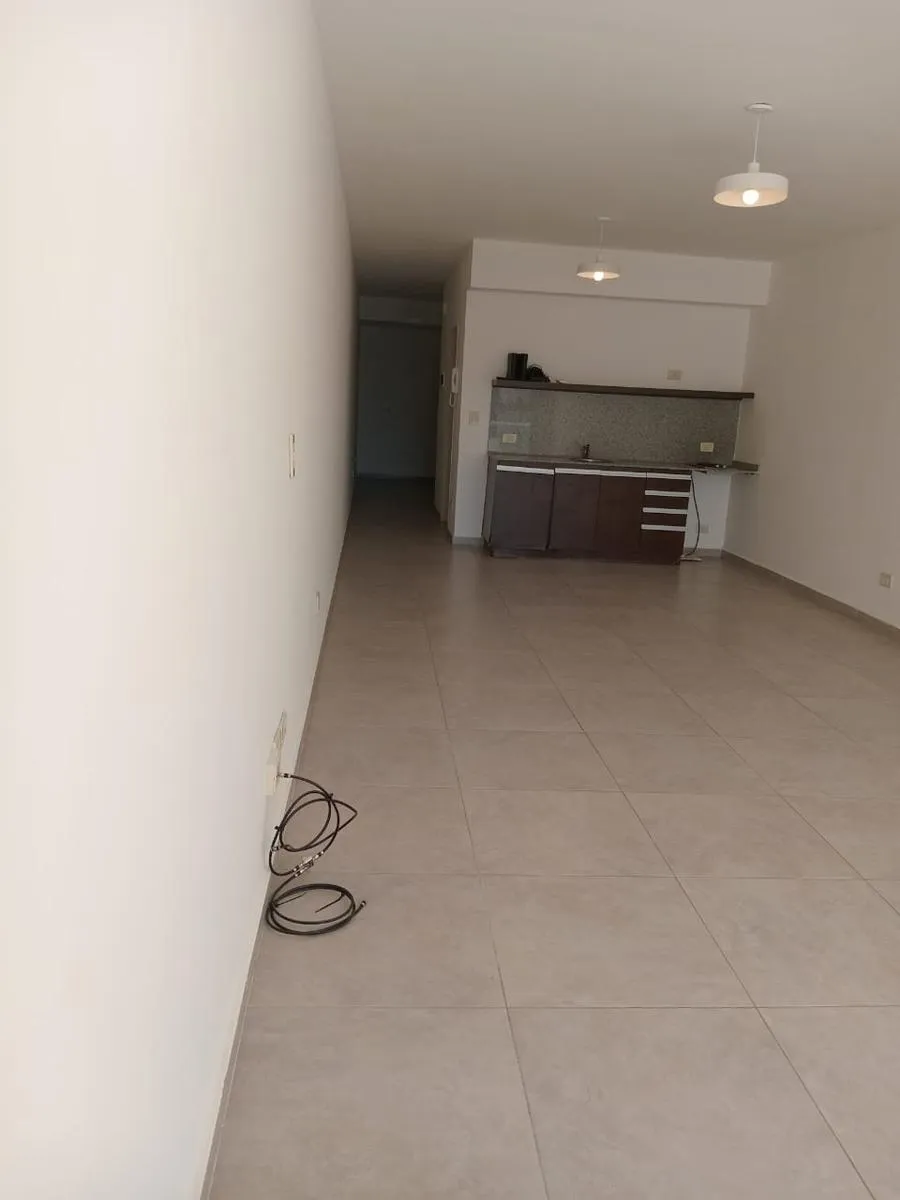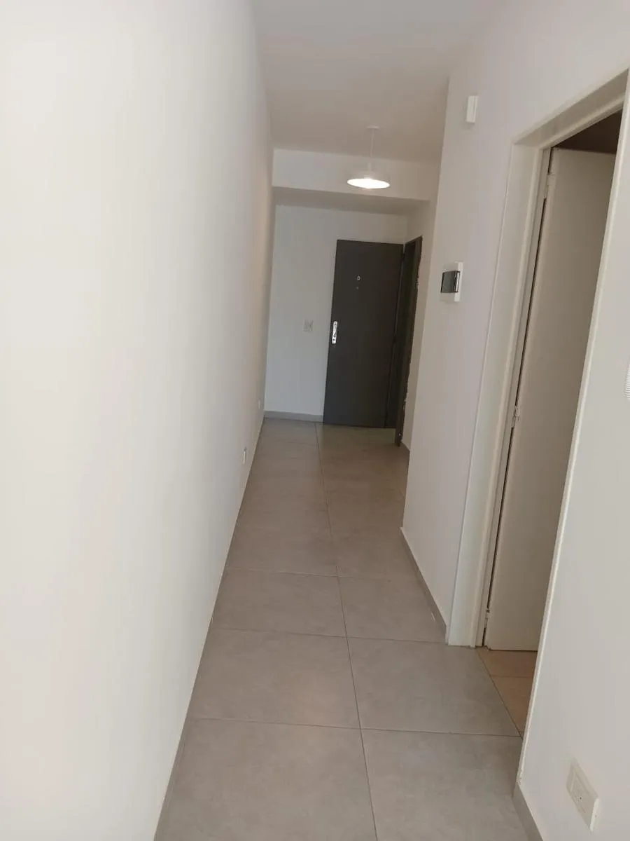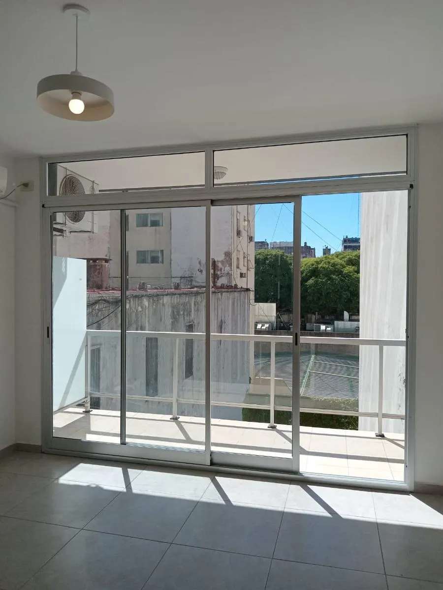Apartamento monoambiente com 1 ambiente, apto profissional, com hall de entrada. Área principal com piso cerâmico branco e uma janela com acesso a varanda corrida; orientação norte. Cozinha americana com bancada de granito cinza, armários inferiores com alacenas e cooktop elétrico de 2 bocas. Banheiro completo com vanity e banheira, além de ar-condicionado split frio e quente. Condomínio inclui AYSA. Prédio de poucos anos com terraço de uso comum, churrasqueira e lavanderia. Contrato de 2 anos,