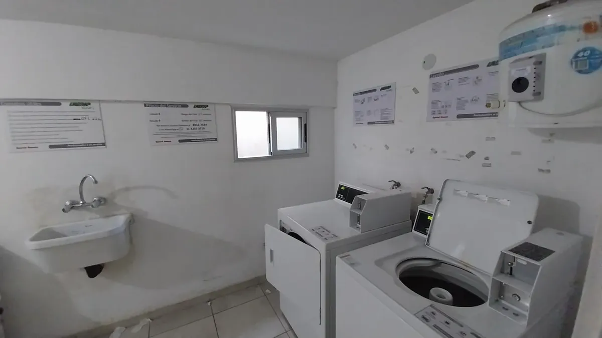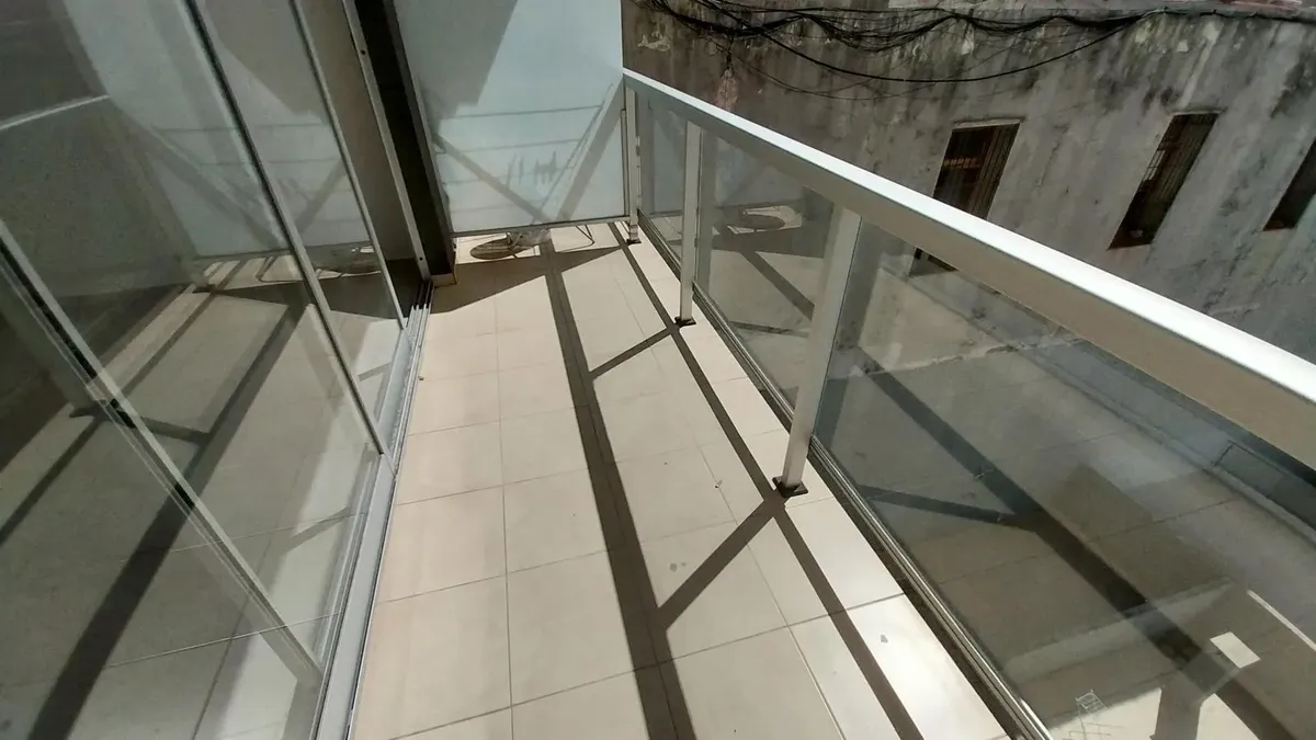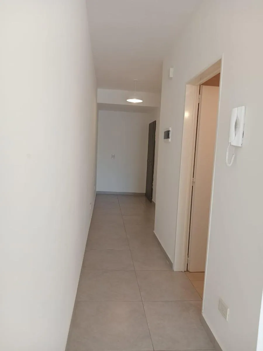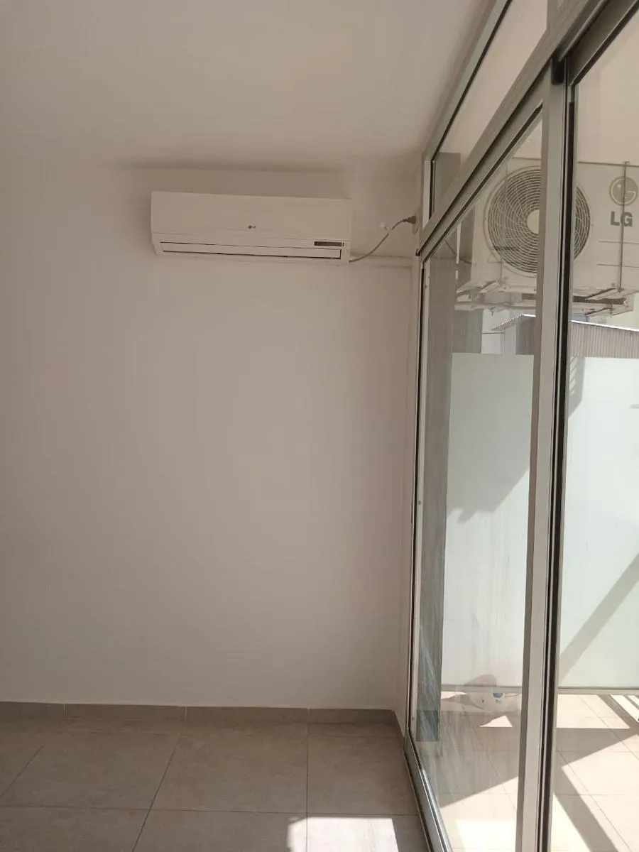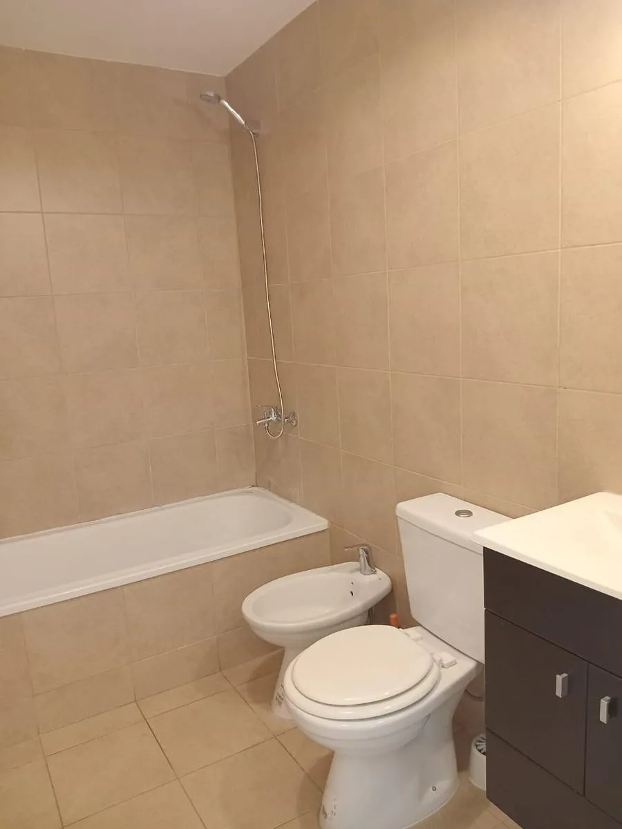 Apartamento monoambiente com 1 ambiente, apto profissional, com hall de entrada. Área principal com piso cerâmico branco e uma janela com acesso a varanda corrida; orientação norte. Cozinha americana com bancada de granito cinza, armários inferiores com alacenas e cooktop elétrico de 2 bocas. Banheiro completo com vanity e banheira, além de ar-condicionado split frio e quente. Condomínio inclui AYSA. Prédio de poucos anos com terraço de uso comum, churrasqueira e lavanderia. Contrato de 2 anos,