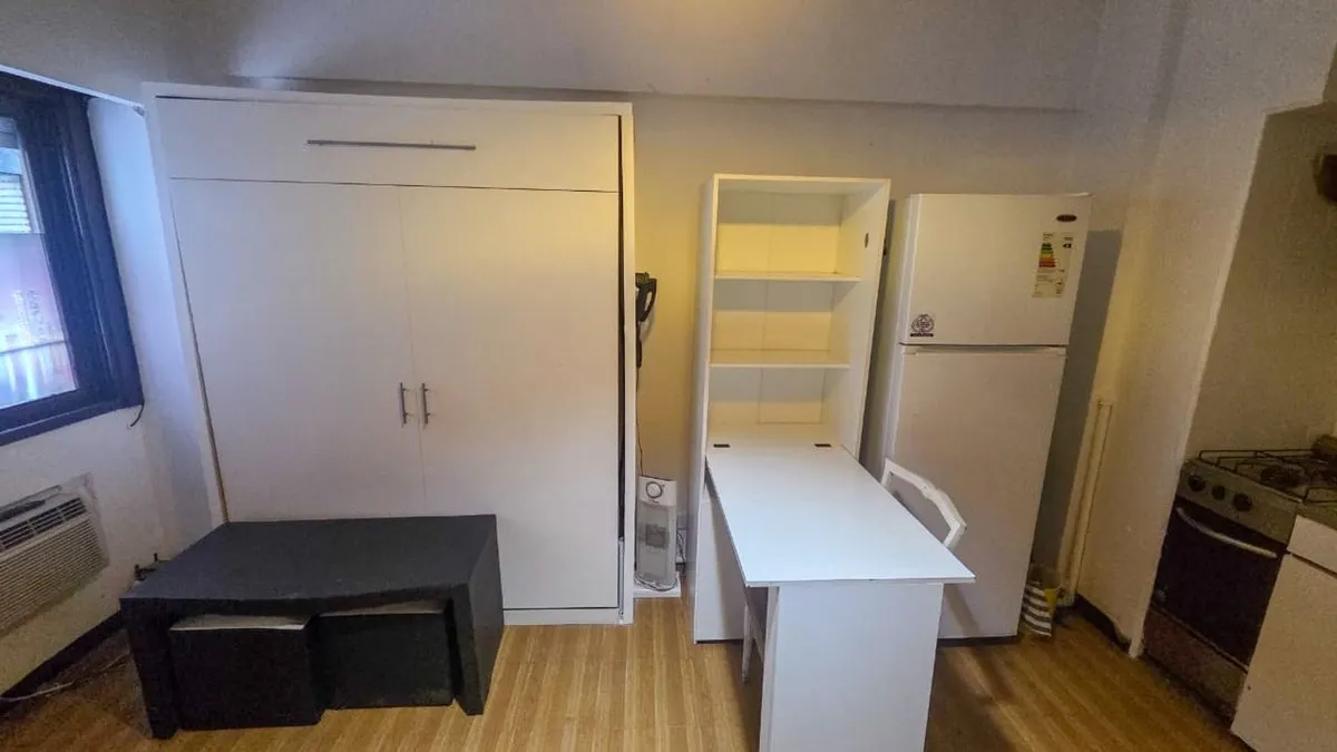 Kitnet (monoambiente) para alugar em San Nicolás, recém-pintada e pronta para ocupação. Inclui 1 ambiente com kitchenette, banheiro completo com banheira e ar-condicionado. A cozinha será reformada e entregue com a obra totalmente executada. O prédio tem segurança, acesso com chave eletrônica e água quente central, com vagas de garagem disponíveis para aluguel.