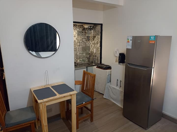 Kitnet em San Nicolás, com iluminação natural. O imóvel é mobiliado e conta com Wi-Fi, ar-condicionado, cozinha e roupas de cama. Fica a alguns minutos a pé do Obelisco e da Av. Corrientes.