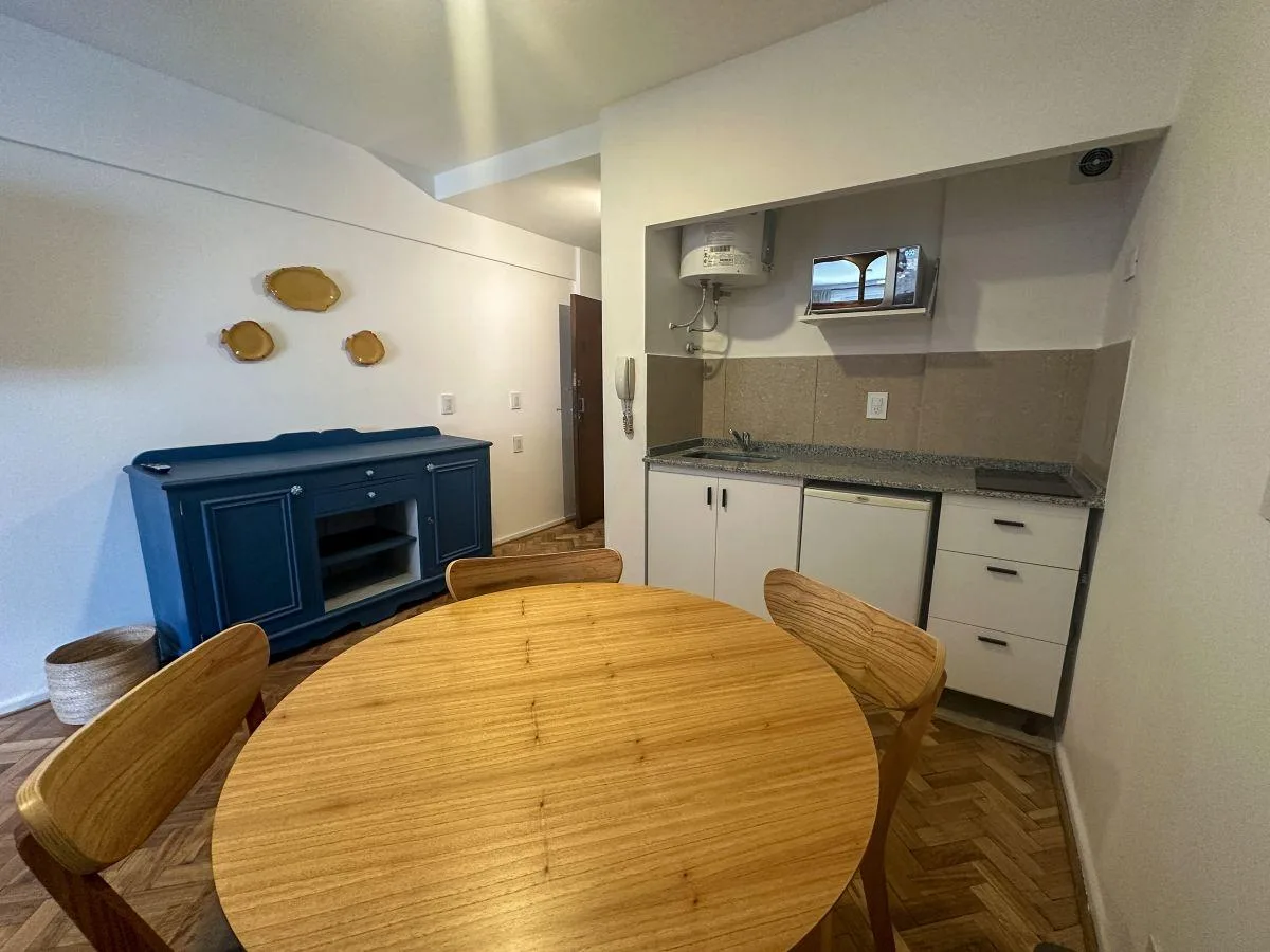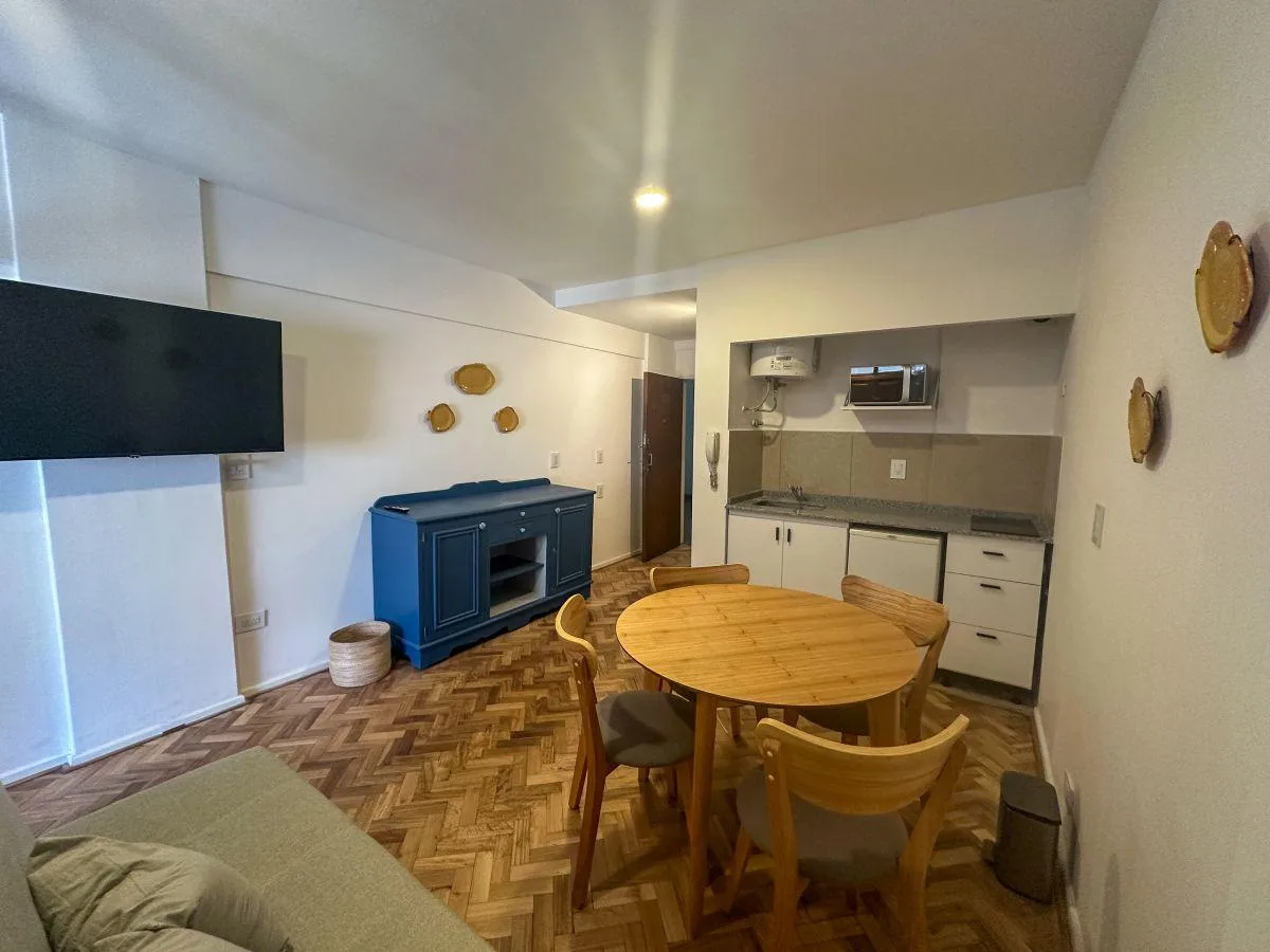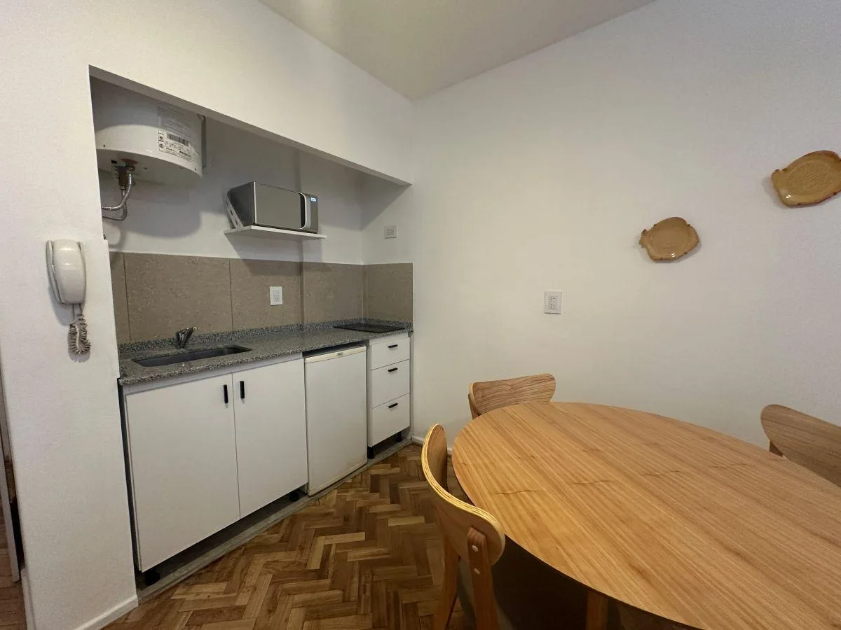 Kitnet em San Nicolás (Microcentro) com cozinha integrada. Mobiliada e equipada para estadia. O valor do aluguel é ajustado conforme inflação de acordo com o prazo de contratação e inclui Wi-Fi, luz, gás, água e ABL, além do condomínio e do equipamento do apartamento (móveis, eletrodomésticos, itens de cozinha e roupa de cama). Não são aceitos animais. É solicitado 1 mês de adiantamento e cópia de documentação.