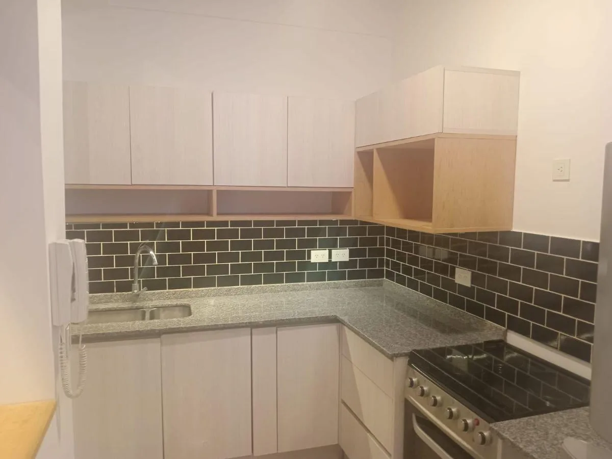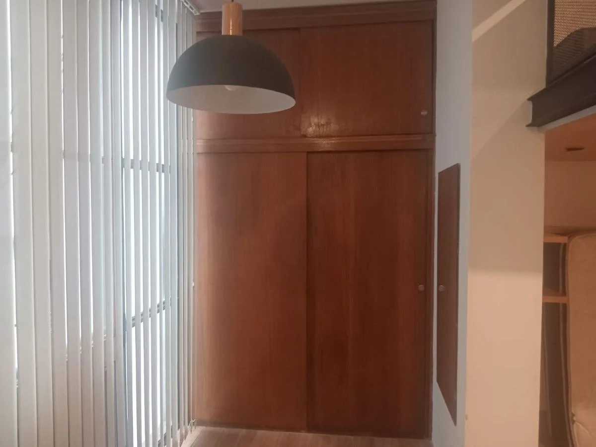 Loft com 35 m² totais no 3° B, na Av. Corrientes 1878, em Buenos Aires. A unidade tem sala integrada em dois níveis, cozinha totalmente equipada, banheiro completo e área de lavanderia; o dormitório fica em mezanino e há armário. Possui janelas com grande vão lateral com cortinas de tela e bandas verticais, piso de porcelanato, ar-condicionado frio/calor e aquecedor de água elétrico (termo-tanque), com serviços totalmente elétricos. Não há rampa para pessoas com mobilidade reduzida. As despesas