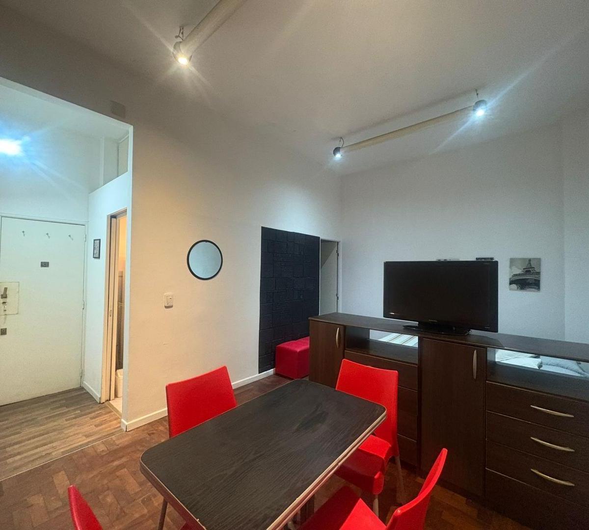 Kitnet de 23 m² em San Nicolás, com cozinha e banheiro separados. Totalmente mobiliada e equipada. O aluguel inclui água, ABL, condomínio e internet, com limite de consumo de luz de US$ 30.000. Paraná 572, disponível a partir de 27/03, por US$ 650 (pacote fechado).
