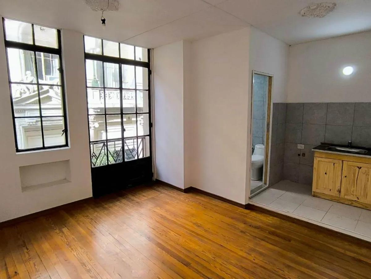 Kitnet para alugar com 23 m² cobertos, no 1º andar, de frente para a rua e orientação para leste. Inclui cozinha com móveis sob e sobre a bancada, área principal com armários embutidos e 1 banheiro completo. Está localizada na rua San Martín, entre Sarmiento e Teniente General Juan Domingo Perón, em San Nicolás.