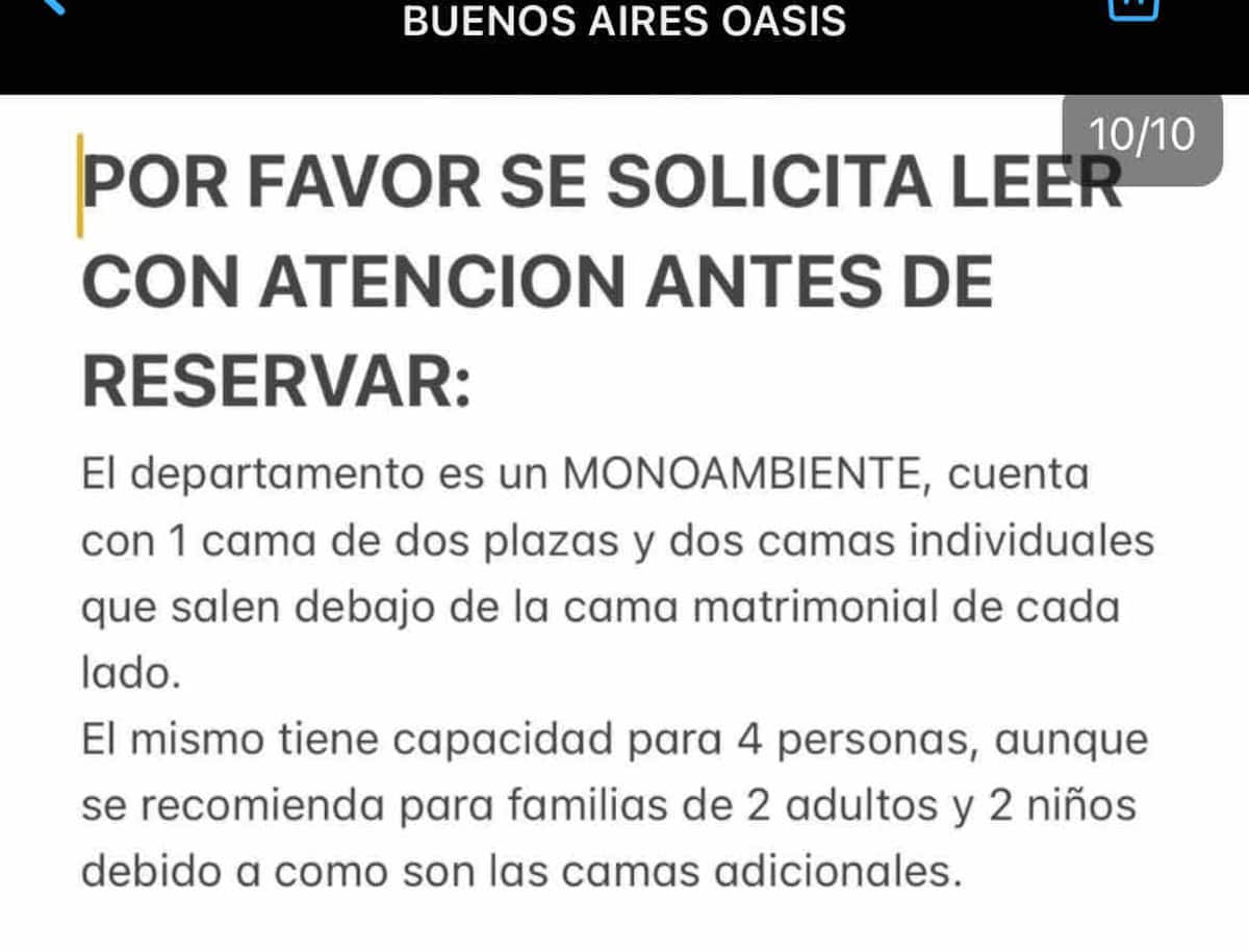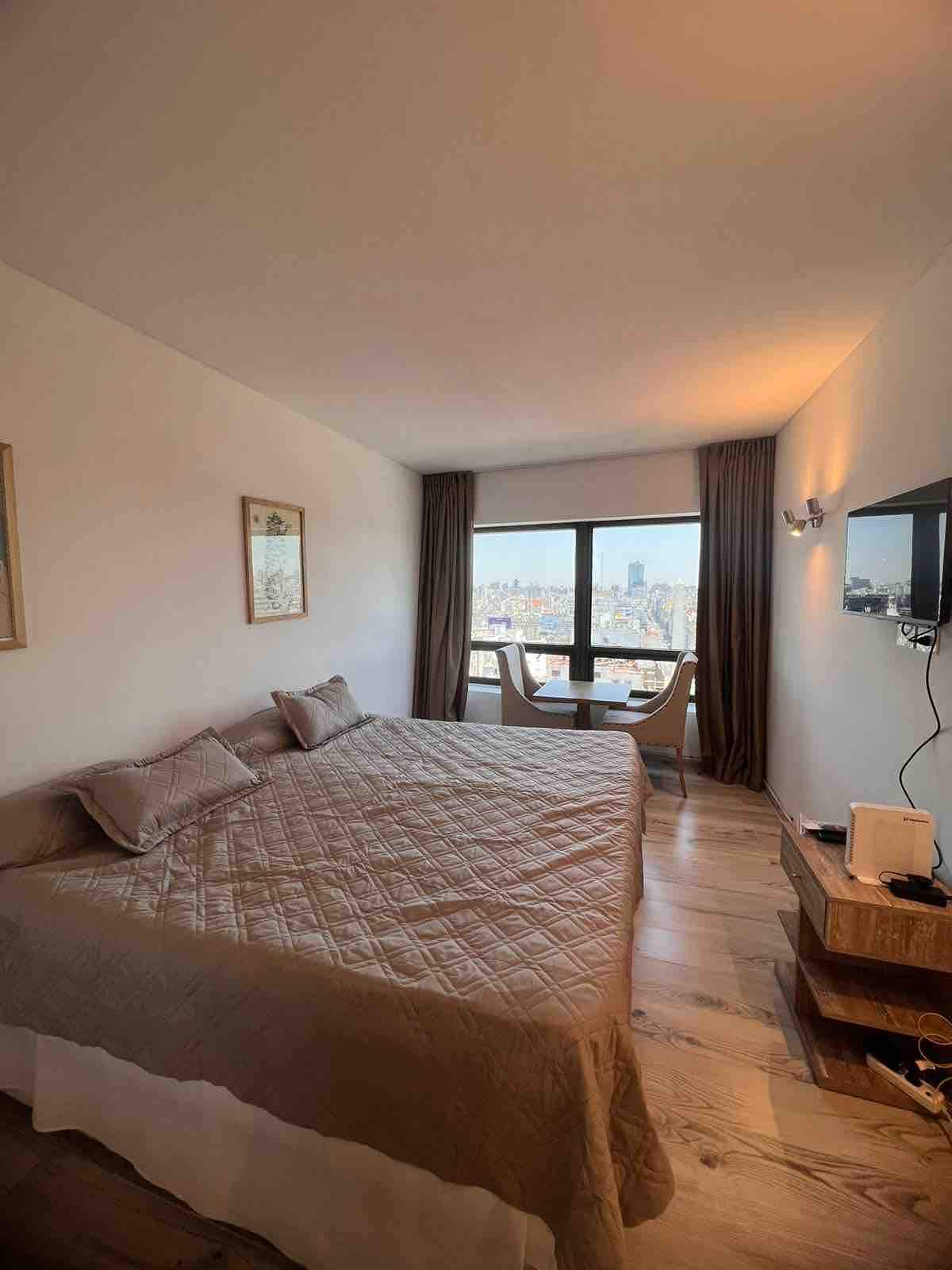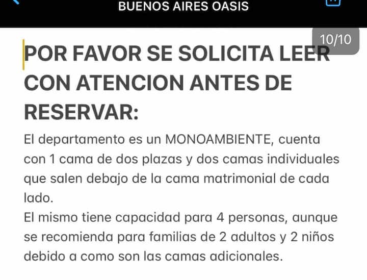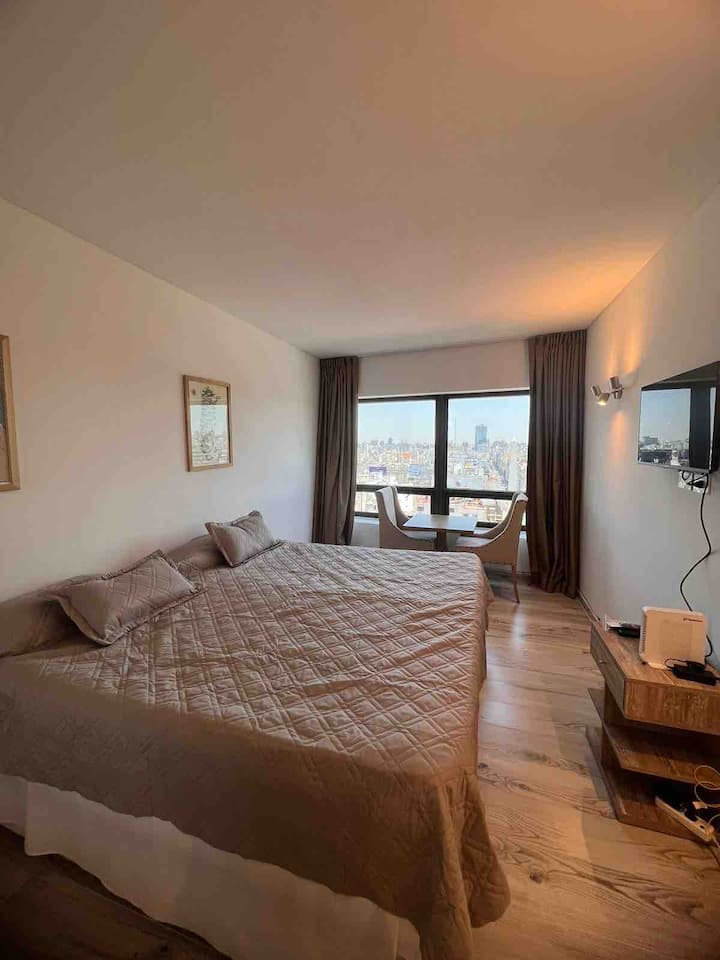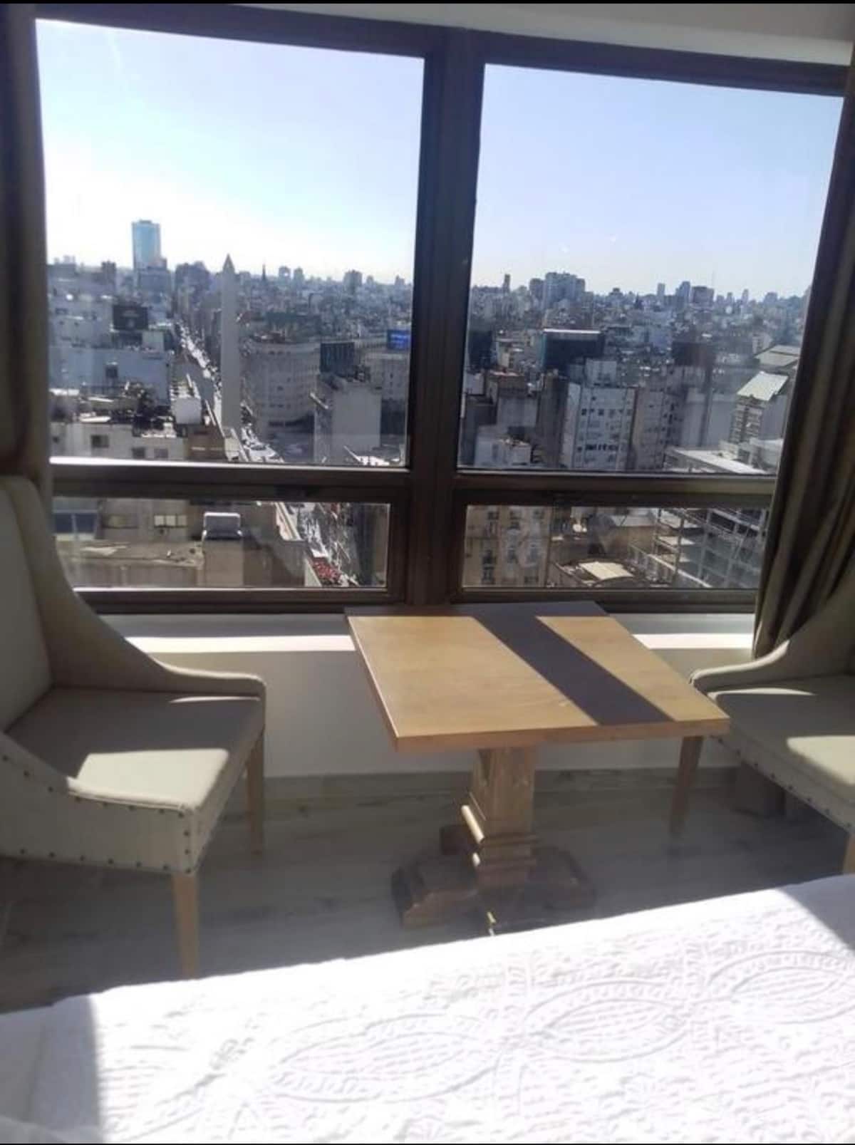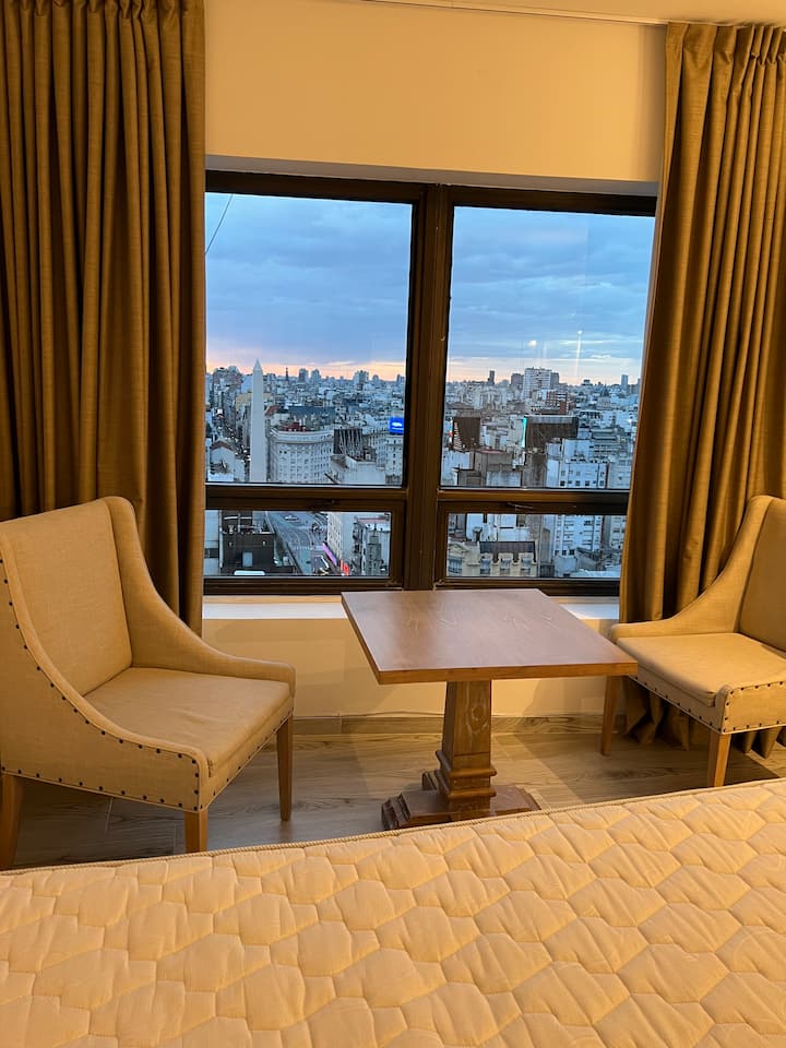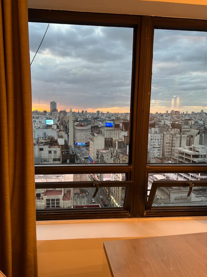 Apartamento do tipo kitnet em San Nicolás, em Buenos Aires. A unidade é preparada para até 4 pessoas; para 4 adultos pode ficar pequena, sendo recomendada a composição de 2 adultos e 2 menores. A descrição menciona vista para o Obelisk.