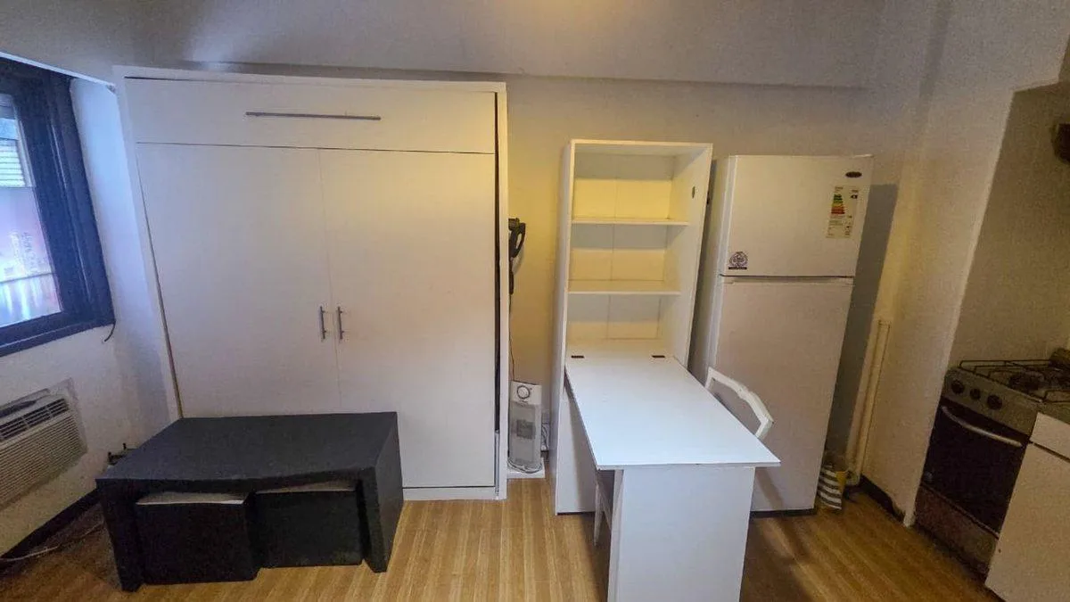Kitnet (1 ambiente) com kitchenette e fogão elétrico em San Nicolás, apto para uso profissional. Imóvel recém-pintado, com banheiro completo com banheira e armário embutido. Possui ar-condicionado de janela (não funciona); a cozinha será reformada e entregue com a obra totalmente executada. O prédio tem segurança 24 horas, porteiro residente, três elevadores (dois principais e um de serviço), acesso por chave eletrónica e água quente central. Vagas de garagem podem ser alugadas mediante disponib