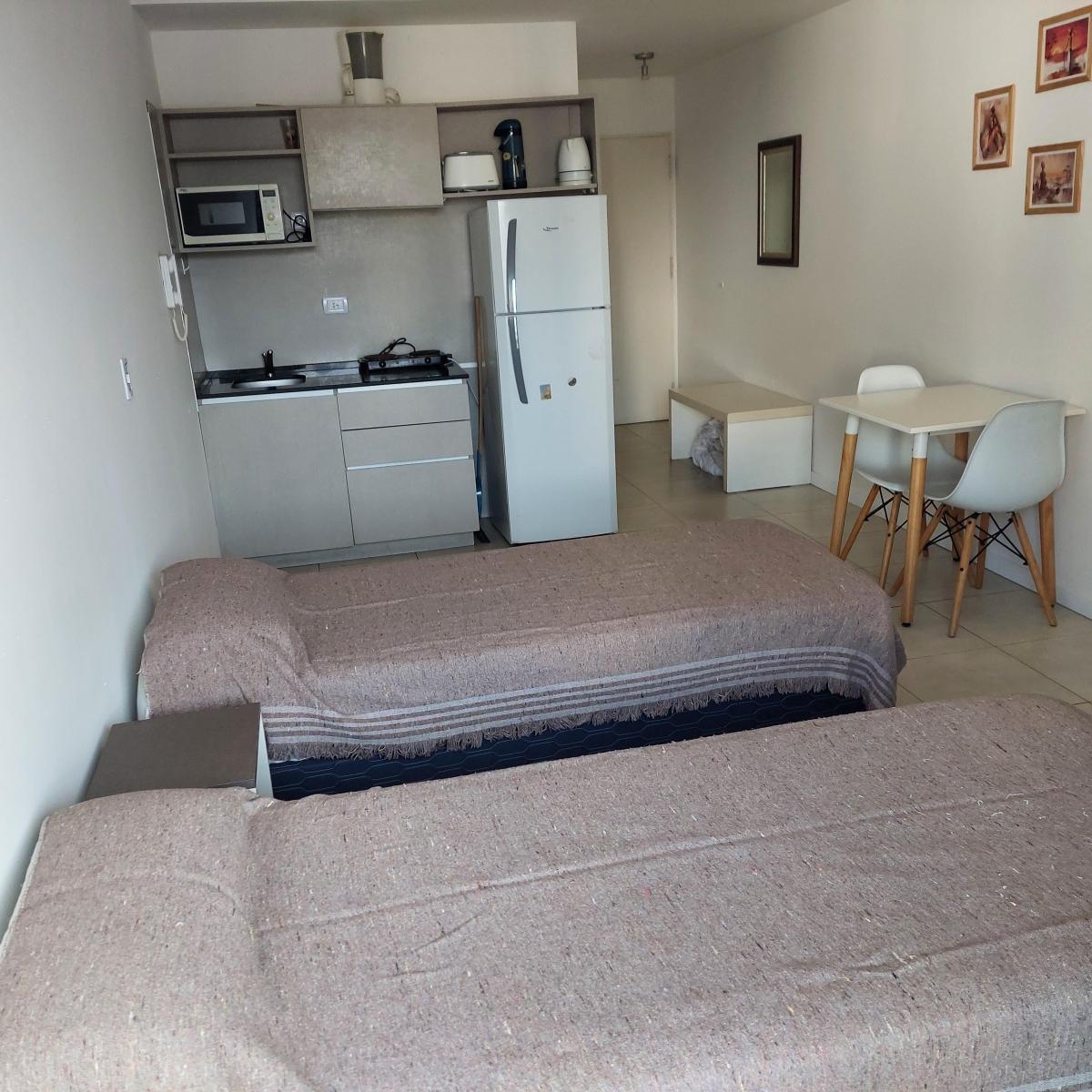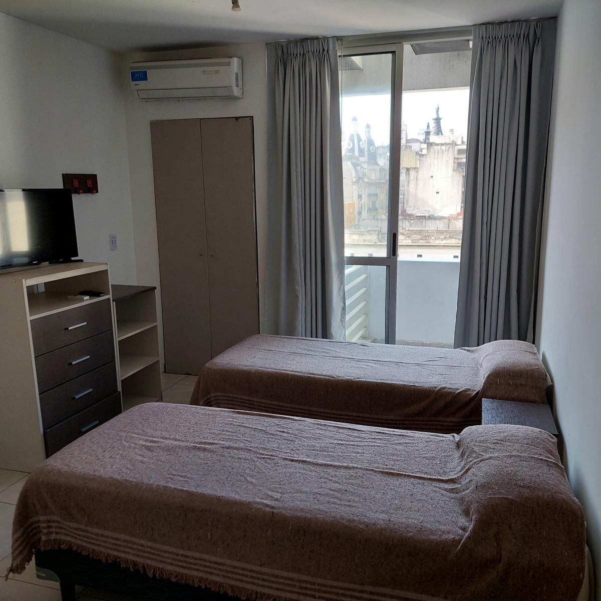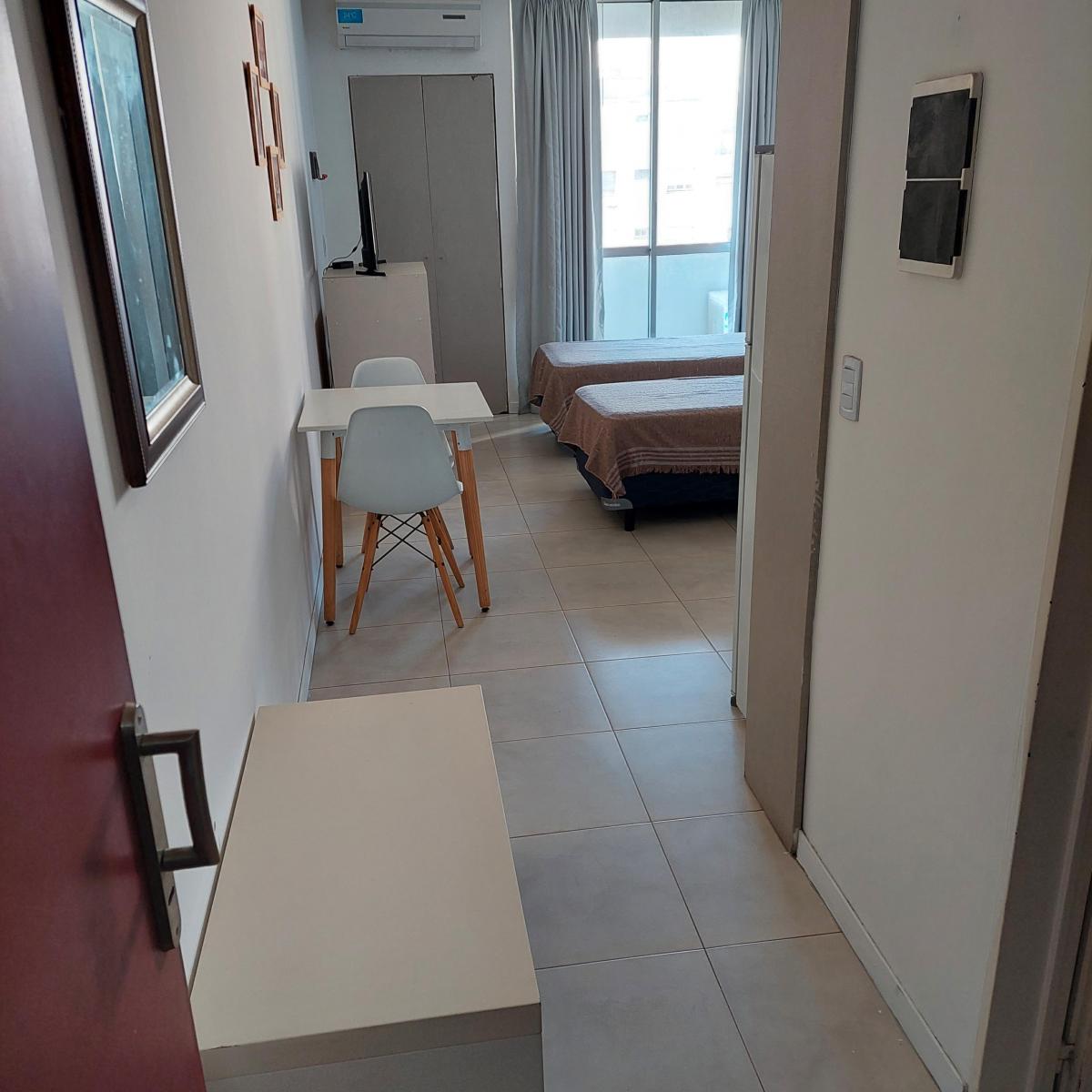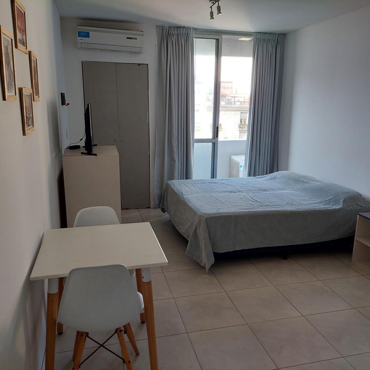 Kitnet mobiliada em San Nicolás, em prédio com lavanderia, piscina e segurança 24 h. No térreo há bar e restaurante. A vaga de garagem é opcional em subsolo e não está incluída no preço. O aluguel soma à conta de luz; o valor inclui condomínio e internet. O contrato pode ser trimestral, semestral ou anual, com reajustes trimestrais.