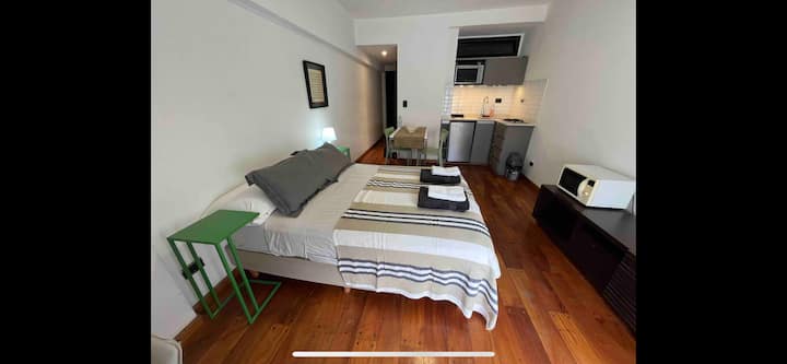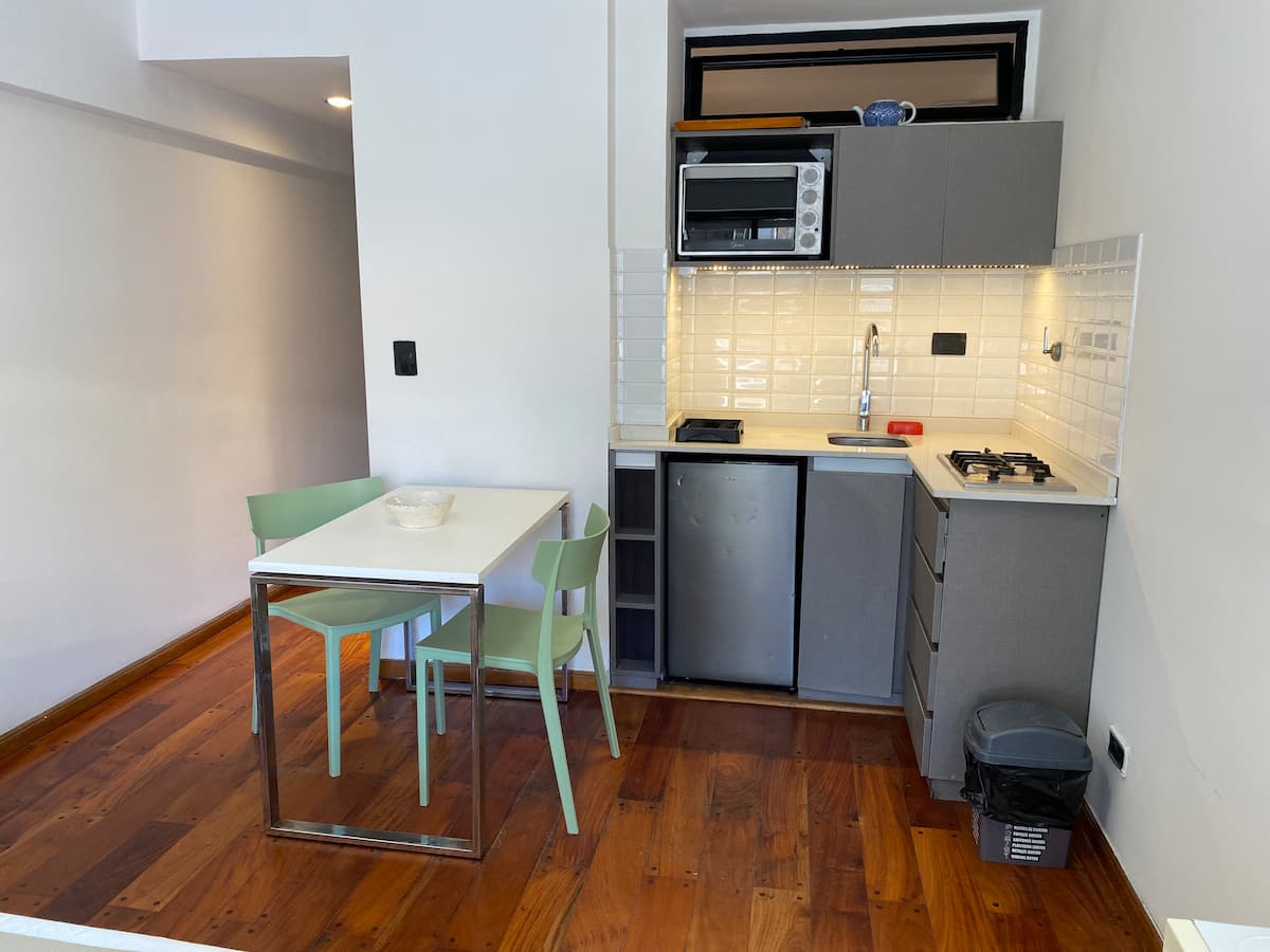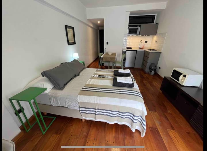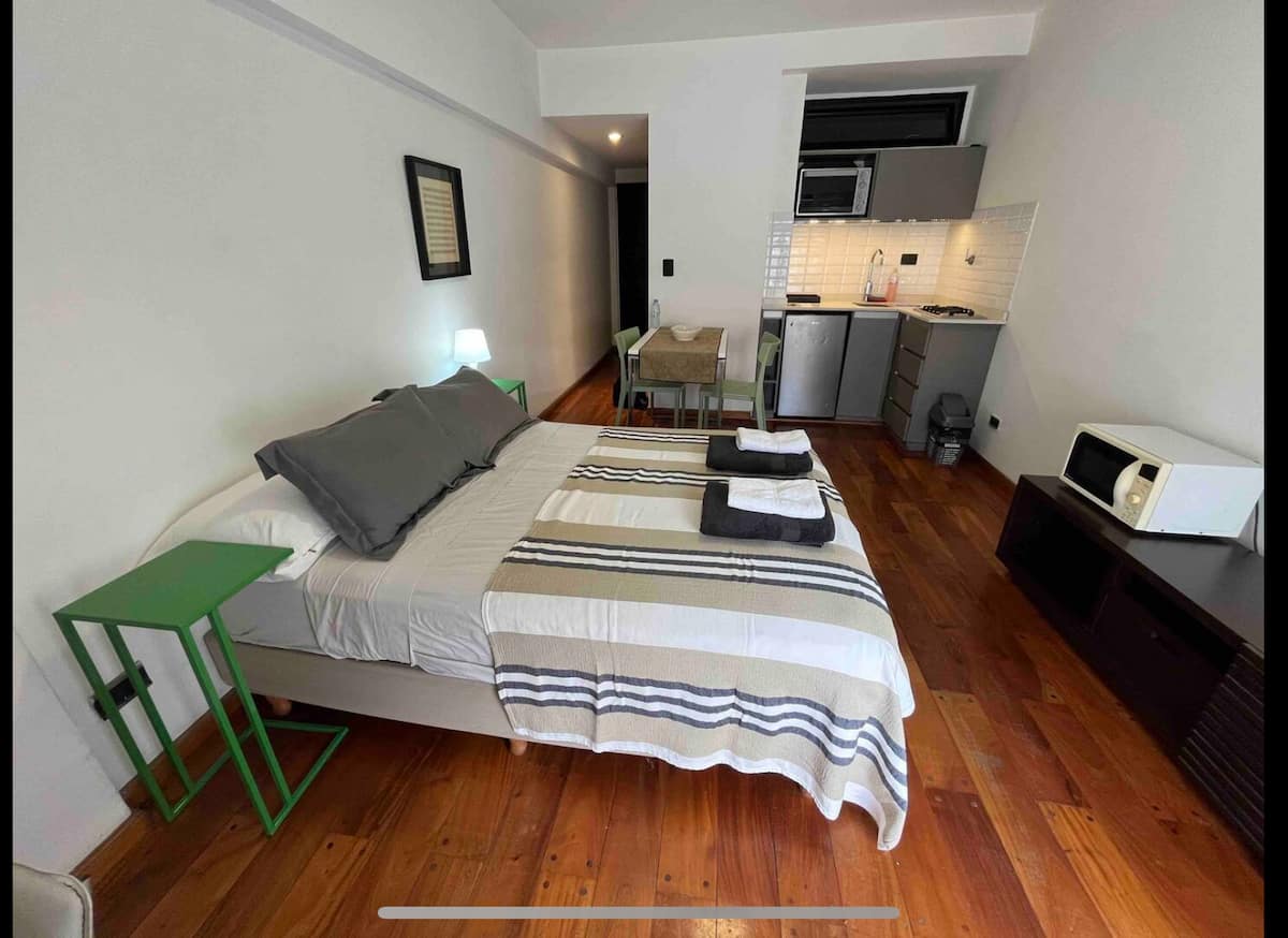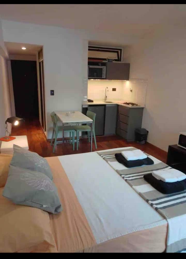Kitnet reformada em San Nicolás. Janelas com vidro duplo (DVH) e com isolamento acústico. O prédio tem piscina, com uso sazonal no período de dezembro a março. A hospedagem inclui regras de funcionamento do lixo e da limpeza na saída: os resíduos devem ser levados para o contêiner do prédio e, ao check-out, a unidade deve ser deixada em ordem; em caso de não cumprimento, há cobrança adicional de US$ 20.