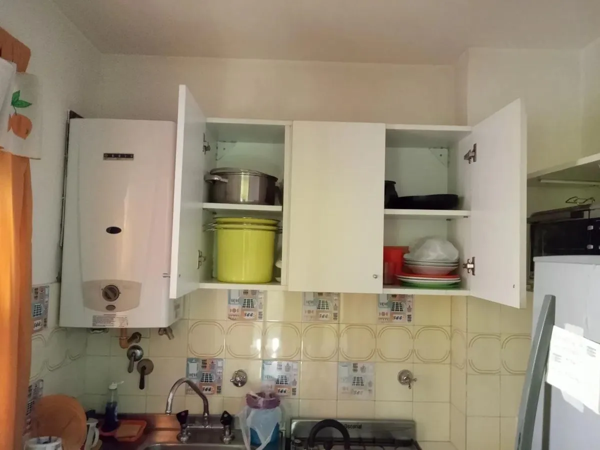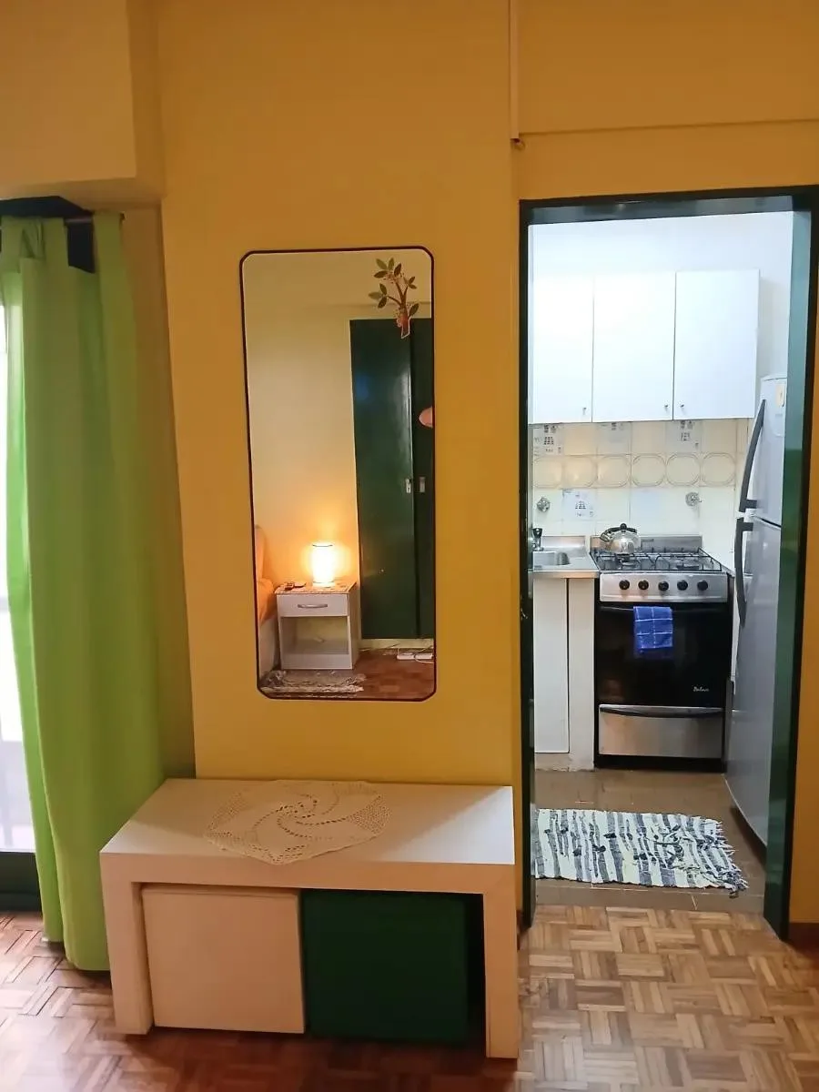 Kitnet mobiliado em San Nicolás, com 28 m² cobertos e disposição lateral. Possui ar-condicionado individual, varanda, cozinha e living-comedor, com geladeira. O aluguel mensal anunciado é de $590.000, mais condomínio de $62.000 e serviços.