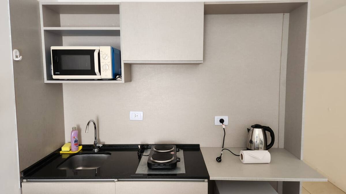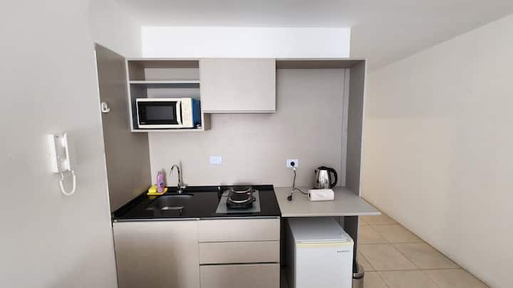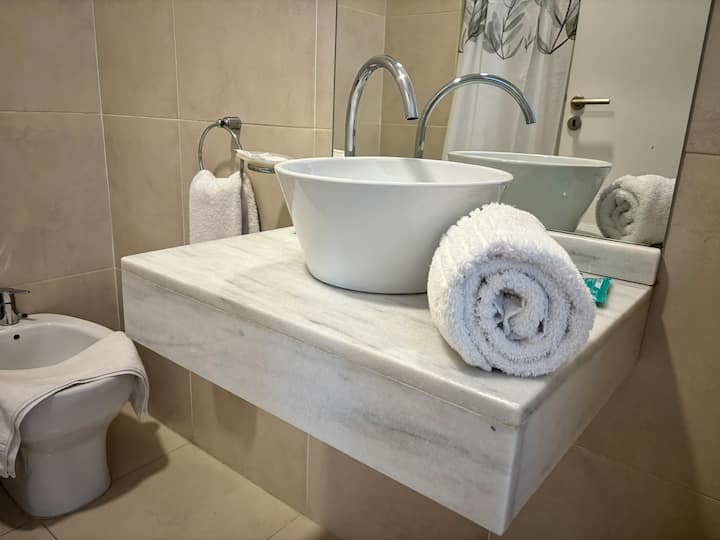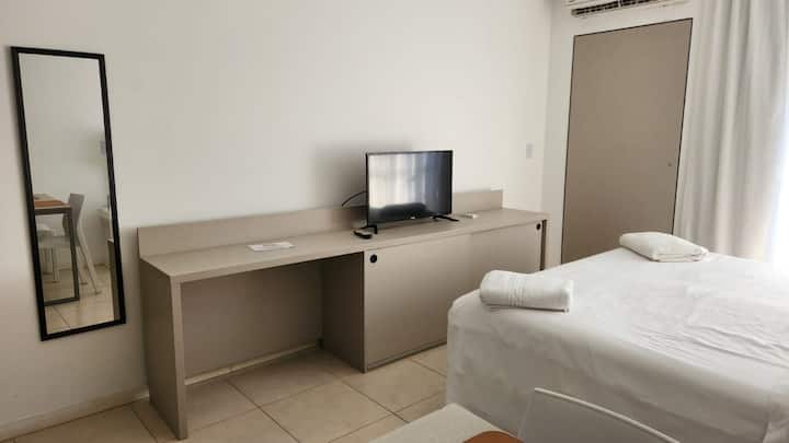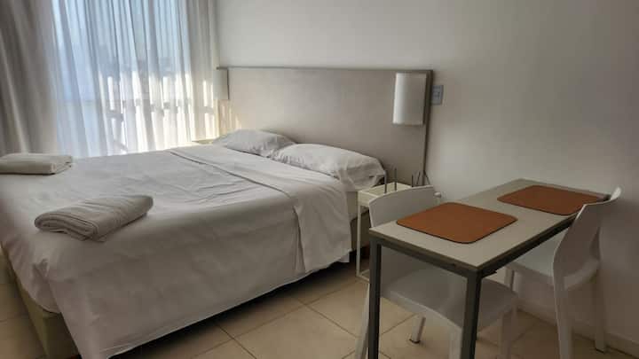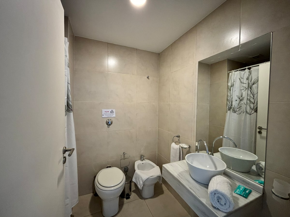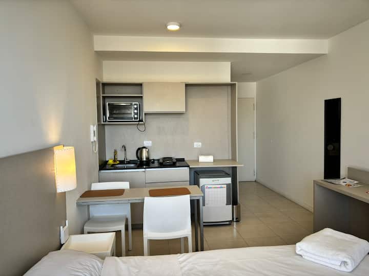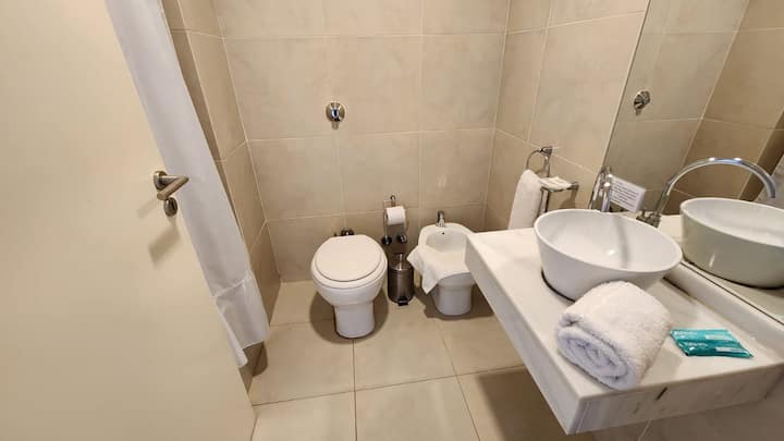 Studio em um edifício inaugurado em março de 2018, com varanda. Há cama de casal, área com mesa/desk e cadeiras, cozinha com utensílios e louça, geladeira e banheiro privativo com banheira. O metrô (linhas A, B, C e H) fica a poucos metros de Bartolomé Mitre 1444, e a Avenida de Mayo fica a 150 metros. Starbucks a 200 metros e Plaza de Mayo e Cabildo a 900 metros.