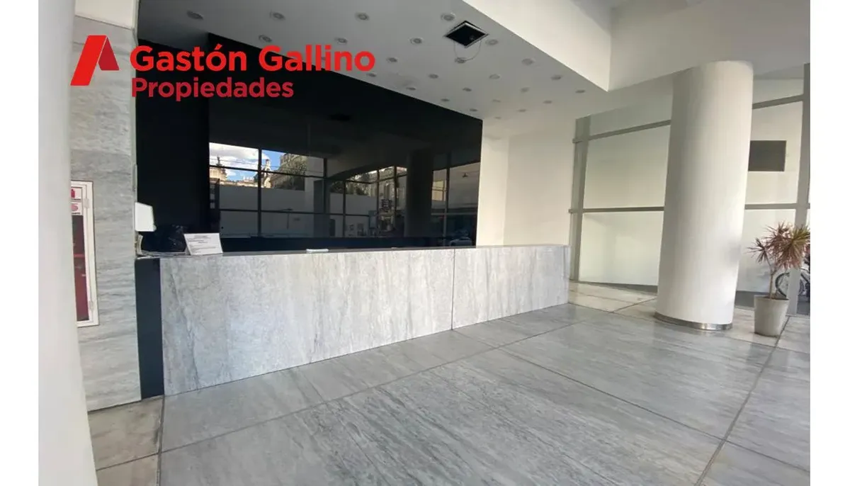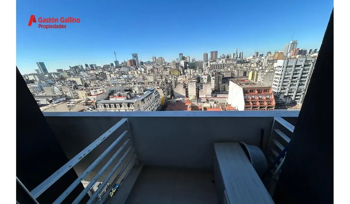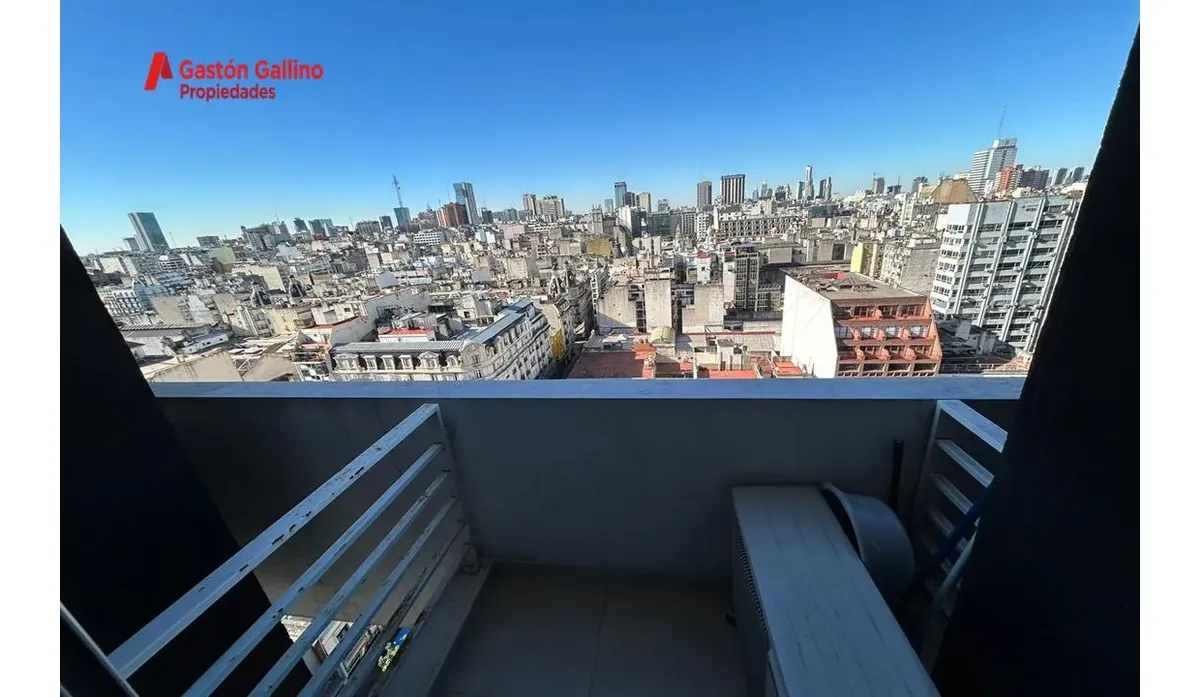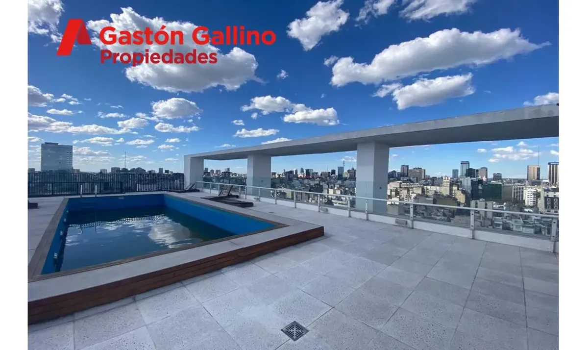 Apartamento de 1 ambiente com varanda de 27 m² e vista panorâmica. Pintado recentemente, com ar-condicionado frio/calor. O edifício tem piscina no último piso, solário e salão comunitário (SUM). O aluguel inclui condomínio, AYSA e ABL, além de luz, cabo e internet; a fiança é paga pelo inquilino. Apto profissional.