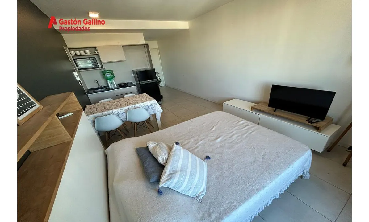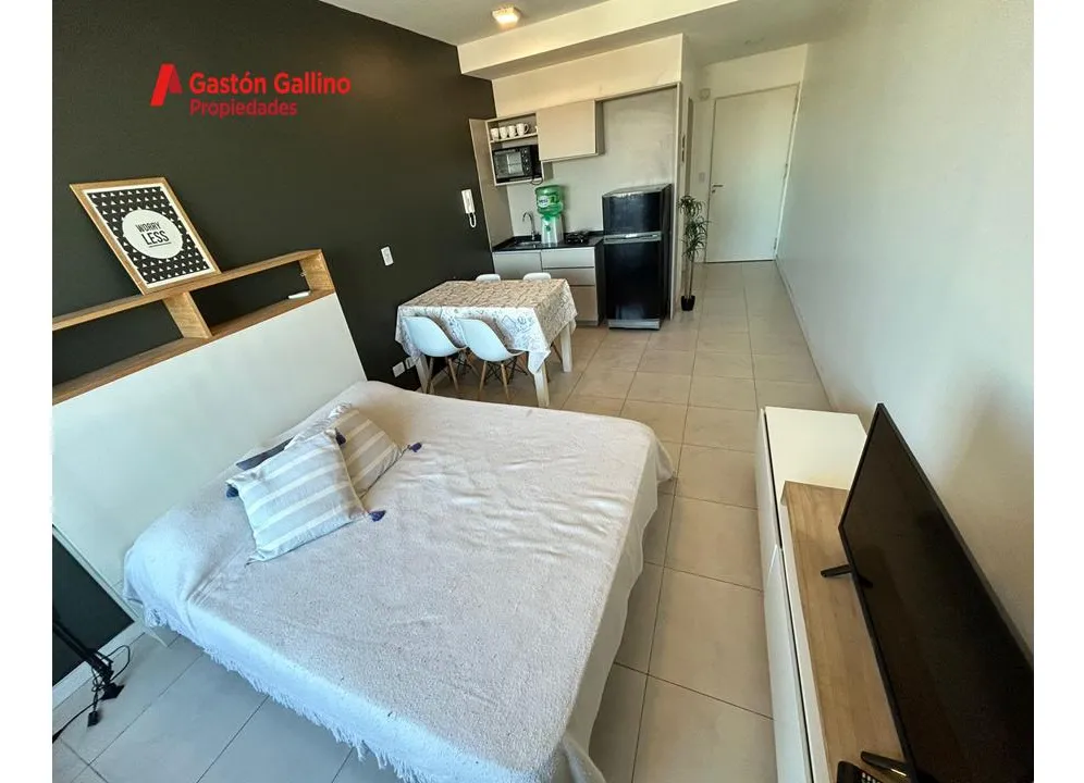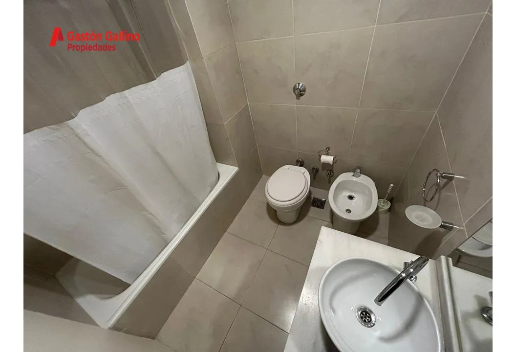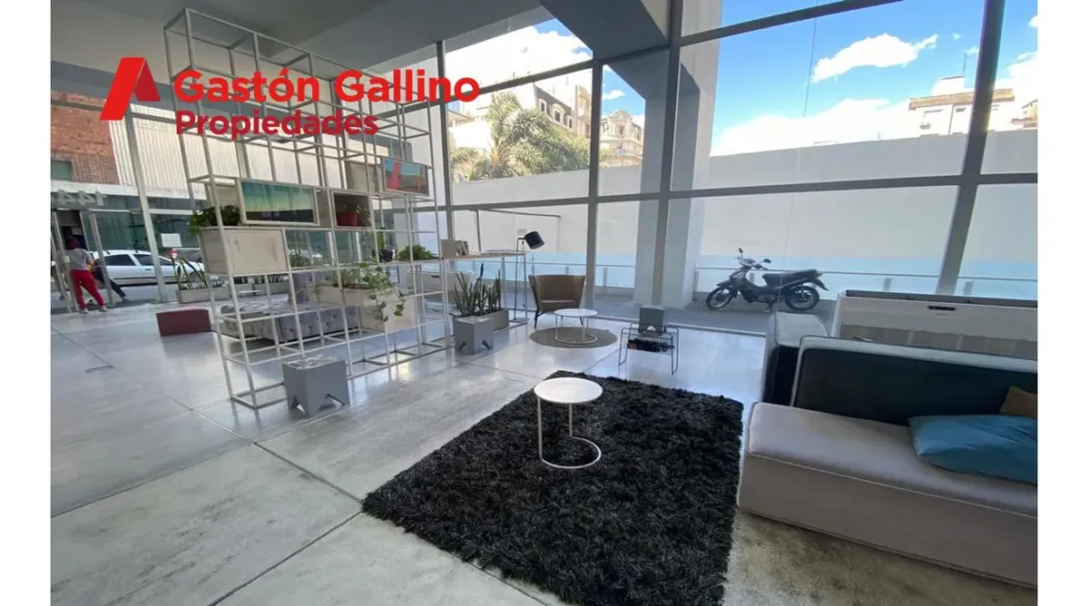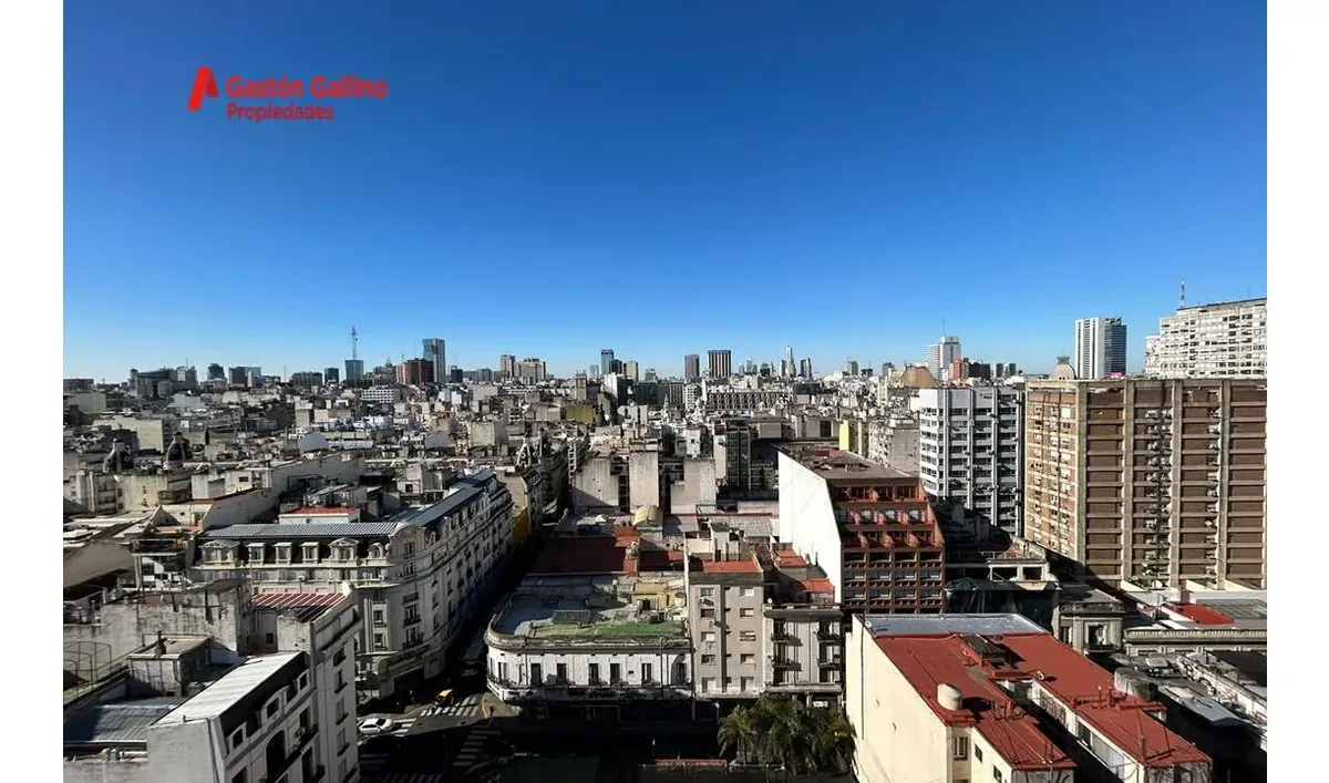 Apartamento de 1 ambiente com varanda de 27 m² e vista panorâmica. Pintado recentemente, com ar-condicionado frio/calor. O edifício tem piscina no último piso, solário e salão comunitário (SUM). O aluguel inclui condomínio, AYSA e ABL, além de luz, cabo e internet; a fiança é paga pelo inquilino. Apto profissional.