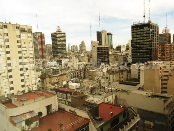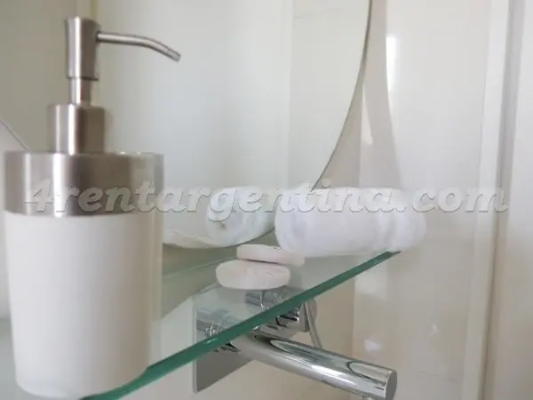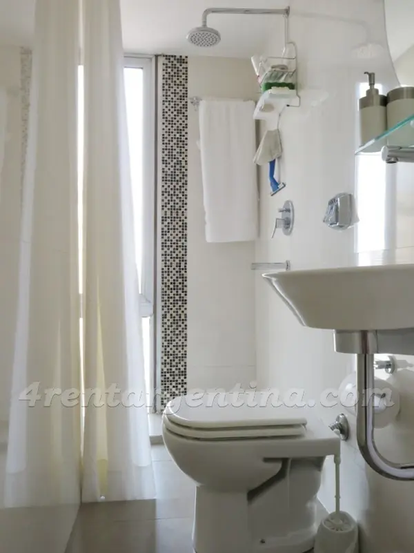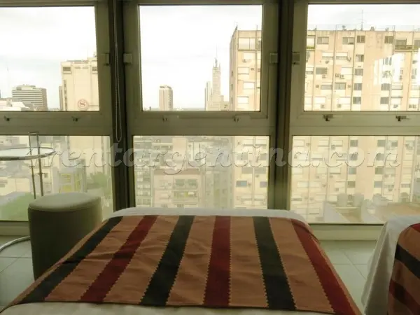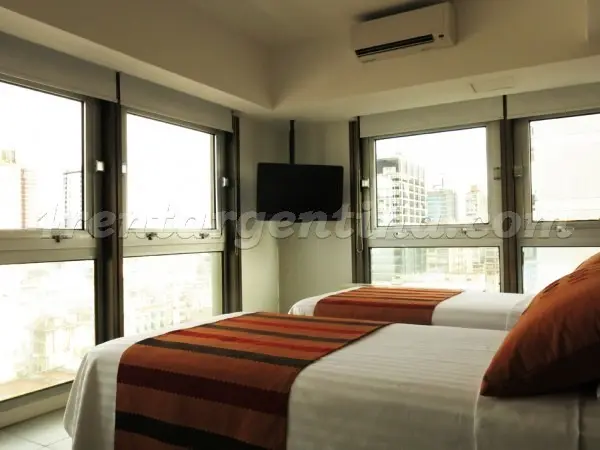 Kitnet mobiliada em San Nicolás para aluguel temporário, com banheiro com ducha e kitchenette. Há duas camas de solteiro que podem ser unidas para formar uma cama de casal. O apartamento tem ar-condicionado frio-quente, aquecimento central, TV LCD com TV a cabo, internet Wi‑Fi e cofre. A cozinha dispõe de geladeira, micro-ondas, cafeteira, torradeira e chaleira elétrica. O prédio oferece segurança 24 horas; não são permitidos animais de estimação e é proibido fumar. O preço inclui serviço de lim