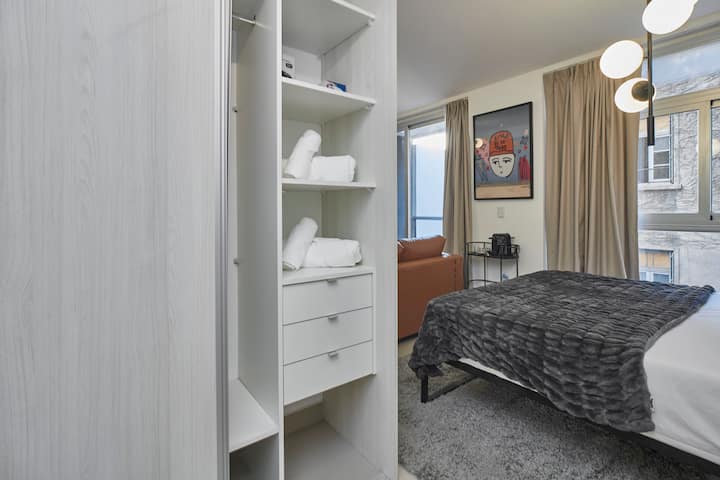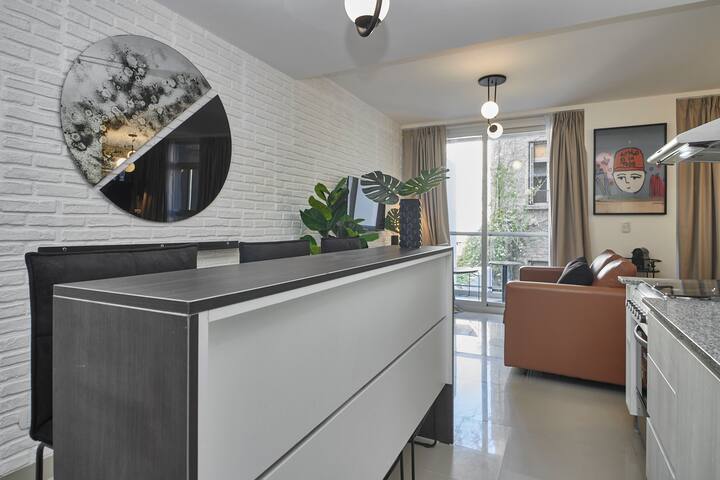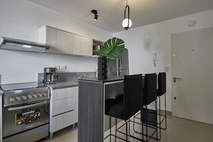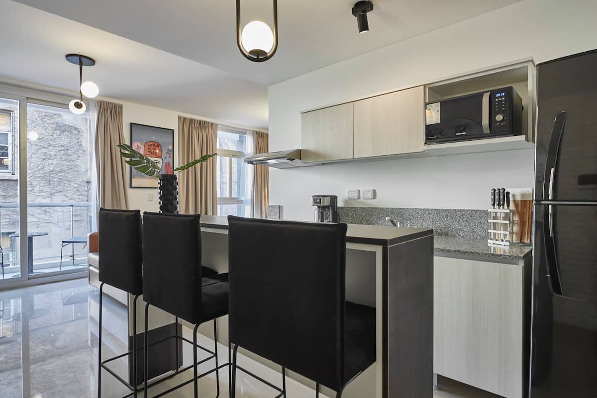 Kitnet em San Nicolás, com entrada por códigos e check-in sem contato. O imóvel dispõe de WiFi de alta velocidade, cafeteira Nespresso™ e área de lavanderia aberta 24/7. O condomínio oferece piscina e solarium, com guarda de bagagens no prédio.