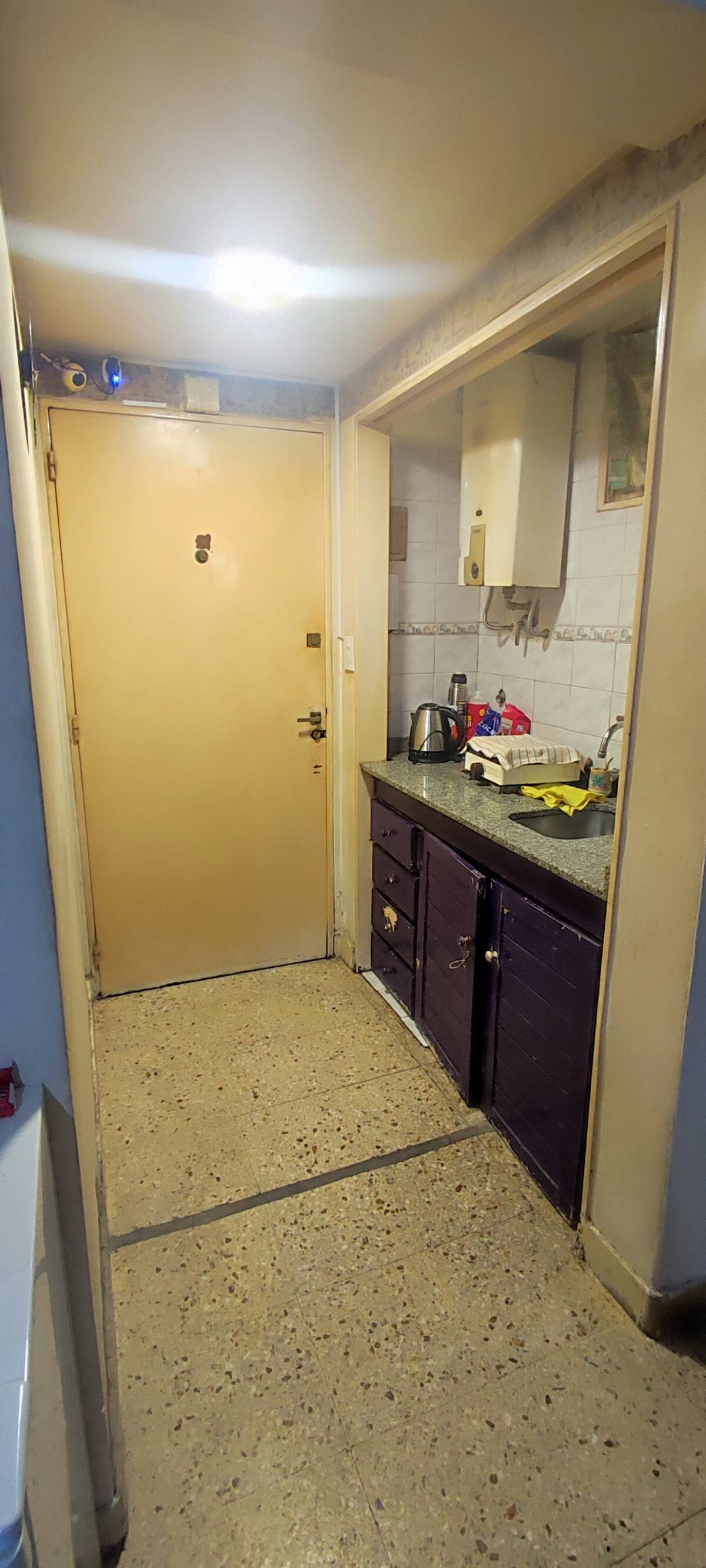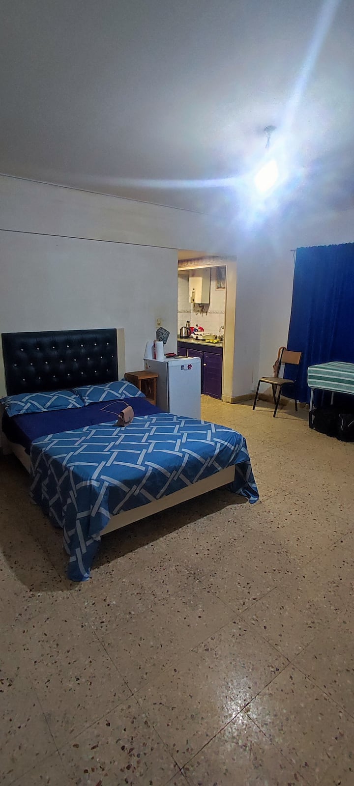 Kitnet em San Nicolás, voltada a estadias para 1 pessoa ou casal. O prédio tem câmeras de segurança; o apartamento possui uma câmera na entrada que registra o acesso de visitantes, sem filmar o interior do ambiente. Há chaleira elétrica e geladeira, além de utensílios necessários. Não há cozinha.