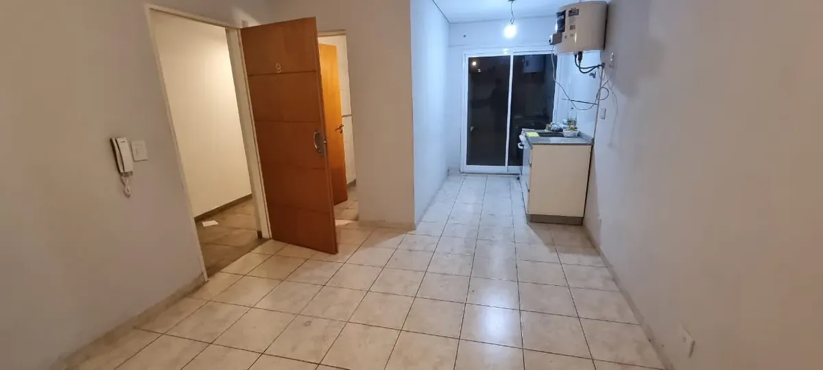 Apartamento de 1 ambiente no 1º andar em Caseros, com 1 banheiro e pátio privativo. O banheiro já está instalado. Contrato de 2 anos, com atualização a cada 4 meses pelo IPC. Não são aceitos animais; o locatário deve contratar seguro contra incêndio.
