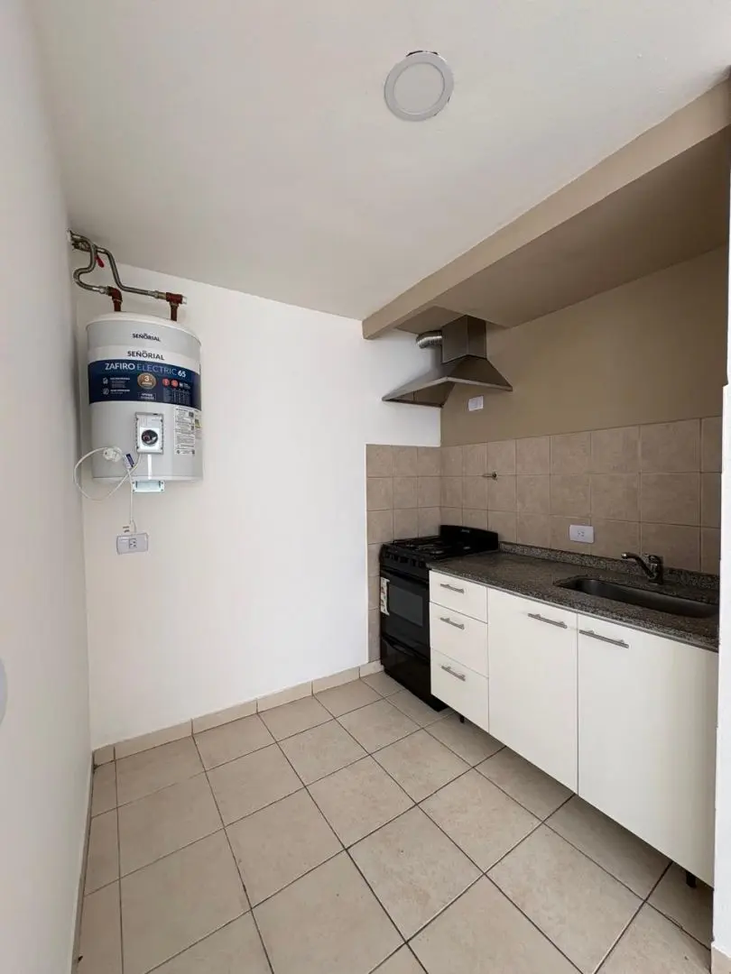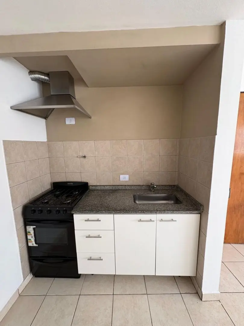 Apartamento tipo kitnet para aluguel em Sáenz Peña, Tres de Febrero. Fica no 1º andar e tem sala de estar e área de refeições com piso cerâmico, cozinha separada com armários superiores e inferiores e fogão, além de banheiro com box e vanitory. As medidas e valores de condomínio são aproximados e podem mudar. O aluguel é de $420.000 + condomínio + ABL + serviços + seguro do imóvel, com reajuste trimestral pelo IPC e contrato de 24 meses.