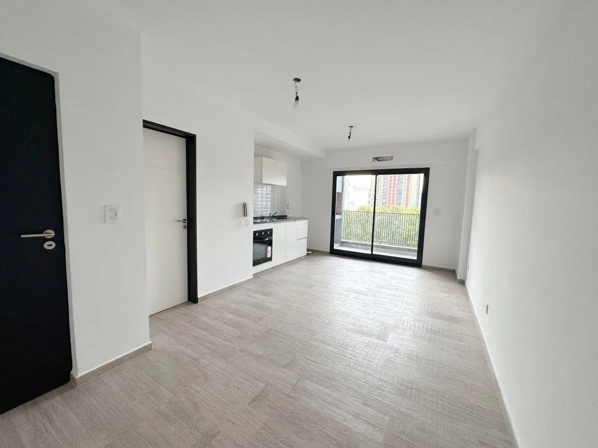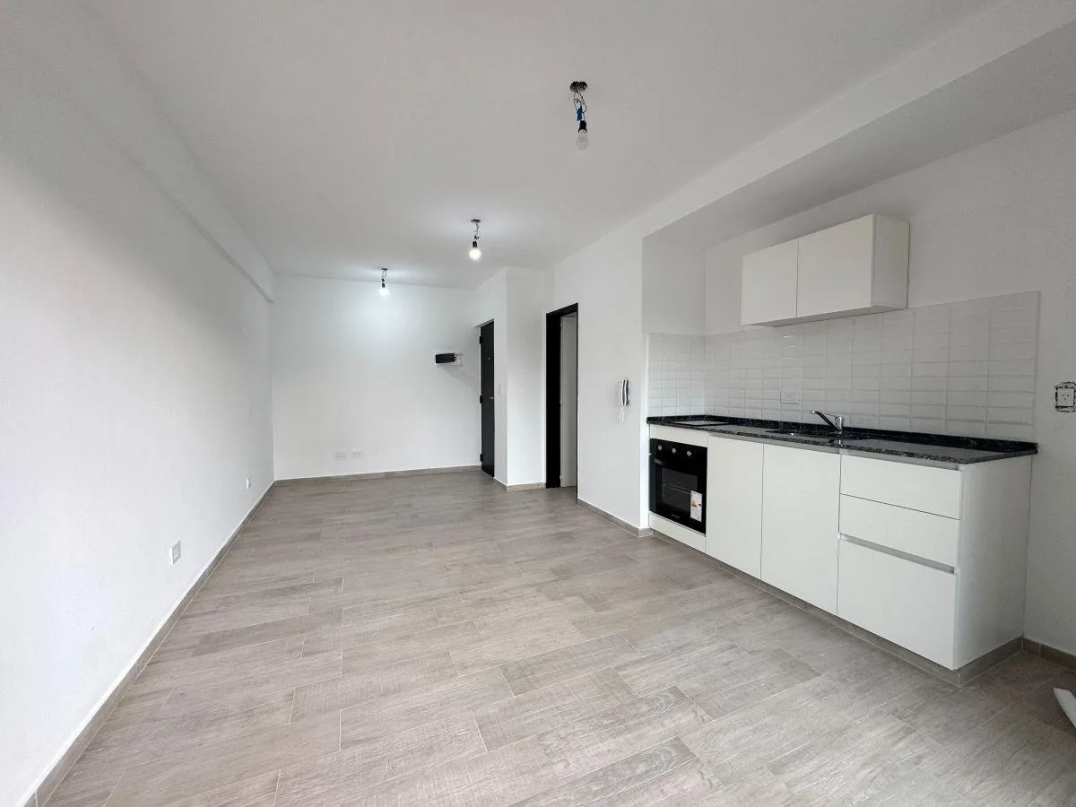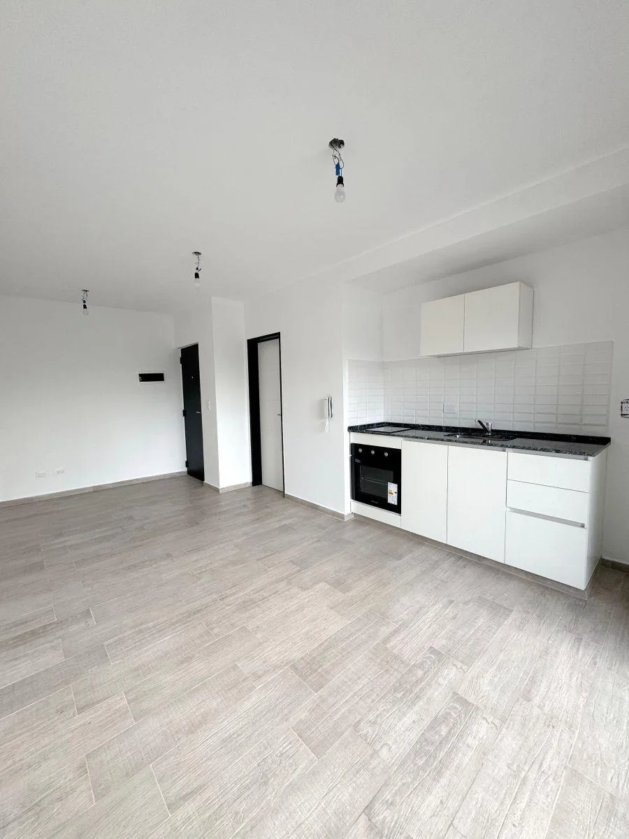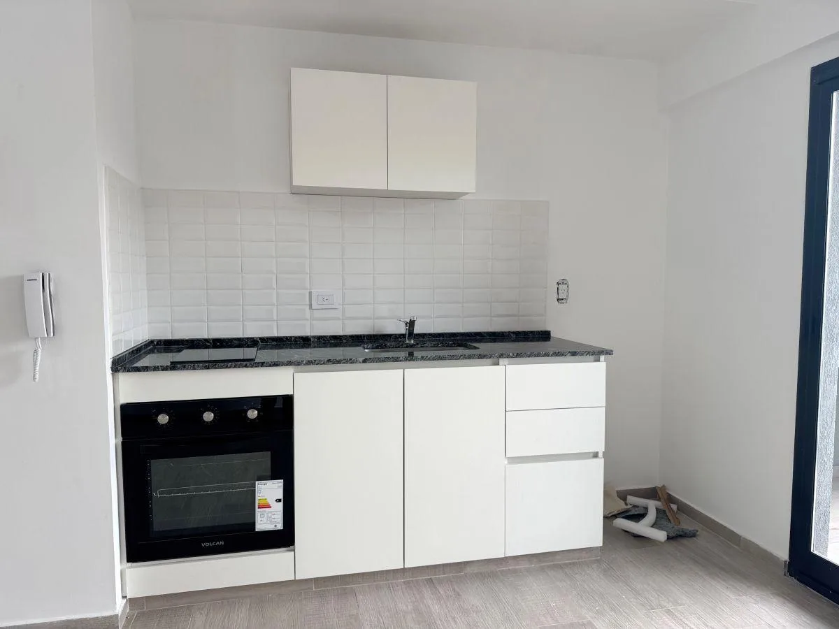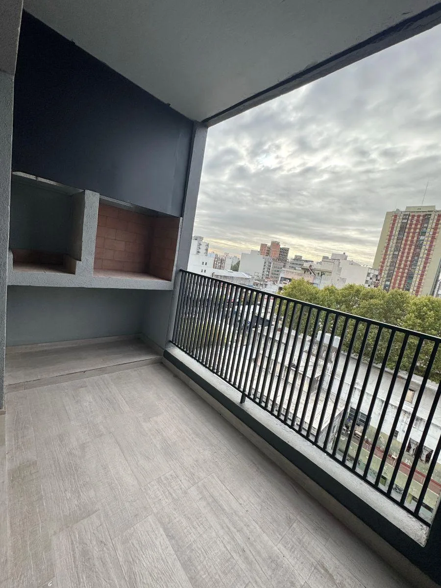 Kitnet novo (nunca habitado) com varanda em Tres de Febrero. Possui cozinha com forno, armários de baixo e de alto, banheiro completo com banheira e varanda com churrasqueira. Condomínio baixo; fica a 2 quadras da estação Caseros e a poucos metros da Av. Urquiza e do polo gastronômico.