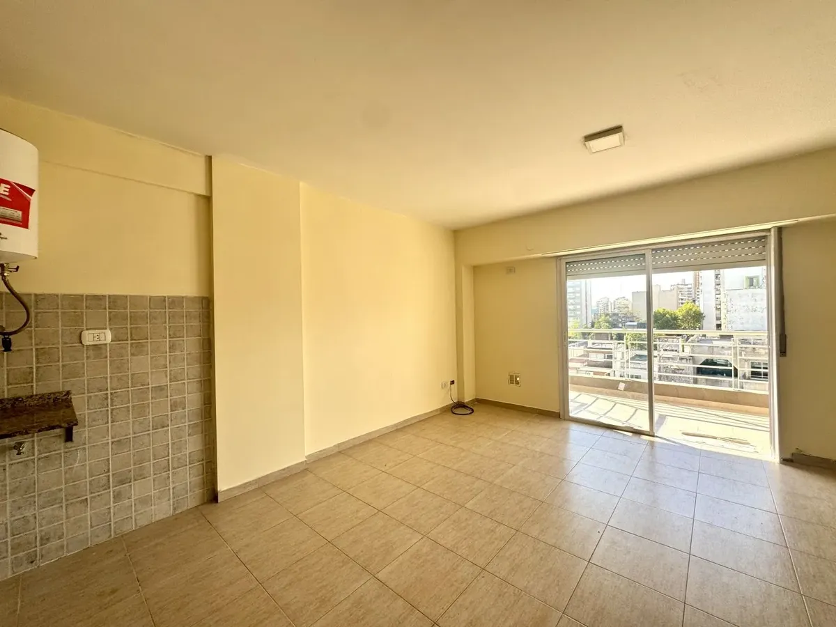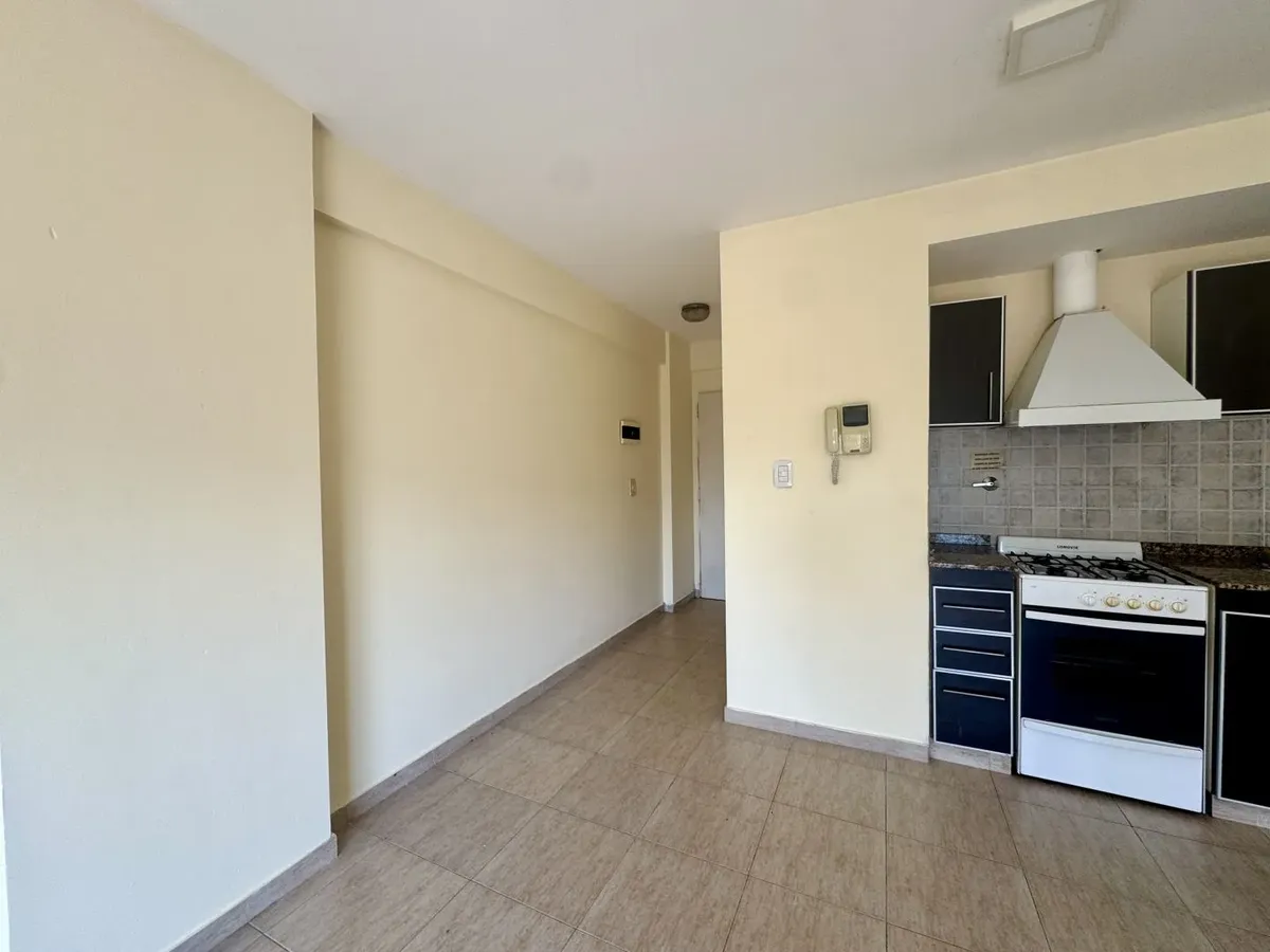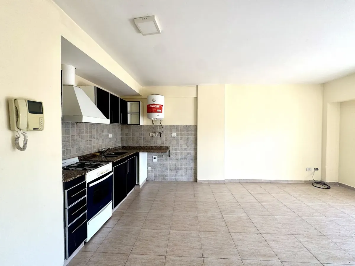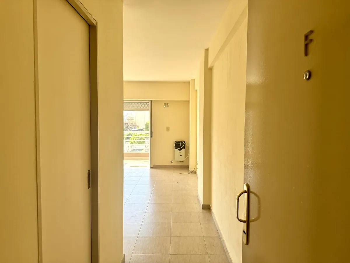 Kitnet para alugar em Caseros, Tres de Febrero, no 5º andar, unidade “F” de fundos. O imóvel tem recepção (2,20 x 1,00), ambiente com cozinha com móveis planejados (armários altos e baixos), banheiro com banheira e varanda corrida. Piso cerâmico em todos os ambientes, com espaço para lavanderia e termotanque, fogão e itens de iluminação. Não aceita animais nem crianças. O aluguel é de $420.000 + condomínio, ABL, serviços e ajuste trimestral pelo IPC.