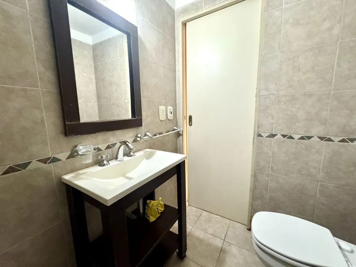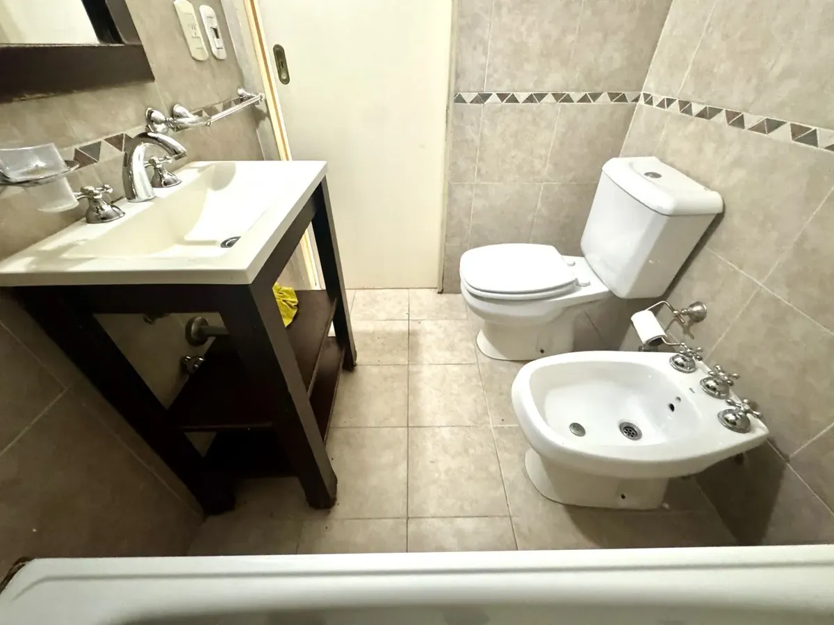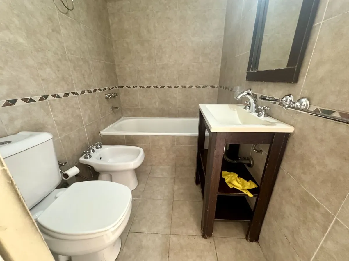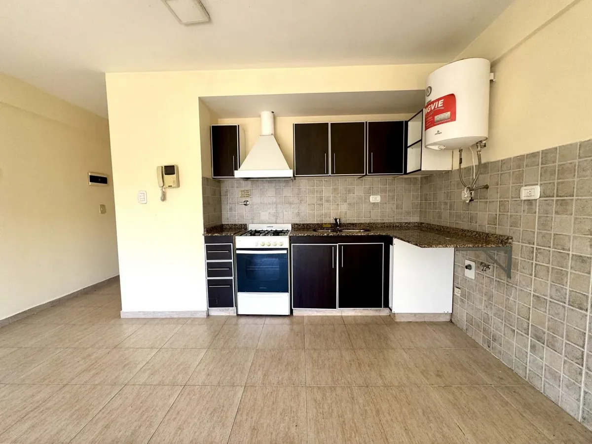 Kitnet para alugar em Caseros, Tres de Febrero, no 5º andar, unidade “F” de fundos. O imóvel tem recepção (2,20 x 1,00), ambiente com cozinha com móveis planejados (armários altos e baixos), banheiro com banheira e varanda corrida. Piso cerâmico em todos os ambientes, com espaço para lavanderia e termotanque, fogão e itens de iluminação. Não aceita animais nem crianças. O aluguel é de $420.000 + condomínio, ABL, serviços e ajuste trimestral pelo IPC.