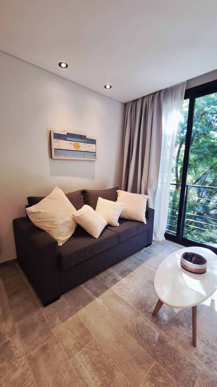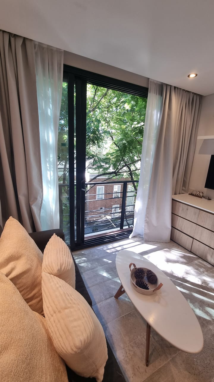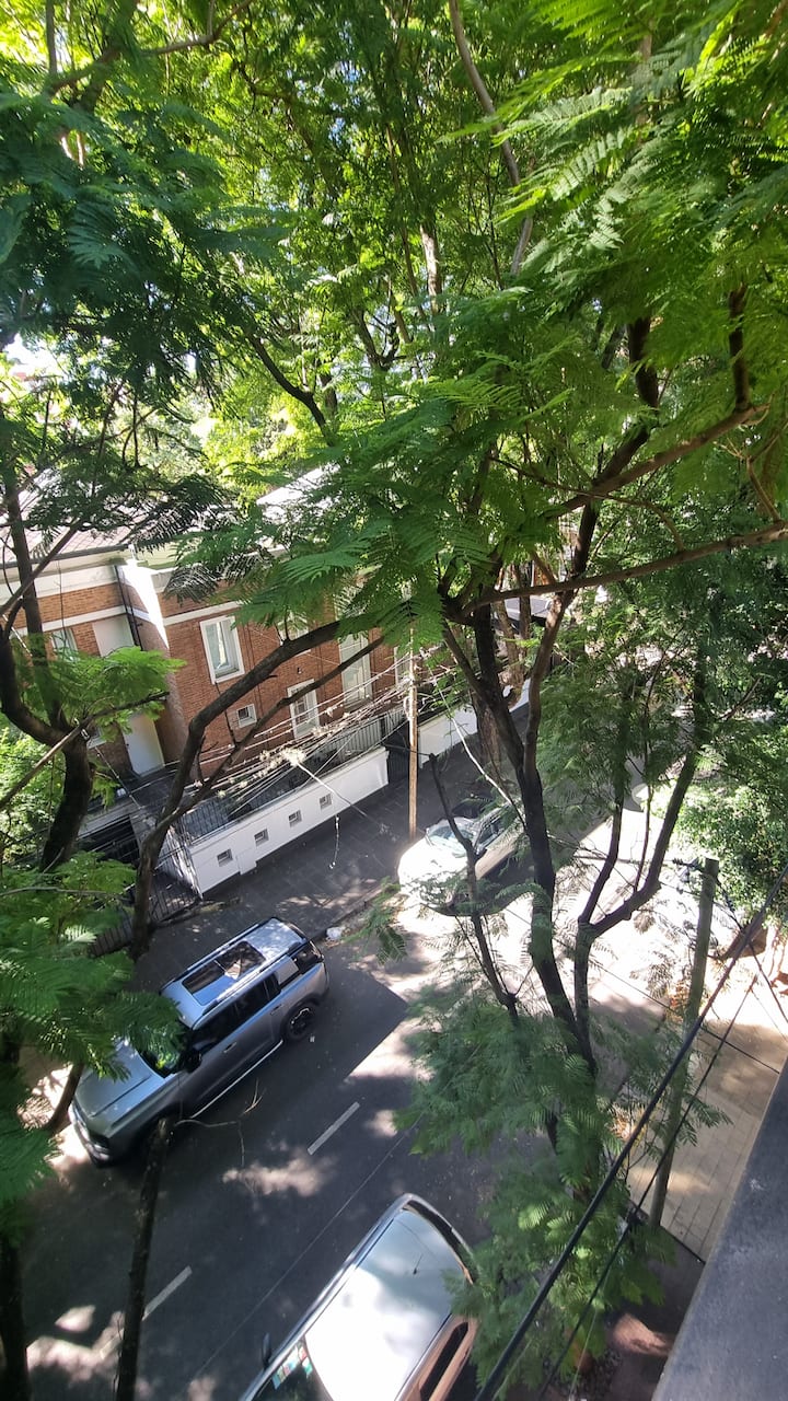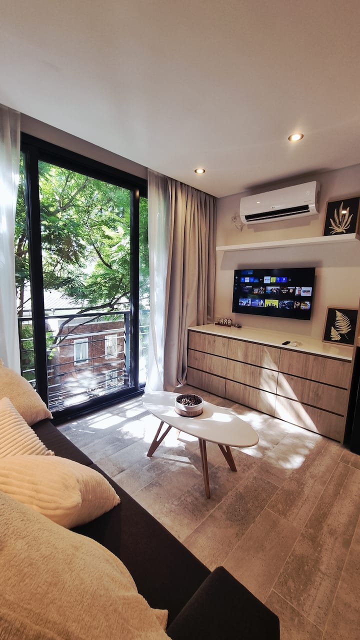 Studio mobiliado para 2 pessoas, no 3º andar (acesso por escadas). Conta com sofá-cama, cozinha equipada, Smart TV, ar-condicionado e fechadura digital. Fica perto da estação do trem de Vicente López e próximo ao Paseo de la Costa e ao rio.