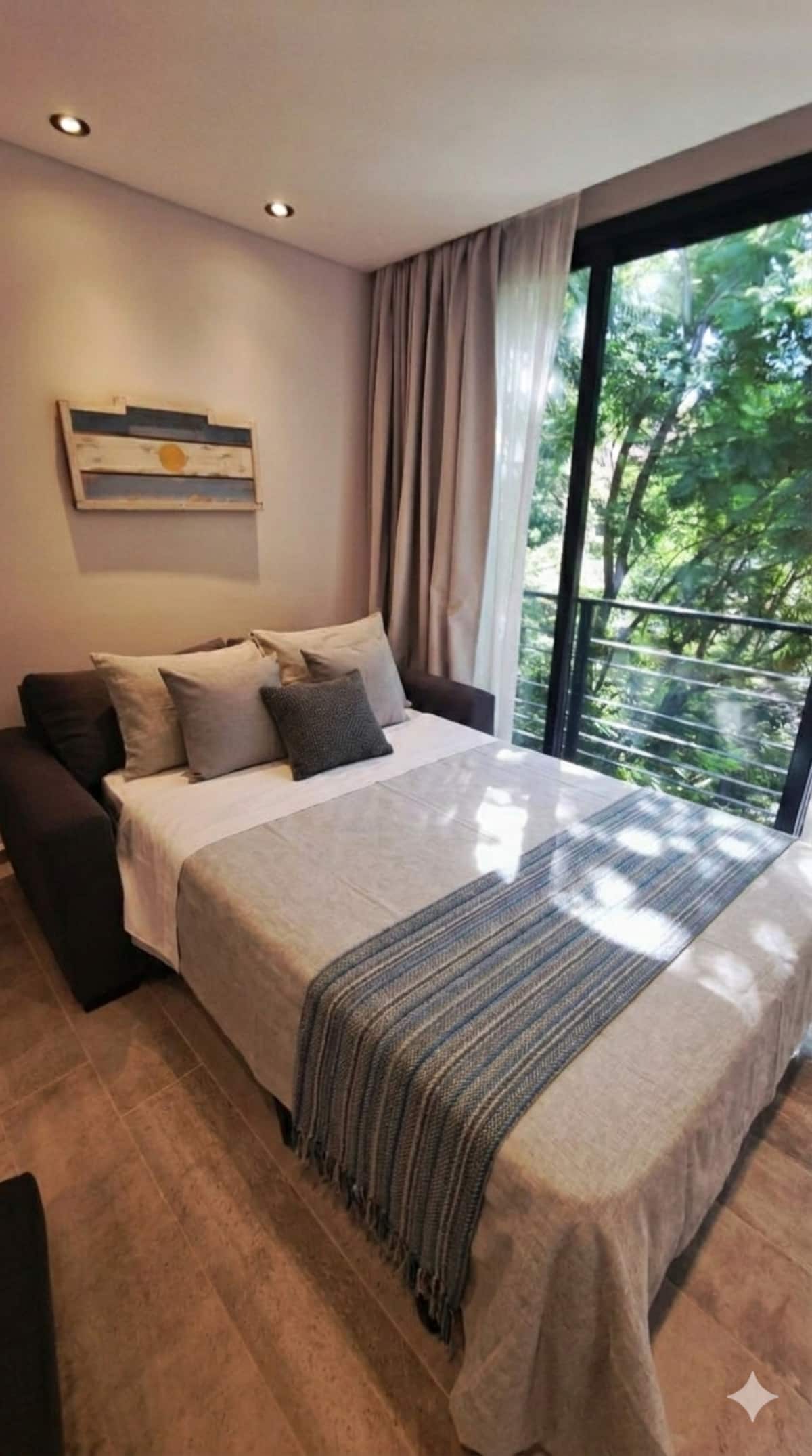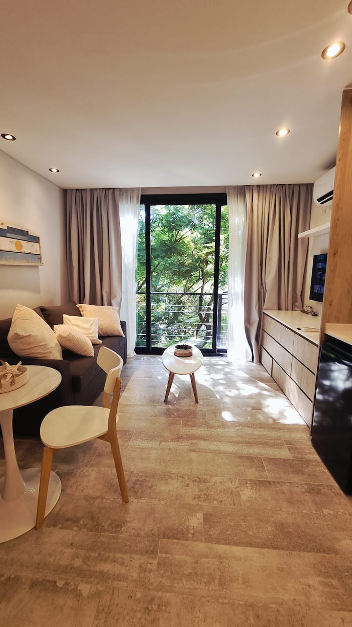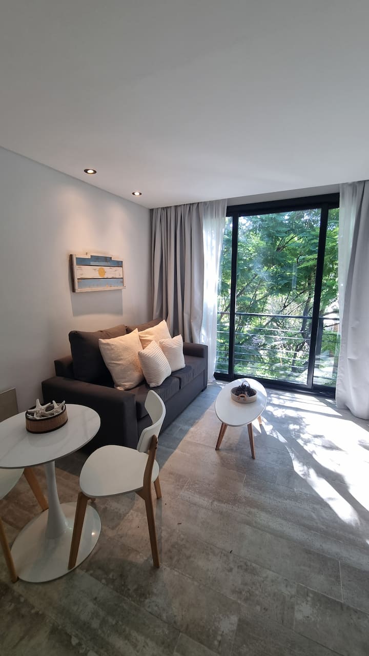 Studio mobiliado para 2 pessoas, no 3º andar (acesso por escadas). Conta com sofá-cama, cozinha equipada, Smart TV, ar-condicionado e fechadura digital. Fica perto da estação do trem de Vicente López e próximo ao Paseo de la Costa e ao rio.