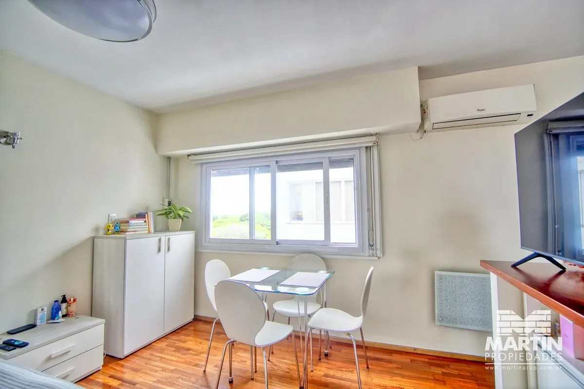 Apartamento de um ambiente com 25 m² cobertos e totais, de frente para a Quinta Presidencial. Cozinha integrada com barra, banheiro completo e terraço em comum. Condomínio com valor baixo; reajuste trimestral pelo IPC (abril de 2026). Medidas e áreas aproximadas. Apresentação a partir de 01/05/2026.