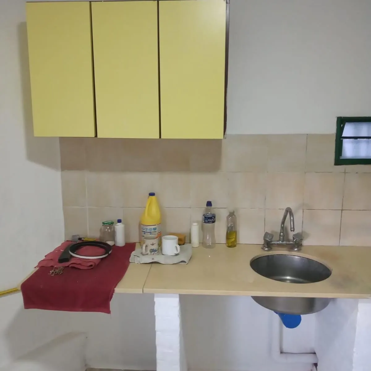 Kitnet de 35 m² aprox., em andar superior acessado por escada, com pátio/terraço privativo amplo. Sem condomínio. Boa conexão com a Panamericana.