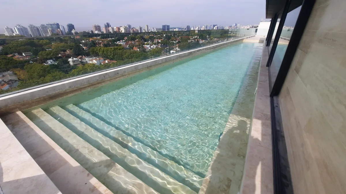 Apartamento studio em Vicente López, com cozinha integrada ao living e amplo balcão. Projeto da CBSC com entrega imediata. O edifício oferece piscina coberta e descoberta, salão de usos múltiplos (SUM), solarium, jardim, área de churrasco e setor de co-working.