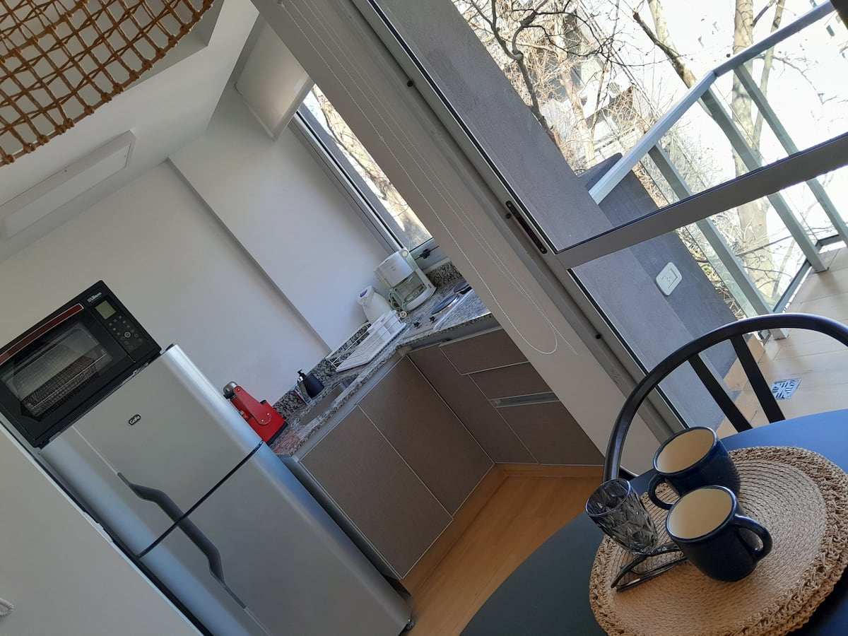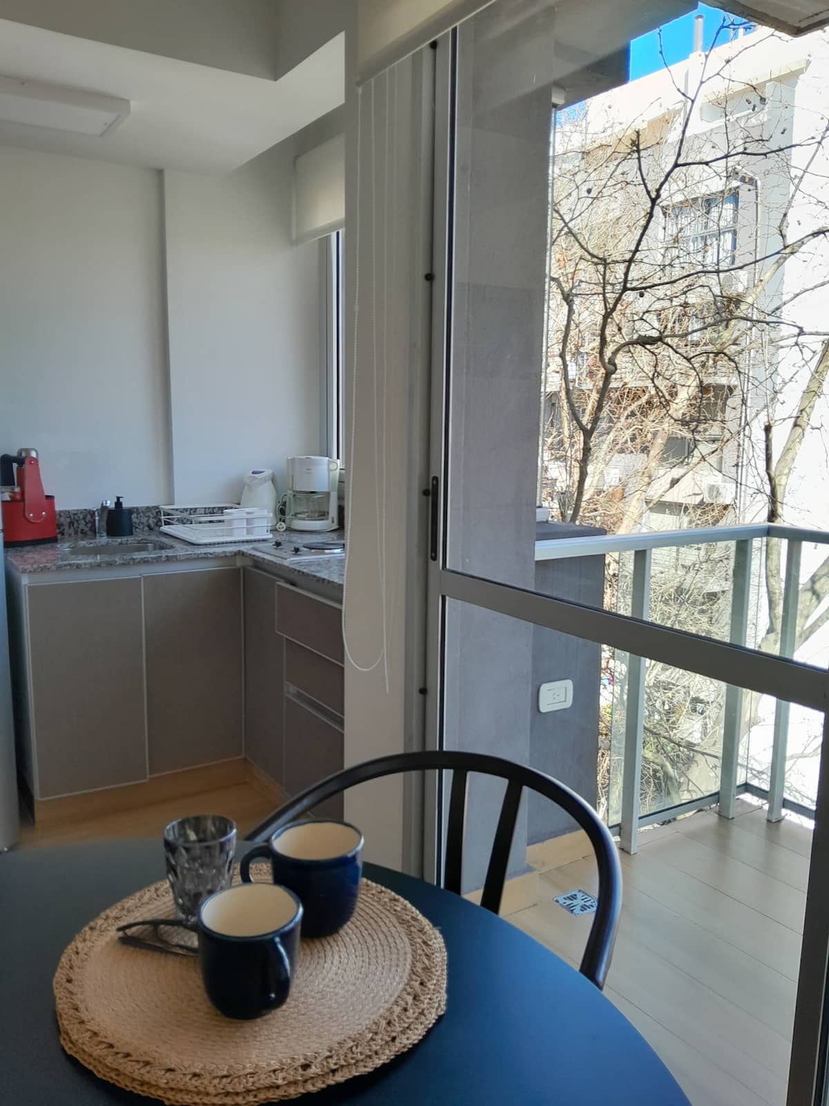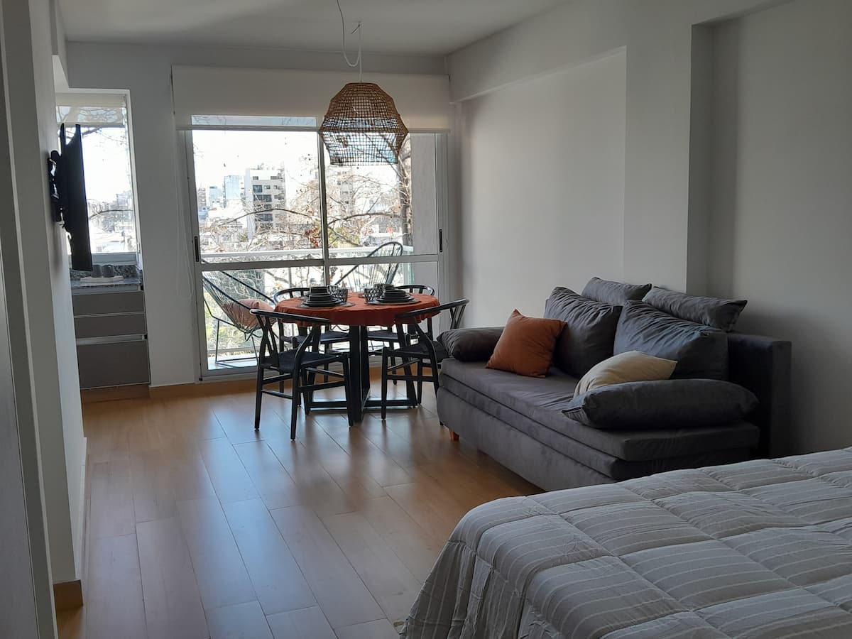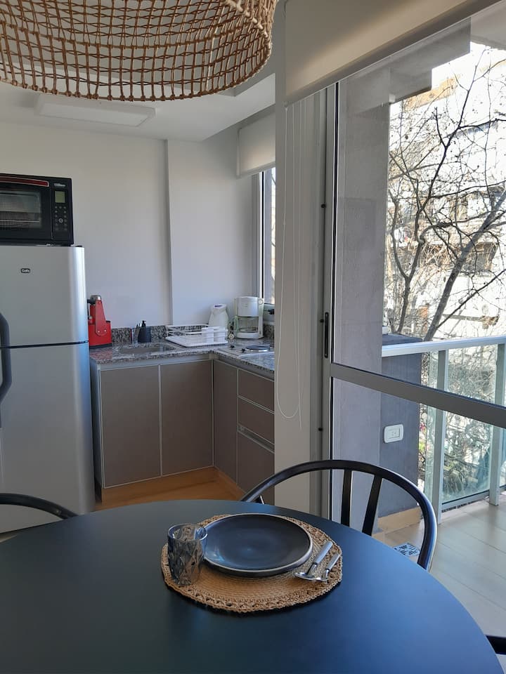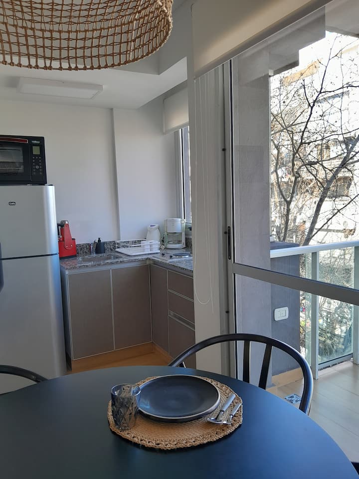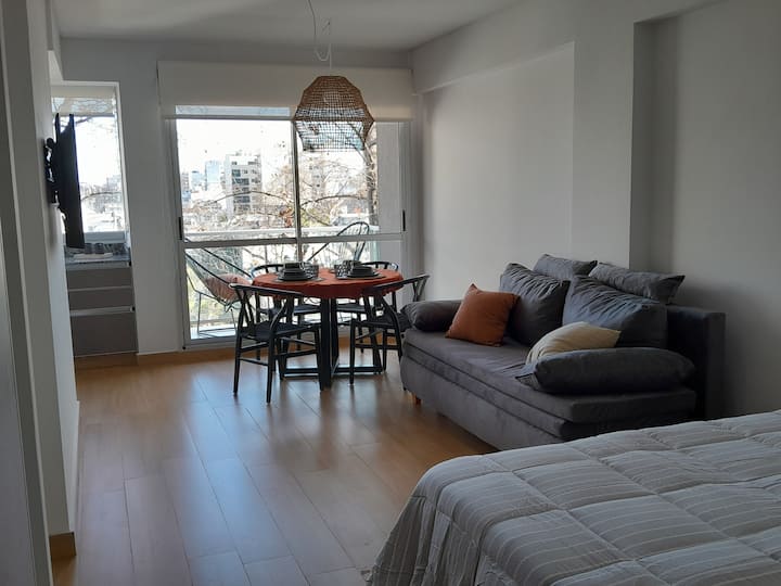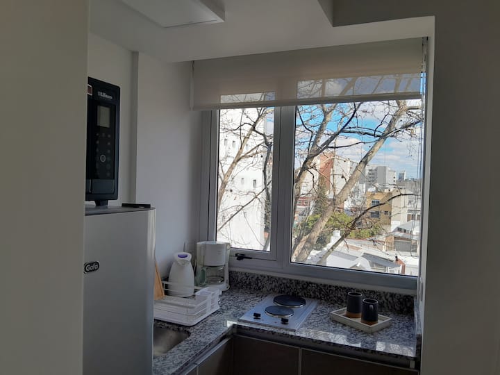 Kitnet novo em Villa Crespo, mobiliado como recém-entregue. Janelas com vidro duplo e muita luminosidade natural. Água quente e roupas de cama incluídas.