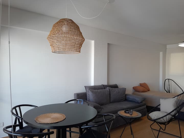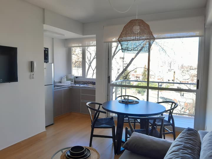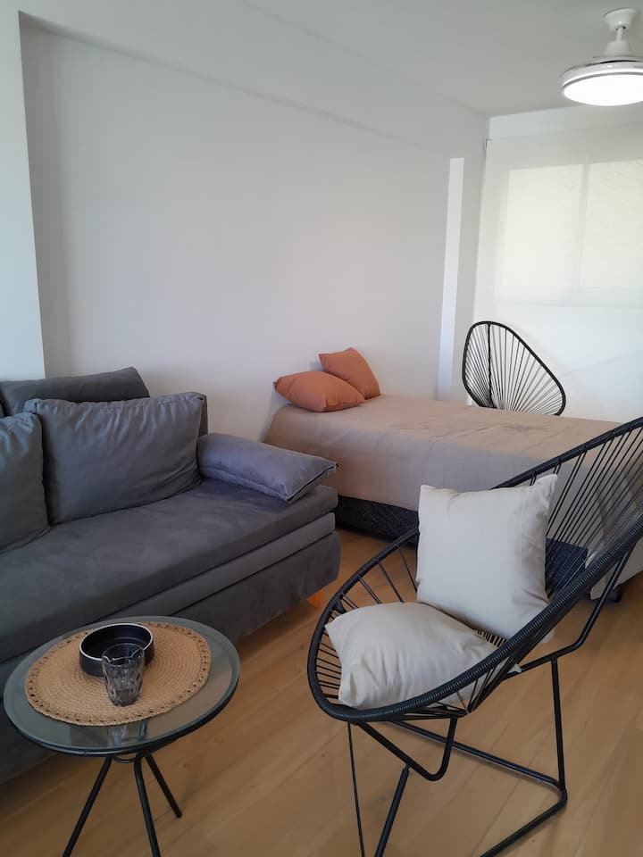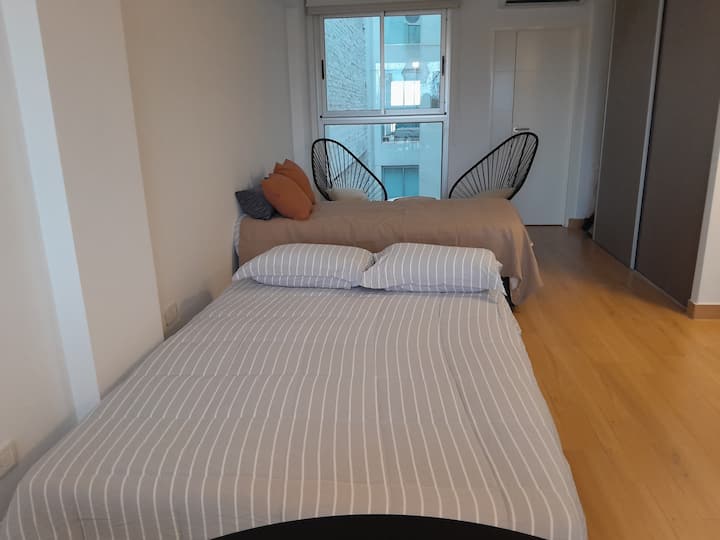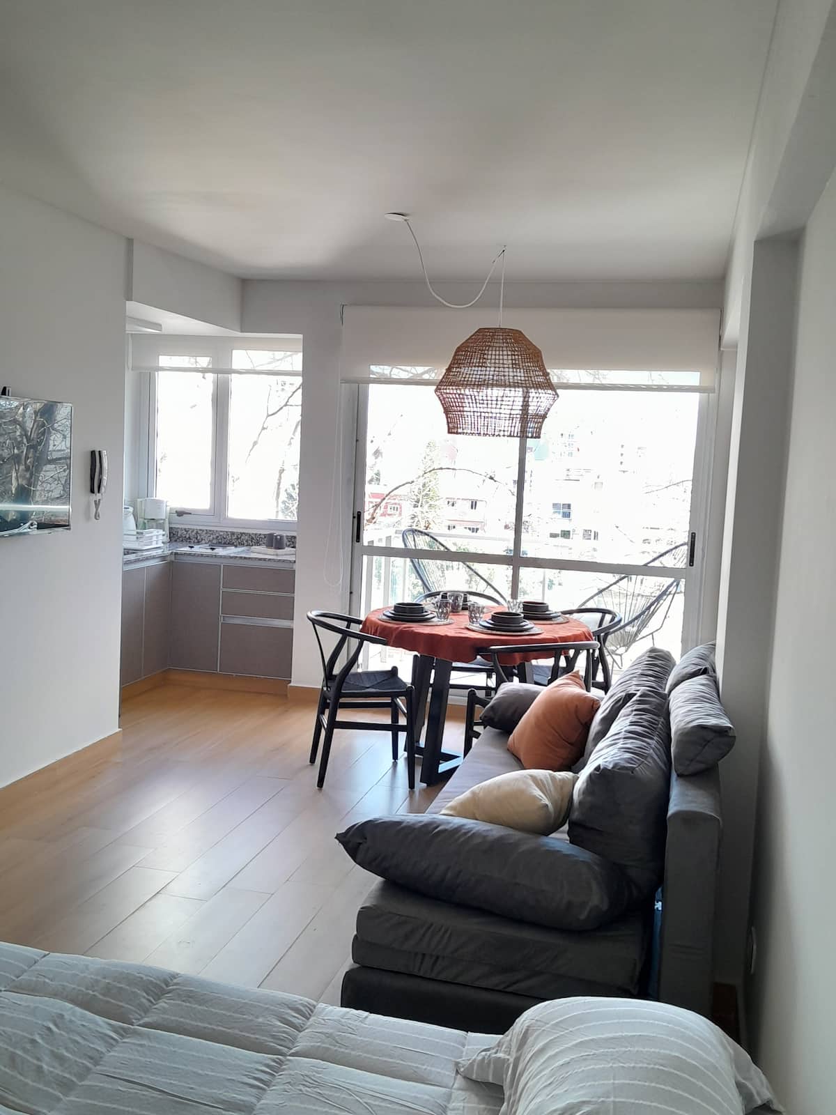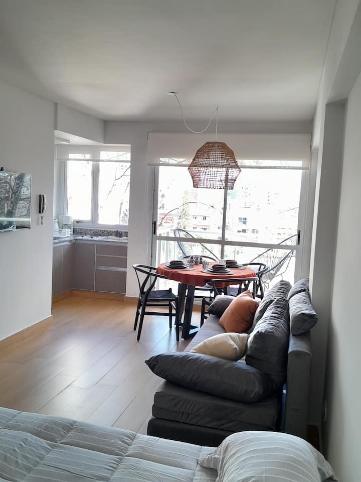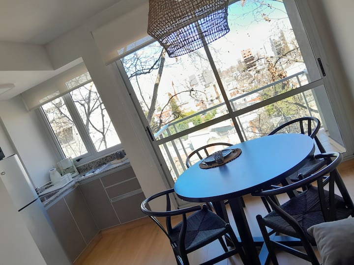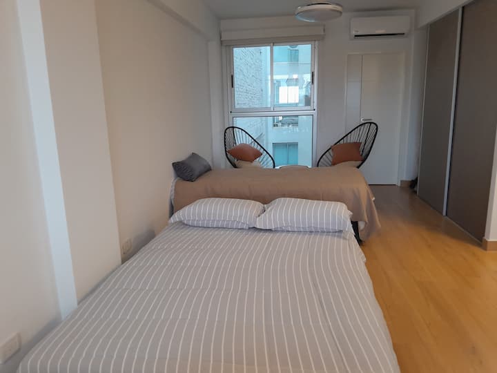 Kitnet novo em Villa Crespo, mobiliado como recém-entregue. Janelas com vidro duplo e muita luminosidade natural. Água quente e roupas de cama incluídas.