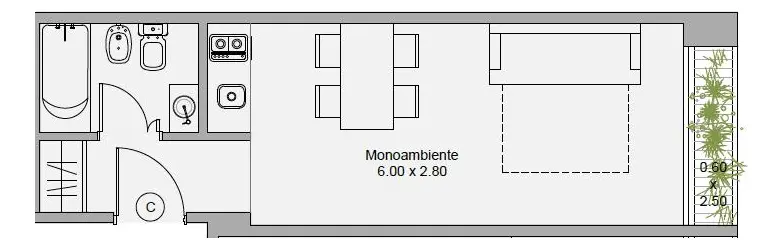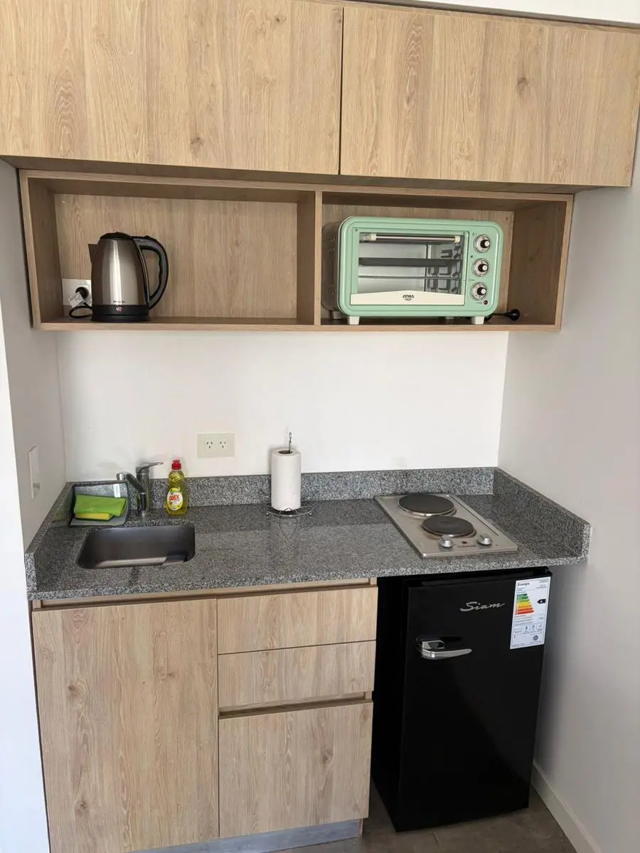 Kitnet em Villa Crespo, com ventilação para os fundos sobre o miolo de quadra. Ventilação e iluminação naturais. Sistema todo elétrico e água quente central. Janela do piso ao teto de boa qualidade. Mobiliado para até 2 pessoas.