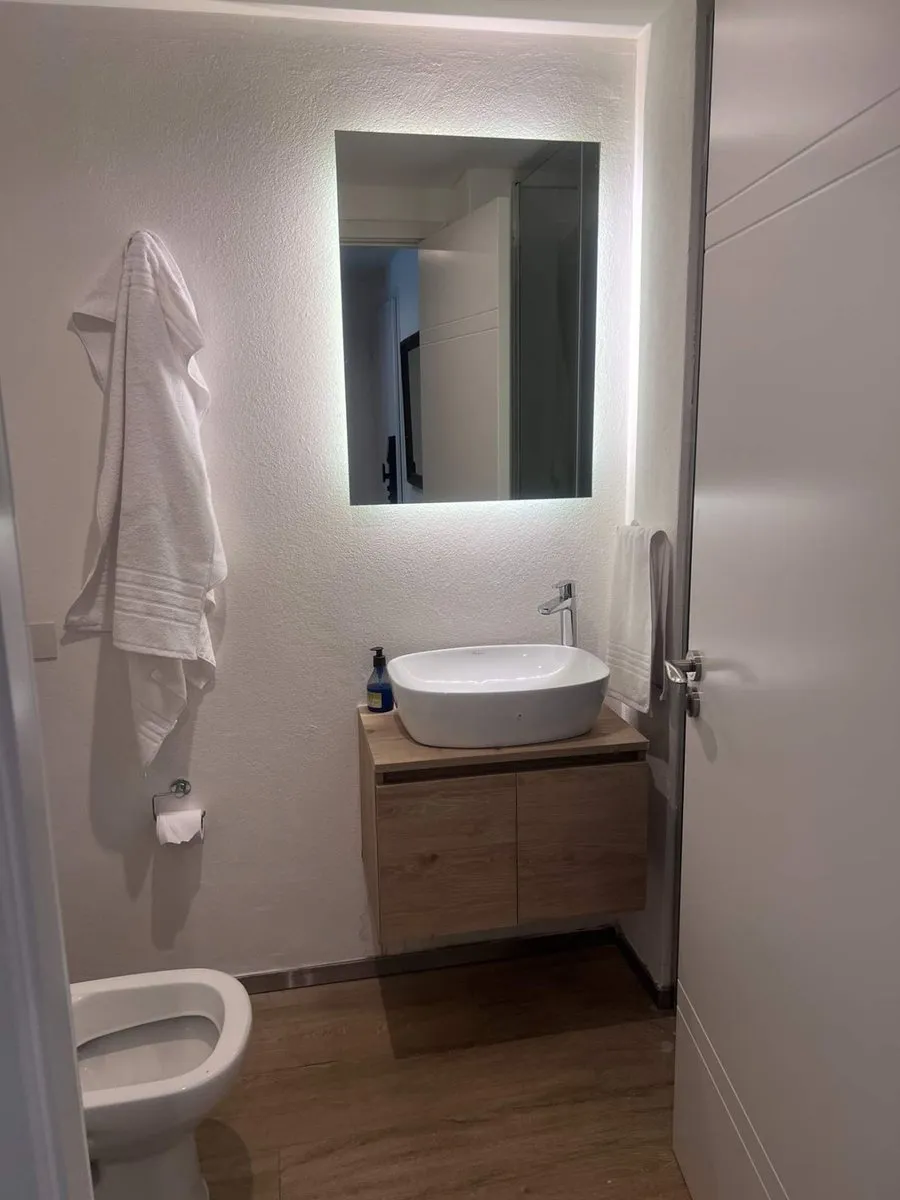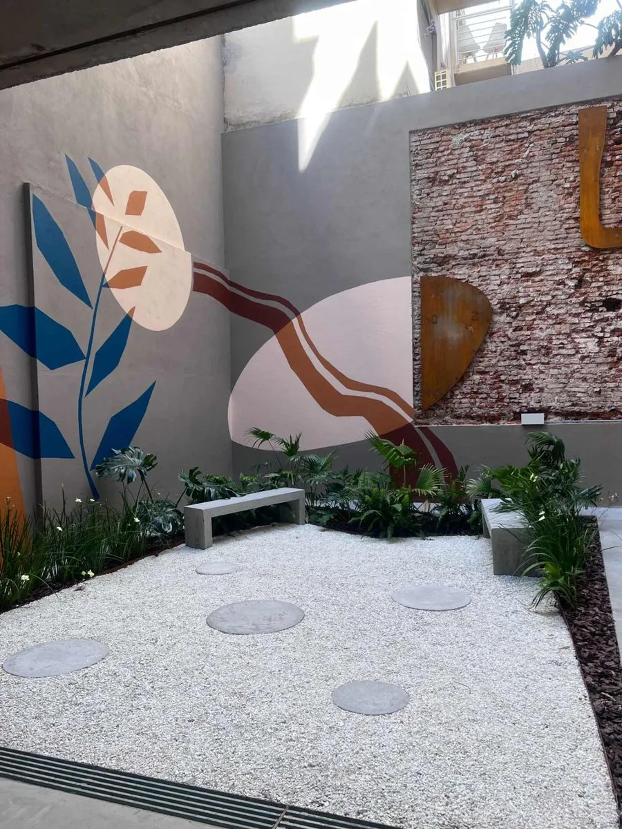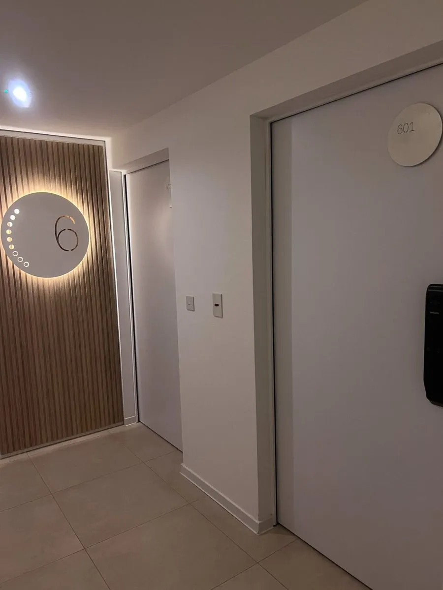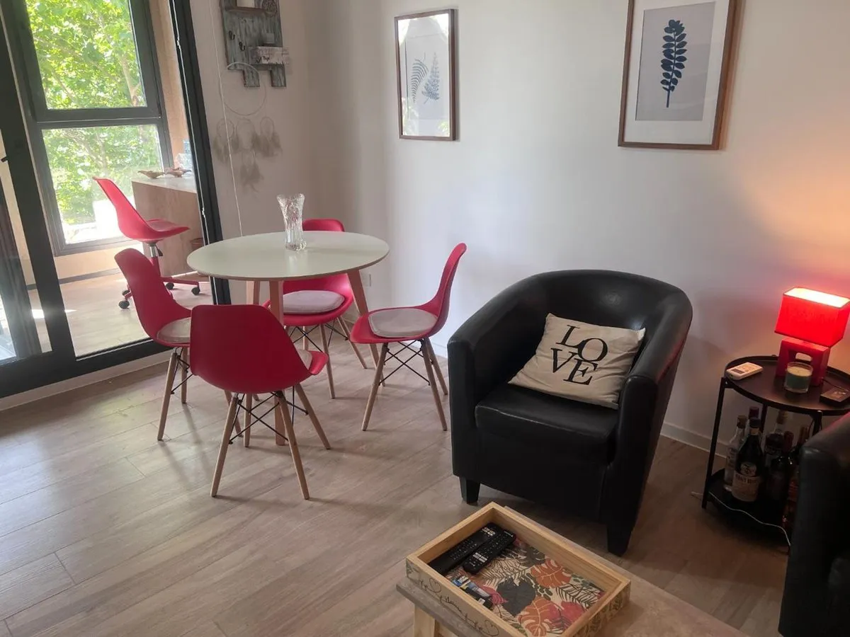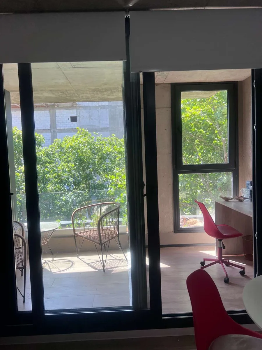 Apartamento tipo kitnet mobiliado em Villa Crespo, com varanda e espaço de home office independente. Tem água quente individual com calefão inteligente Ariston, aquecimento por piso radiante e ar-condicionado. A cozinha inclui cooktop vitrocerâmico, forno elétrico, e o ambiente conta com salão de usos múltiplos com área de churrasco, além de jardim e espaço para guardar bicicletas.