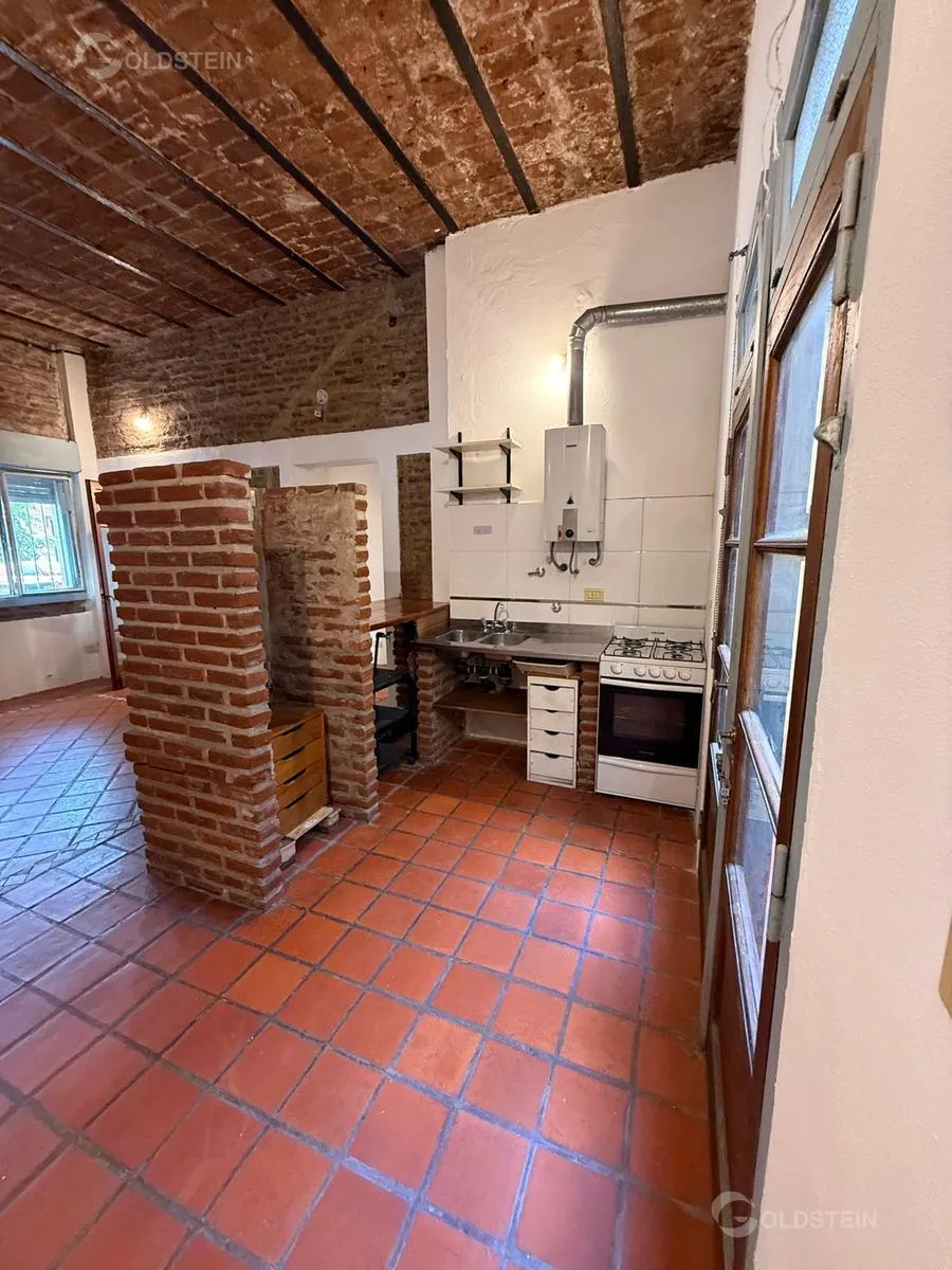 Kitnet para aluguel com pátio, sem condomínio, em planta baixa de frente. Fica na Dr. Luis Belaustegui, entre Rojas e Honorio Pueyrredón. A 200 m da Av. J. B. Justo e do Metrobus. Em bom estado.