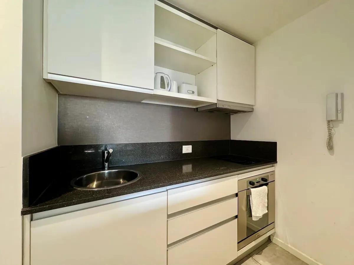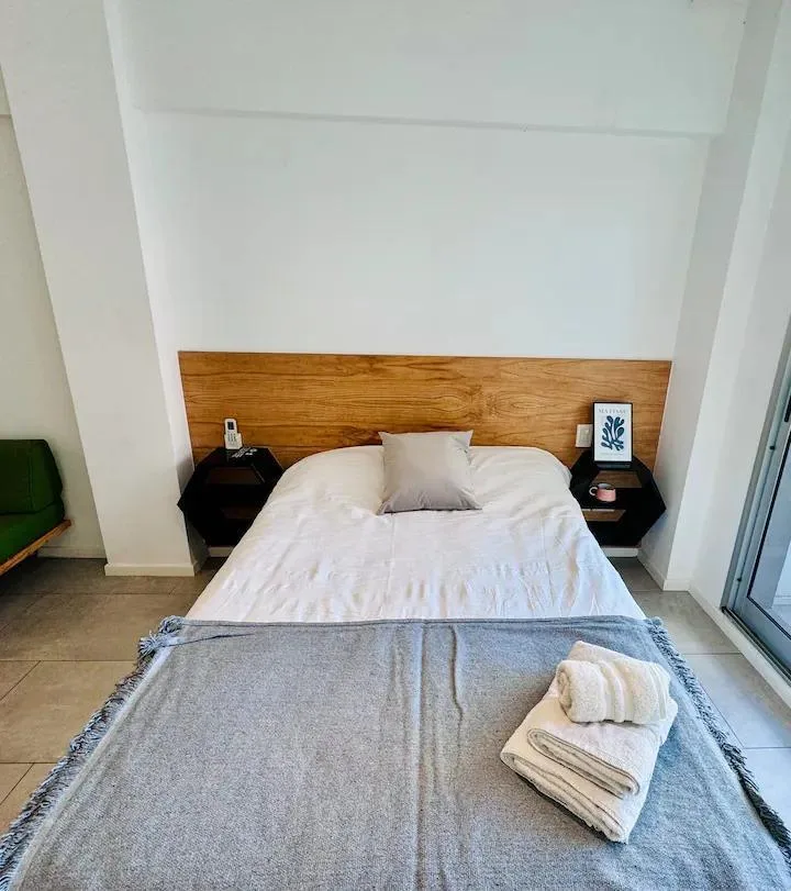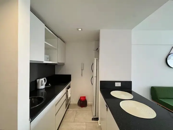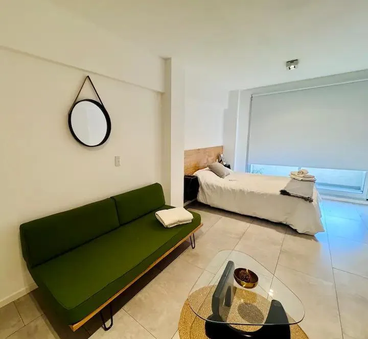 Kitnet em Julián Álvarez e Gascón, em Palermo, mobiliada. A unidade acomoda até 3 pessoas e tem cama de casal com roupa de cama, sofá-cama e banheiro completo com banheira e bidê. Cozinha separada com forno, 2 bocas, geladeira e utensílios; há acesso à internet Wi-Fi, ar-condicionado e lavadora. Inclui varanda com vista para a rua. Aluguel mensal: USD 650, com todos os custos incluídos. Requisitos: pagamento do 1º mês de aluguel, 1 mês de caução (fiança) reembolsável ao fim do contrato e honorár