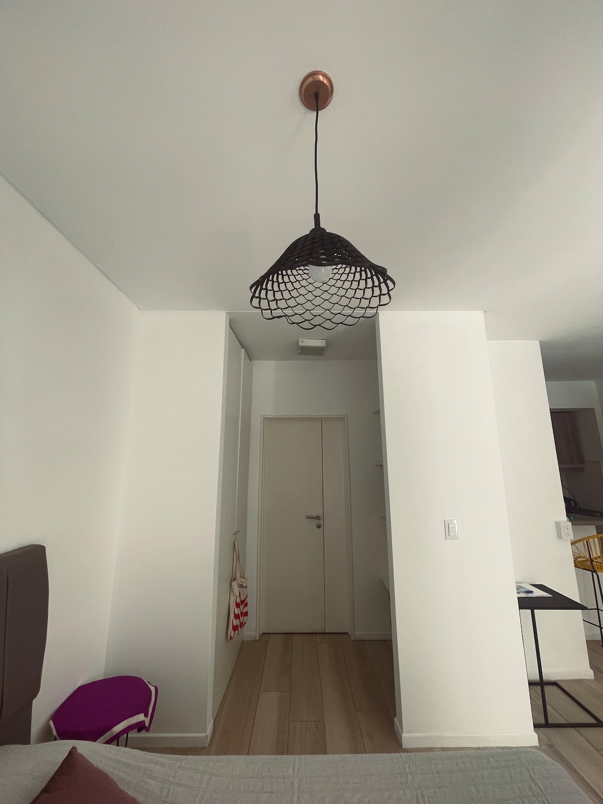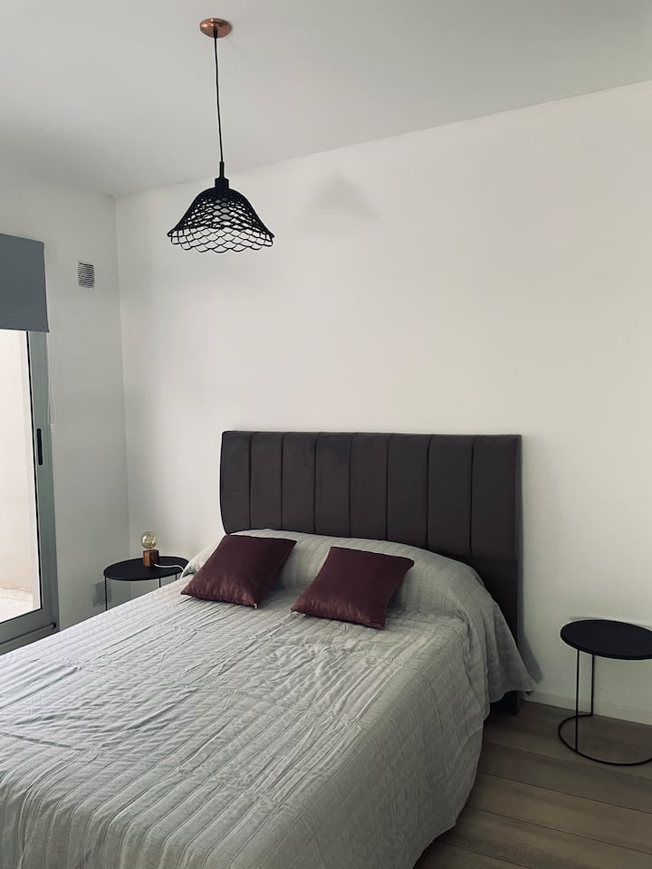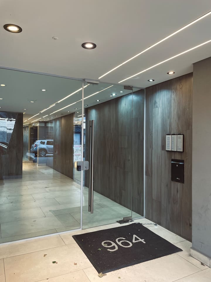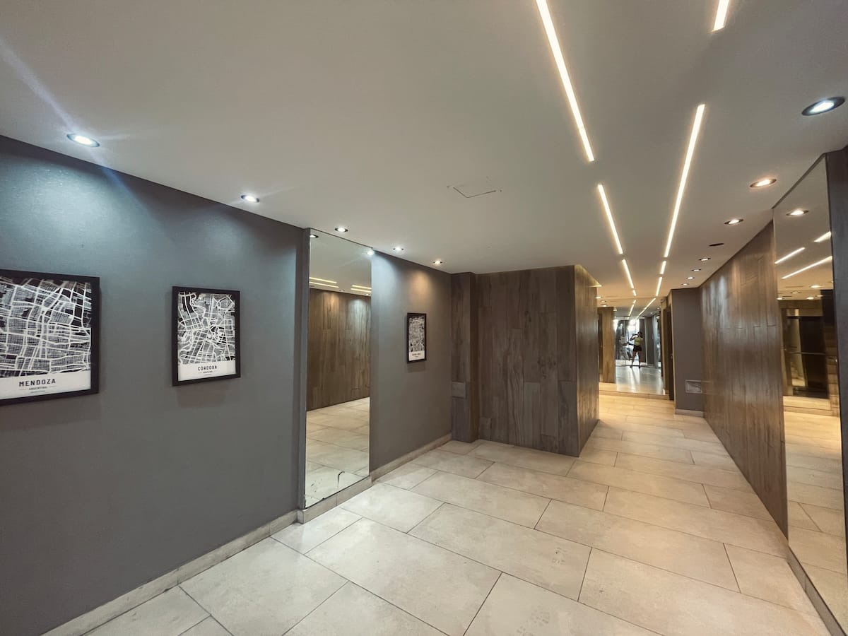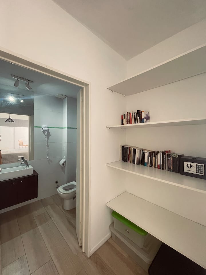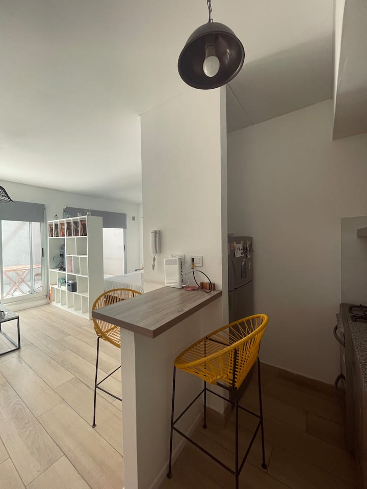 Kitnet em Villa Crespo, com pátio privativo. O imóvel é descrito como mobiliado e decorado, com espaço para plantas e área de biblioteca. O prédio tem lavanderia e SUM com área de churrasco. A localização informada é a proximidade da Movistar Arena.