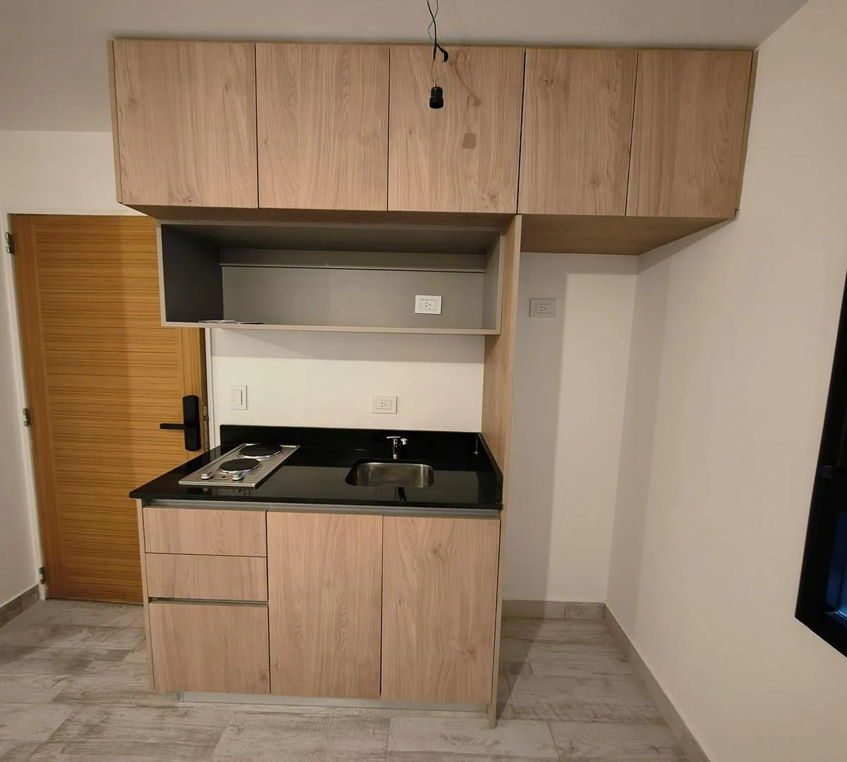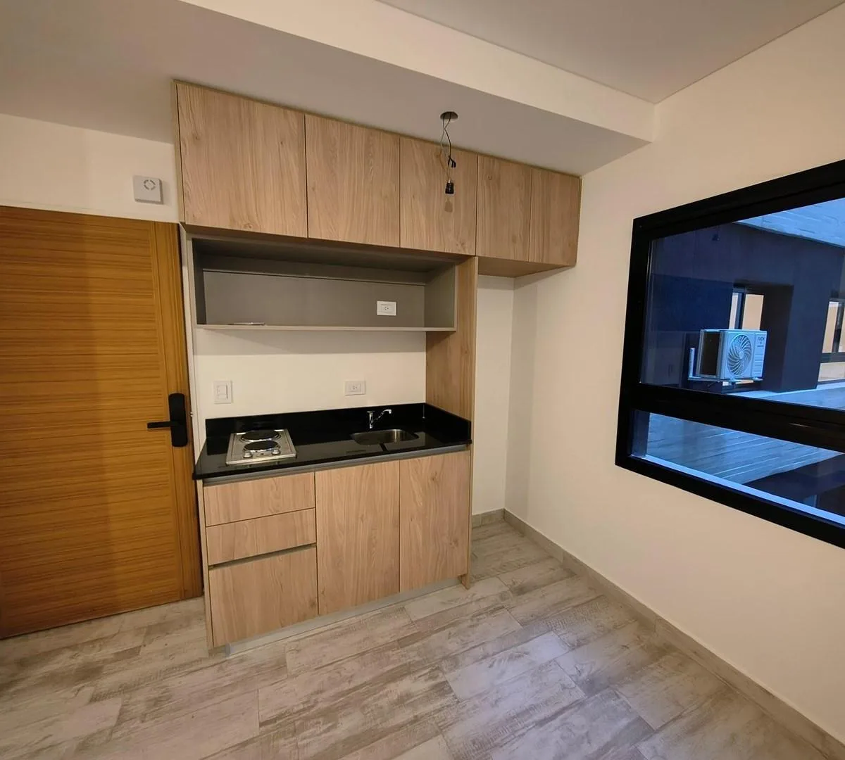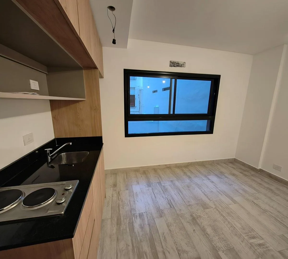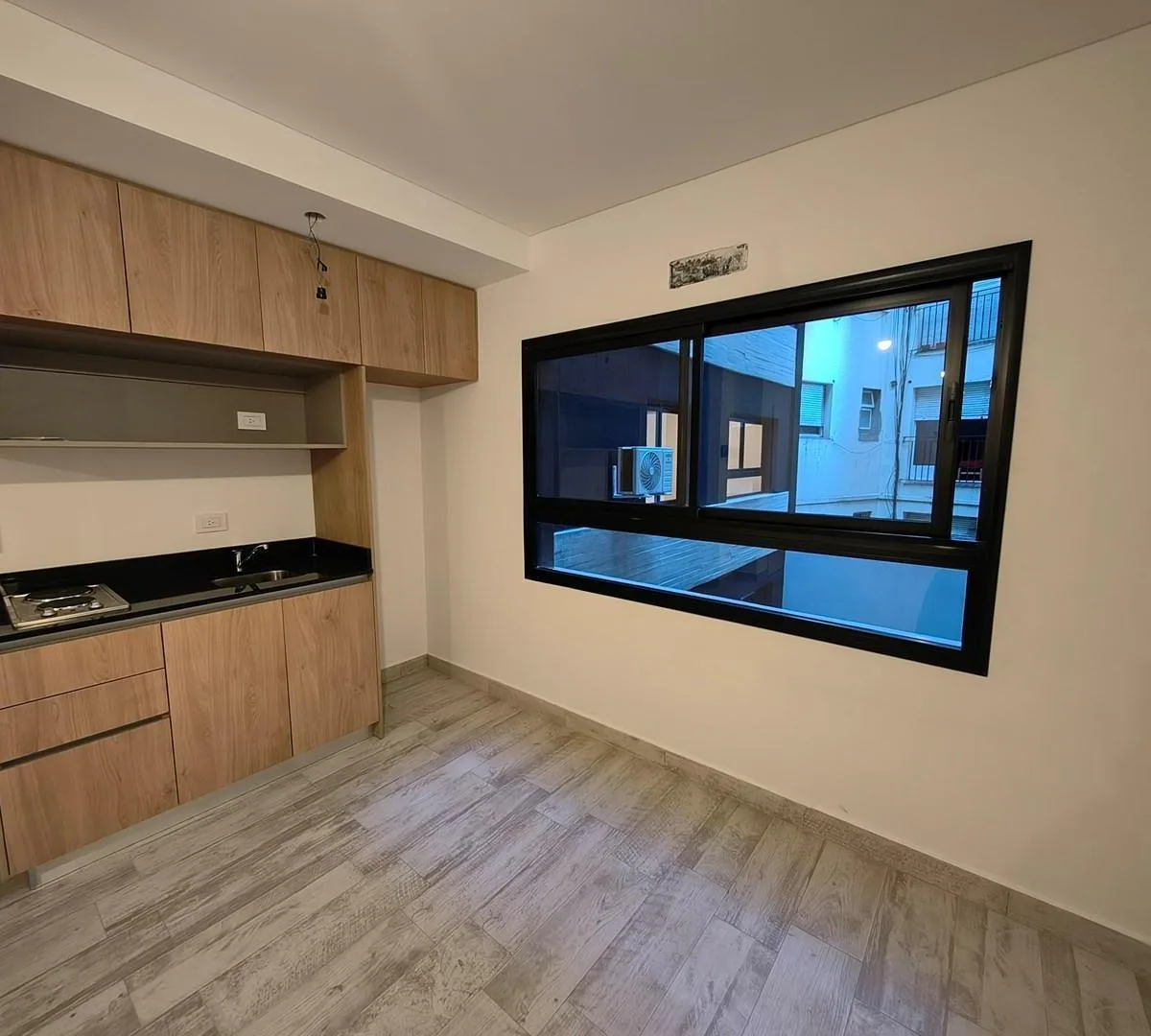 Kitnet de 1 ambiente novo (nunca habitado) em Villa Crespo. Cozinha americana com armários alto e baixo e fogão elétrico de 2 bocas; banheiro com box de ducha. Pisos de porcelanato, interfone com visor e fechadura digital. Condomínio com baixa cobrança e com coworking, lavanderia e área de churrasco. Contrato de 2 anos com reajuste trimestral pelo IPC. Não aceita animais de estimação.
