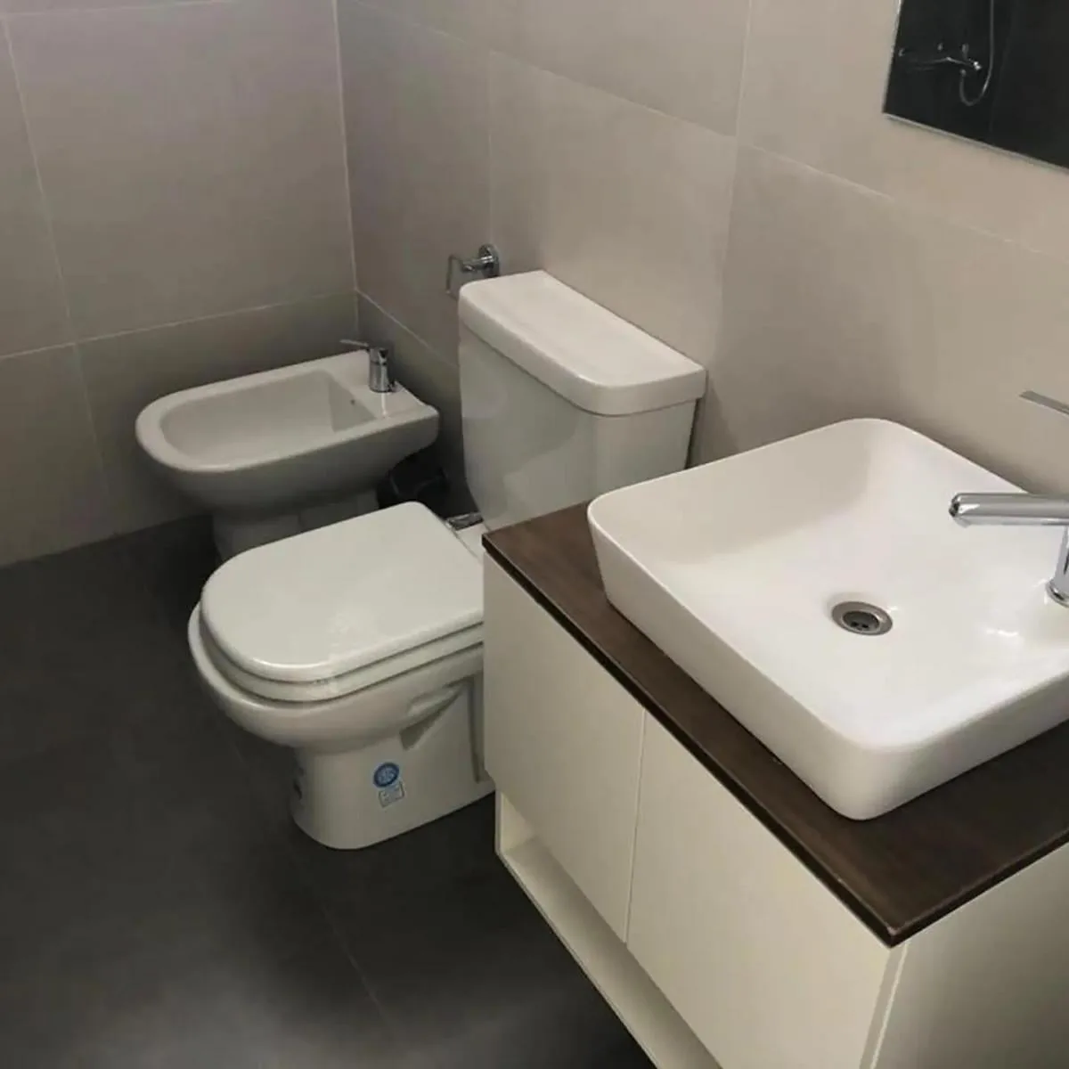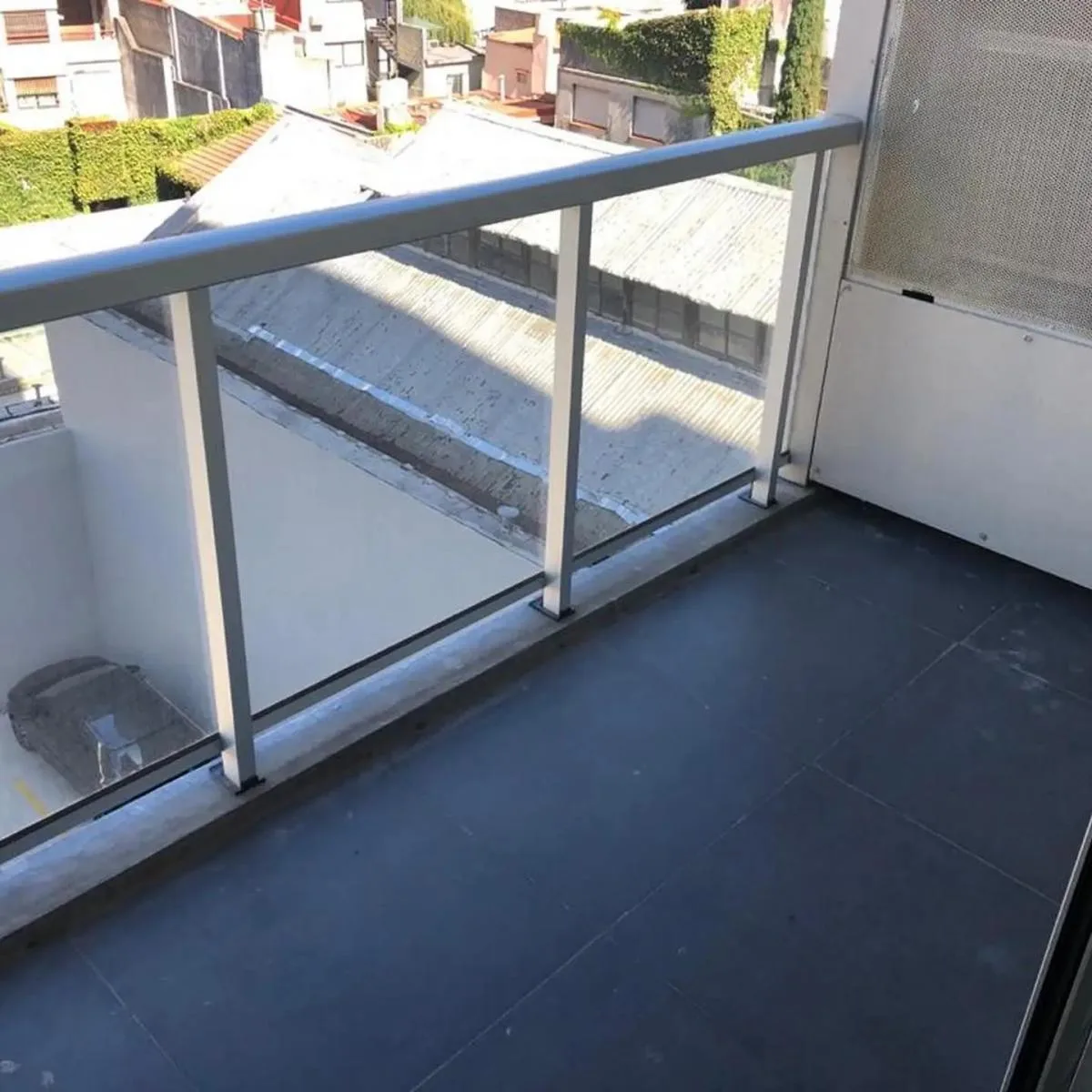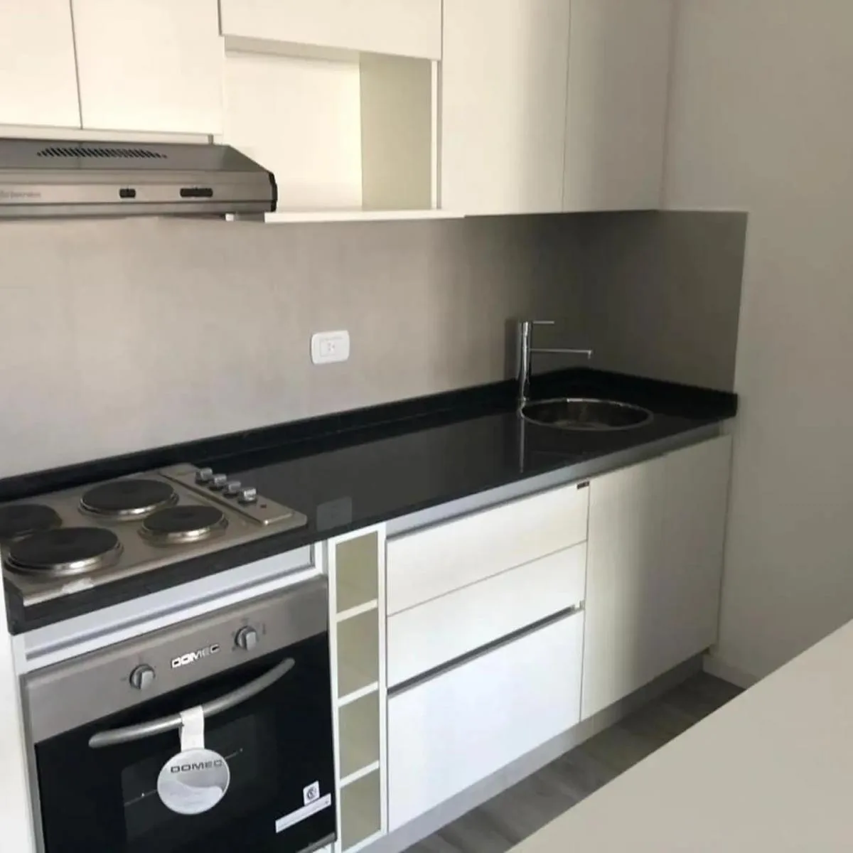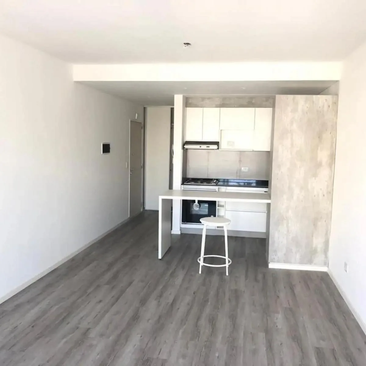 Kitnet de 1 ambiente de frente para os fundos (contrafrente), com 32 m² totais, varanda e churrasqueira privativa. Conta com armário, banheiro completo e ar-condicionado split, apta para uso profissional. O condomínio inclui o serviço de Aysa. O prédio tem lavanderia (laundry) e piscina. A unidade é acessível para pessoas com deficiência física, conforme a Lei 5115.