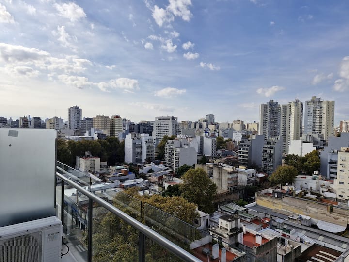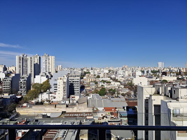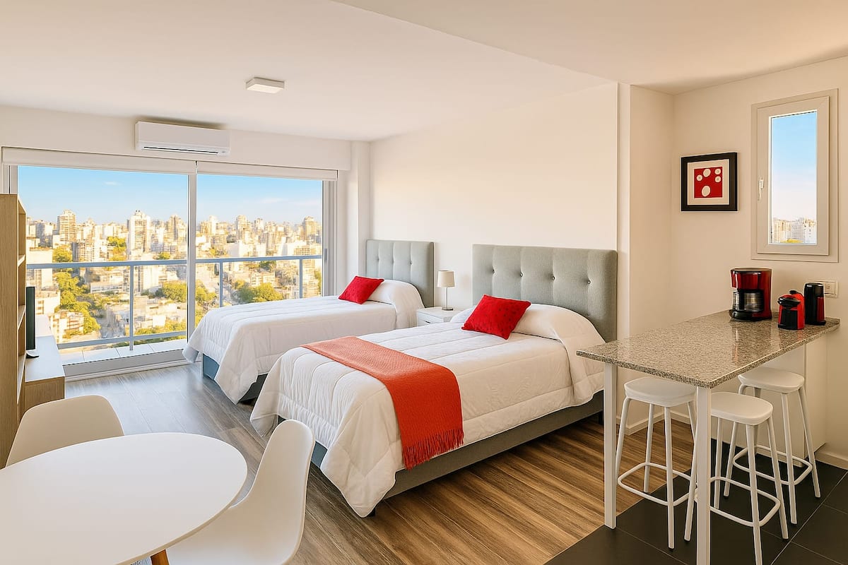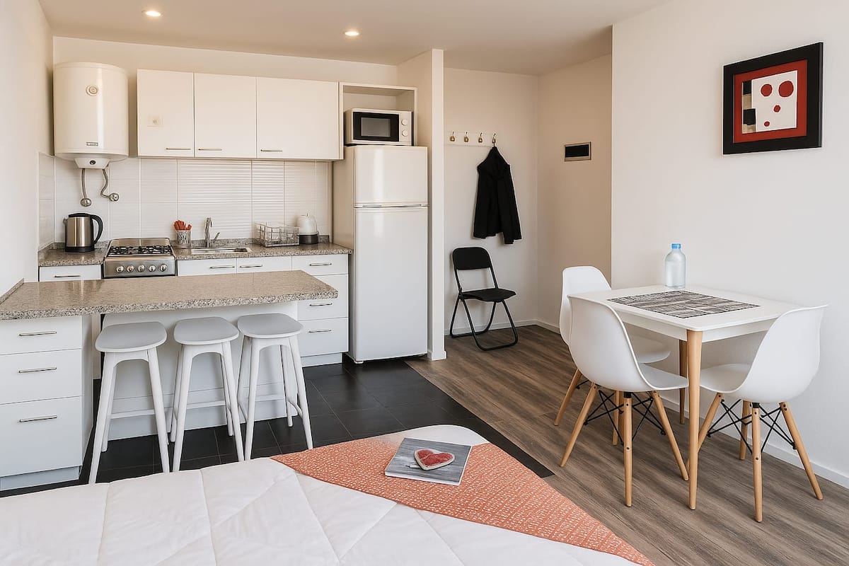 Kitnet em Villa Crespo, a 200 metros da Movistar Arena. Unidade com cozinha compacta, área de refeições e banheiro com box tipo Scottish shower, com grandes janelas e muita entrada de luz natural. Espaço dimensionado para até 4 hóspedes.