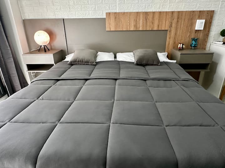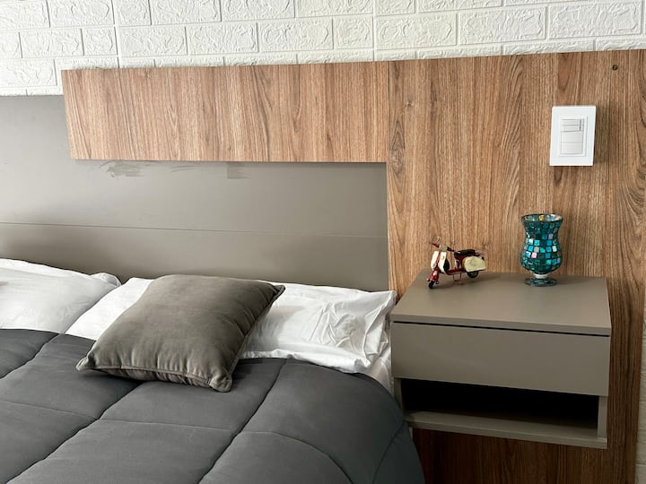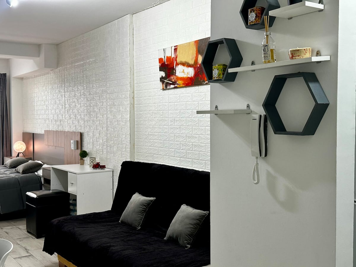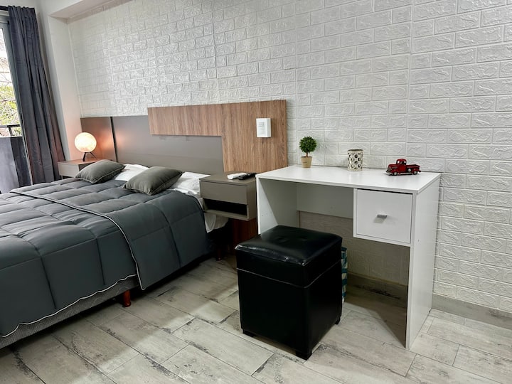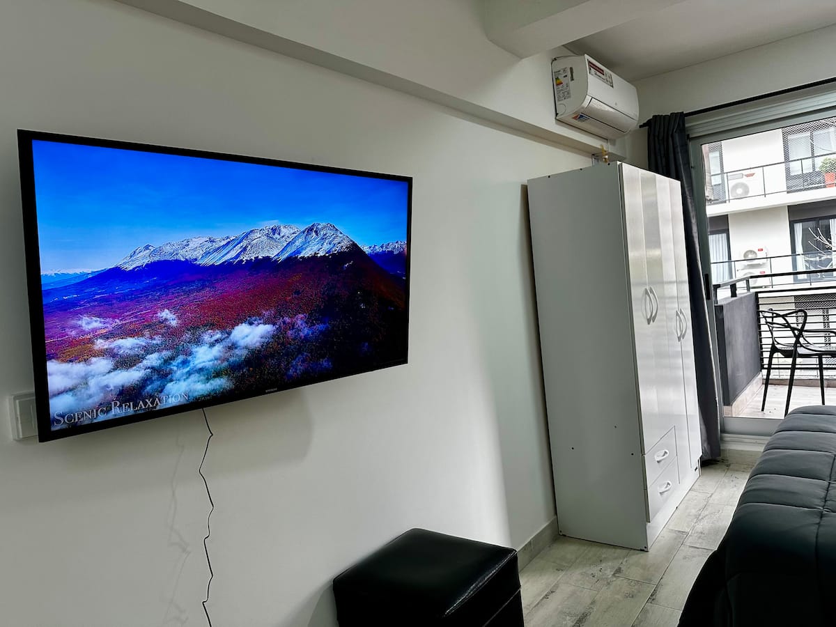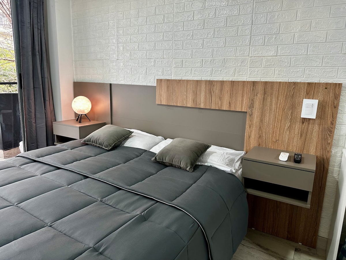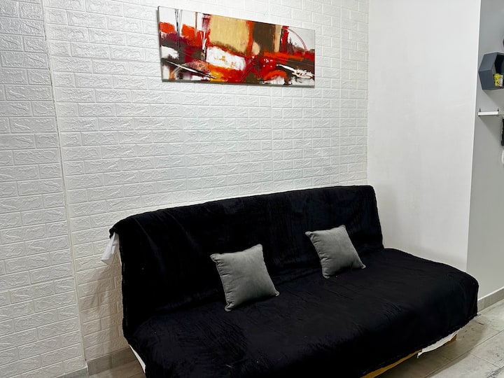 Kitnet em Villa Crespo para até 3 pessoas, em prédio com piscina, a poucos quarteirões do Hospital Italiano e do Sanatorio Güemes. Apartamento mobiliado com cama de casal e sofá-cama, cozinha completa, ar-condicionado e WiFi.
