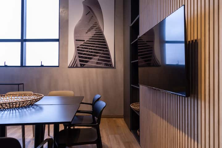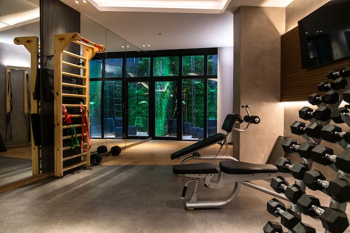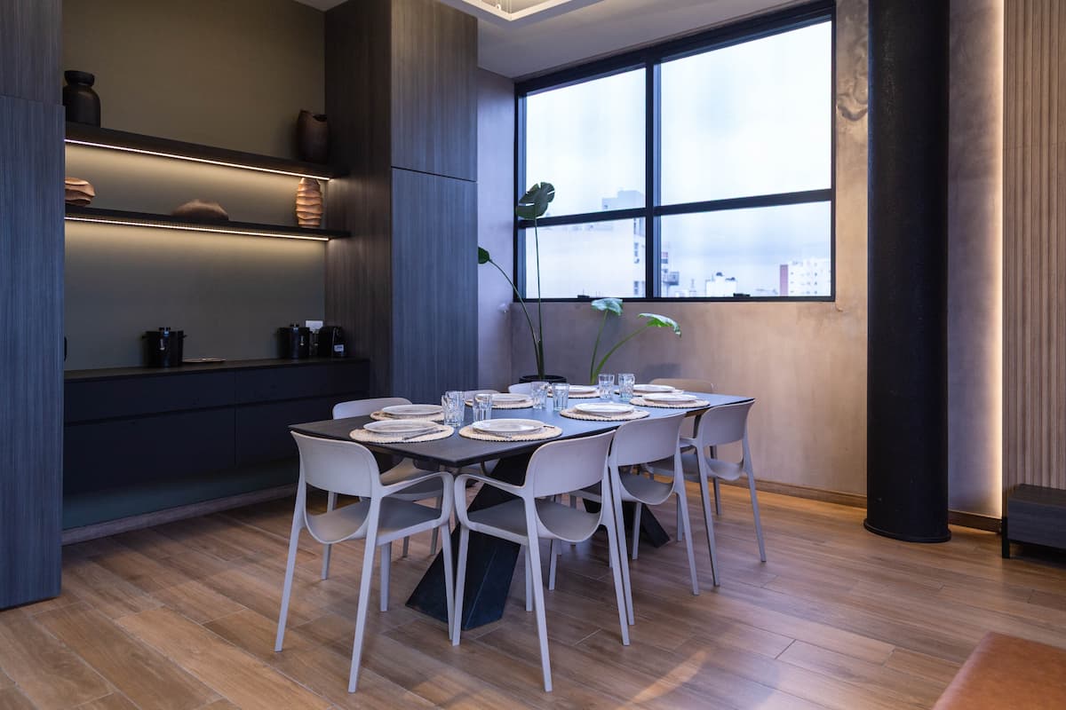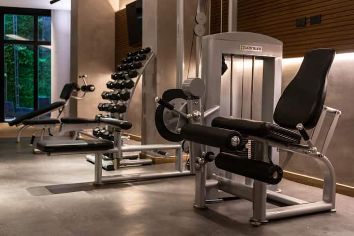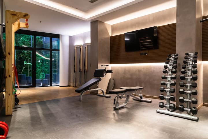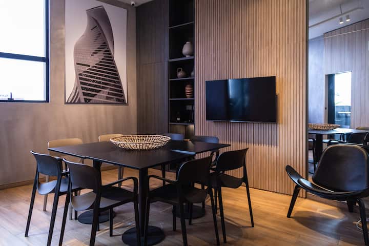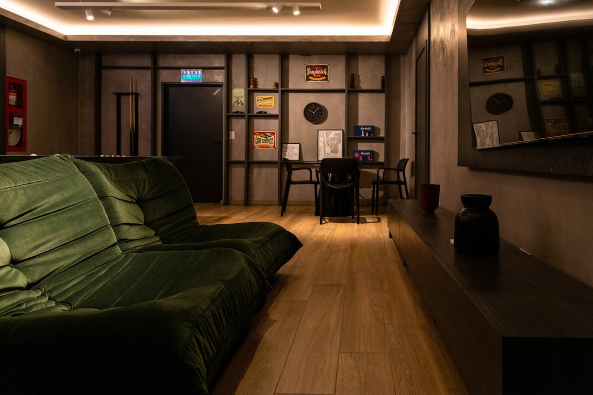 Kitnet em Villa Crespo, com piscina, academia equipada, áreas de coworking e lavanderia no prédio. A descrição não informa metragem, andar ou estado de mobiliário.