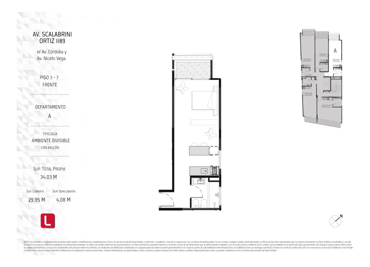 Kitnet com varanda em Villa Crespo