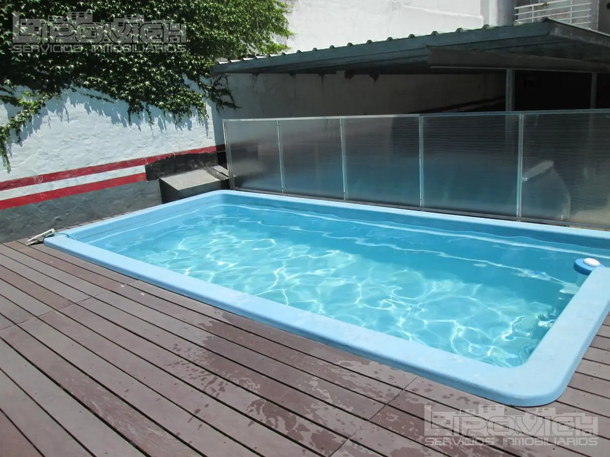 Kitnet (estúdio) para alugar com 3º andar, de fundos, com varanda. A partir de março, com possibilidade de uso profissional. Cozinha e ambiente sem mobília não são informados; o anúncio menciona lavanderia, piscina e área de churrasco no edifício. Contrato de 2 anos com reajuste trimestral por IPC/ICL: 1 mês de adiantamento e depósito de US$ 500. ABL fica a cargo do inquilino. É necessário comprovar renda com contracheque que some pelo menos o dobro do aluguel, além de fiador com vínculo comprov