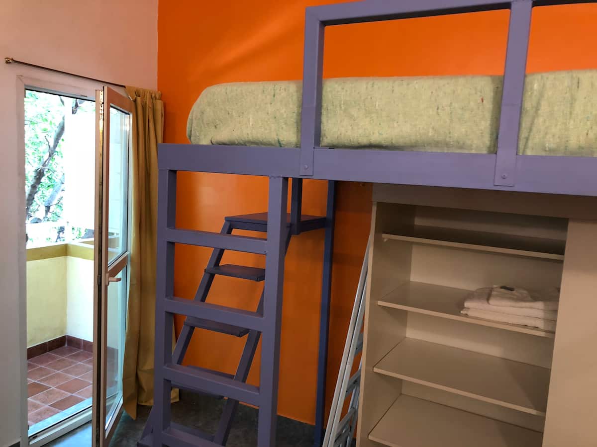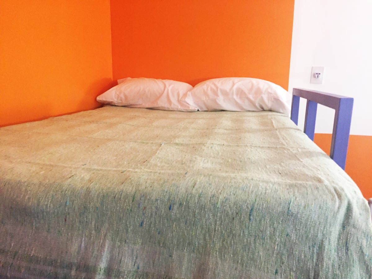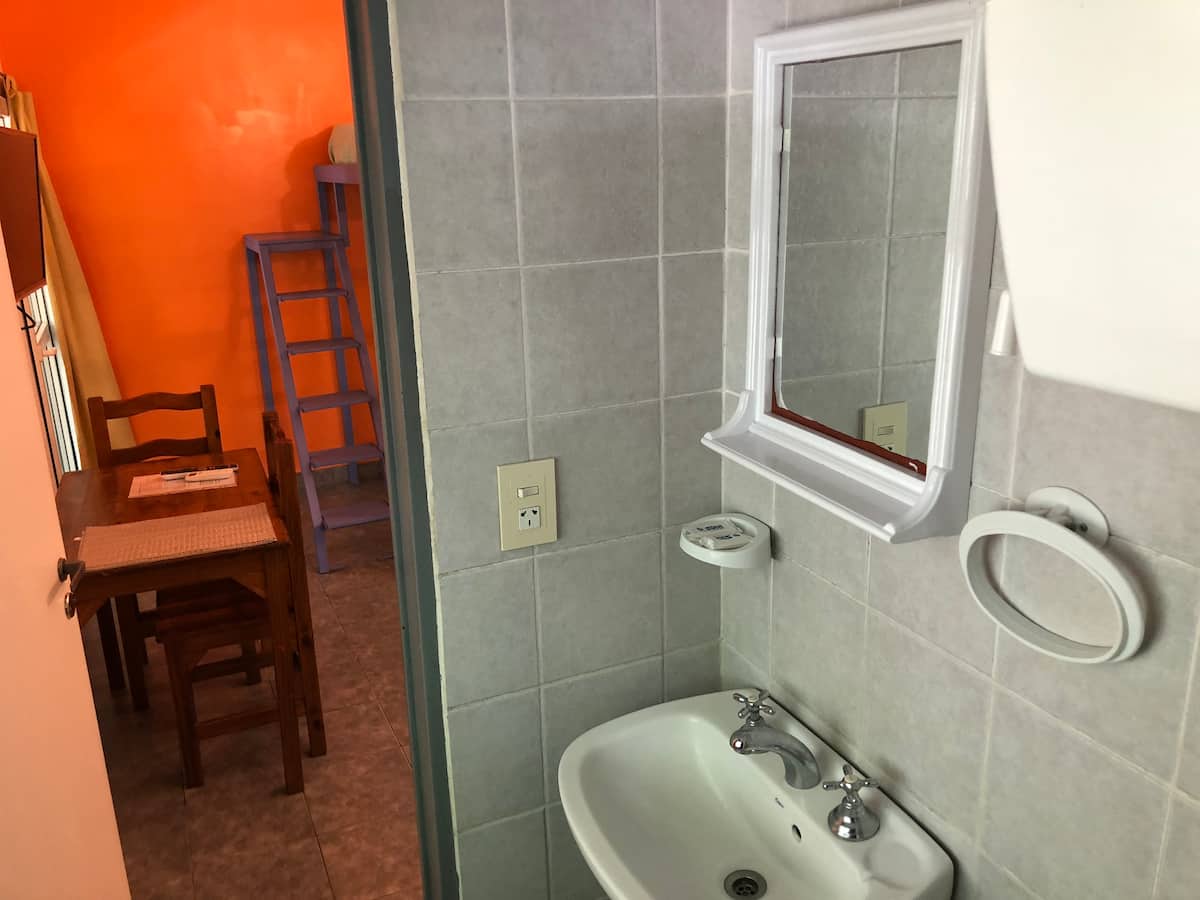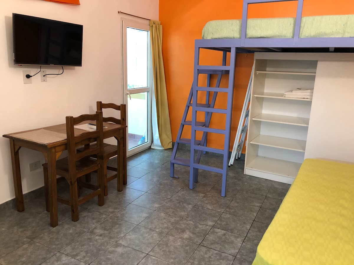 Kitnet em Villa Crespo, no 2º andar, de frente para a rua. Loft mobiliado em estilo moderno, com porta de vidro duplo e varanda privativa. Possui cozinha com fogão elétrico de 1 queimador, chaleira elétrica, micro-ondas e geladeira; banheiro privativo; TV LED de 32", Wi-Fi e TV a cabo; ar-condicionado e aquecimento. Acesso comum à área de terraço no 3º andar, com tanque de lavar roupa e varal. A estadia máxima é de 100 dias e pode ser estendida. Não é oferecido como moradia permanente.