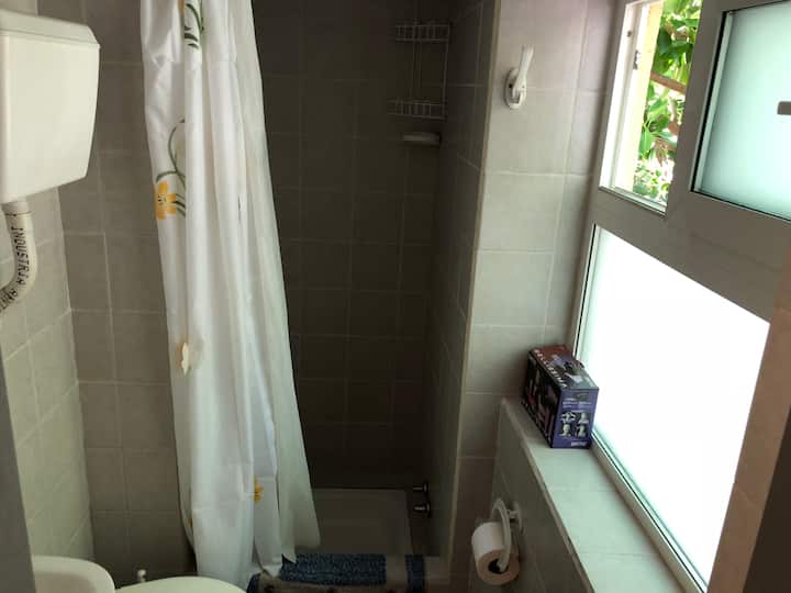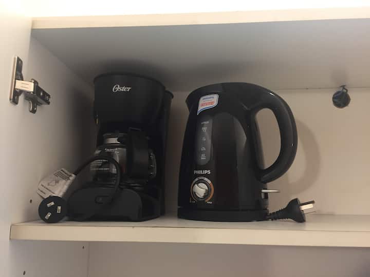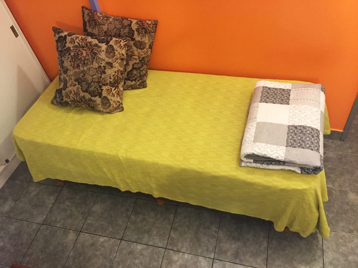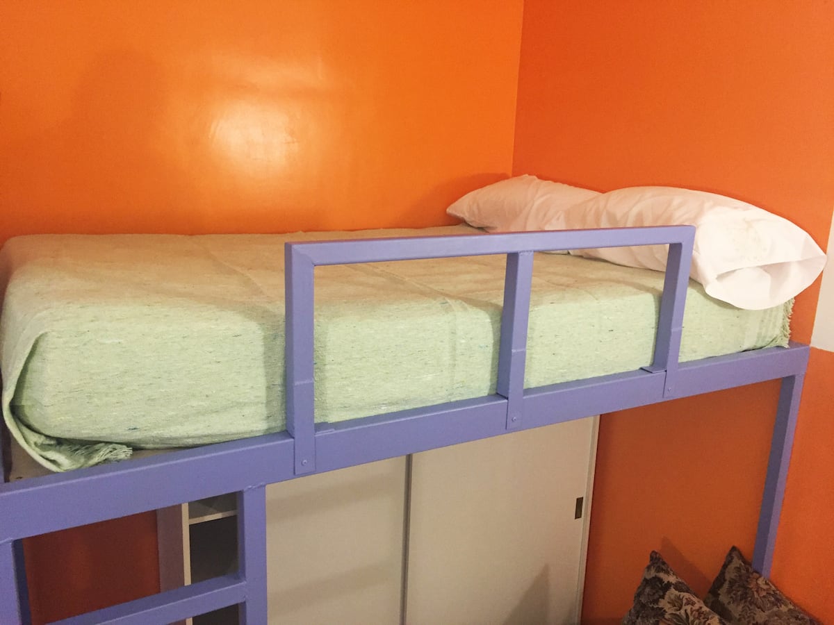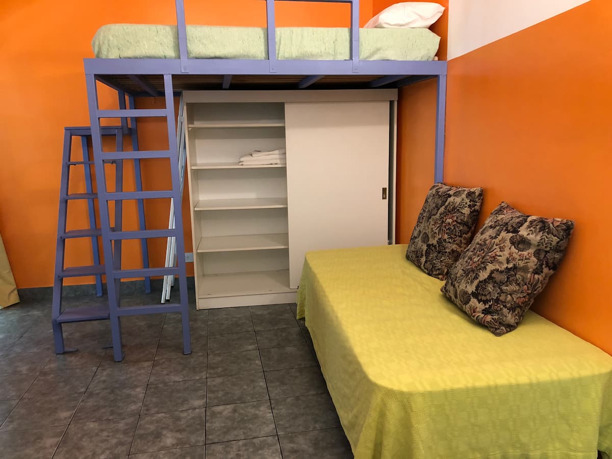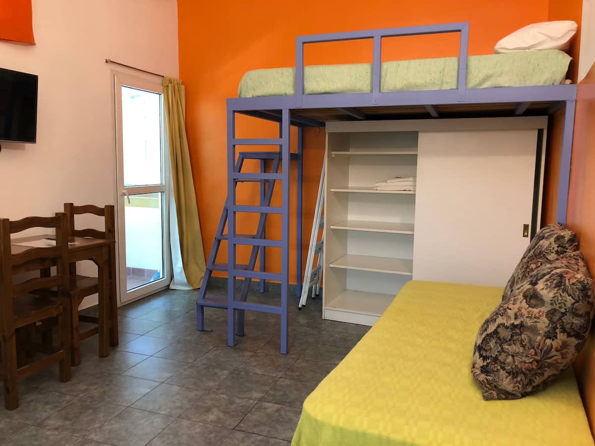 Kitnet em Villa Crespo, no 2º andar, de frente para a rua. Loft mobiliado em estilo moderno, com porta de vidro duplo e varanda privativa. Possui cozinha com fogão elétrico de 1 queimador, chaleira elétrica, micro-ondas e geladeira; banheiro privativo; TV LED de 32", Wi-Fi e TV a cabo; ar-condicionado e aquecimento. Acesso comum à área de terraço no 3º andar, com tanque de lavar roupa e varal. A estadia máxima é de 100 dias e pode ser estendida. Não é oferecido como moradia permanente.