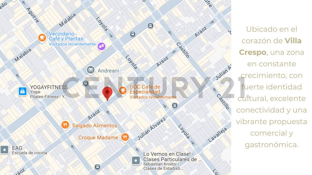 Prédio em bloco em Villa Crespo, com 1.000 m² cobertos e plantas livres. Permite usos como local comercial, escritórios, depósitos e desenvolvimento residencial, com possibilidades de áreas como entrepiso, terraço, pátio e vagas de garagem. O edifício inclui aquecimento central, força motriz e monta-carga. Fica a 3 minutos da estação Ángel Gallardo do Subte B, a 1 quarteirão da Av. Raúl Scalabrini Ortiz e a 3 quadras da Av. Corrientes.