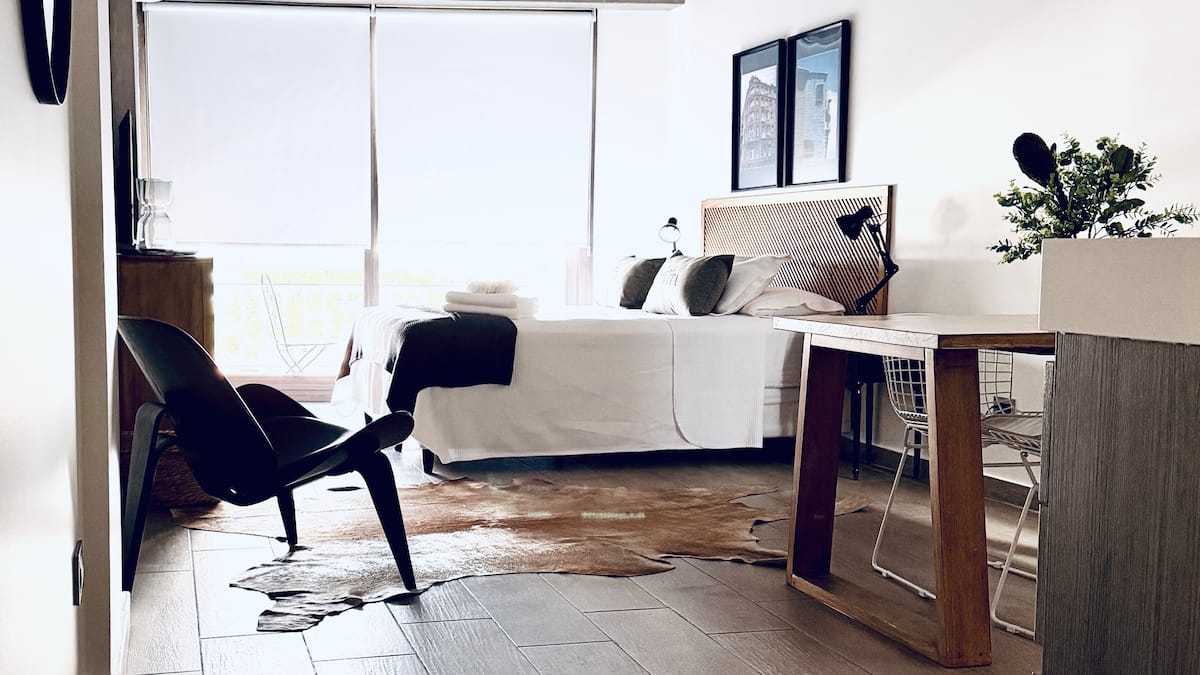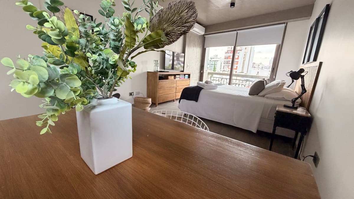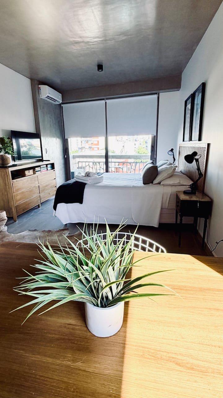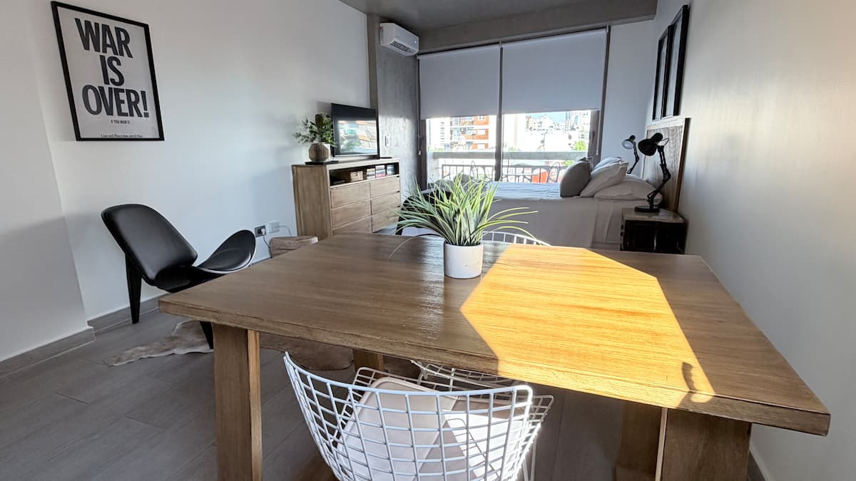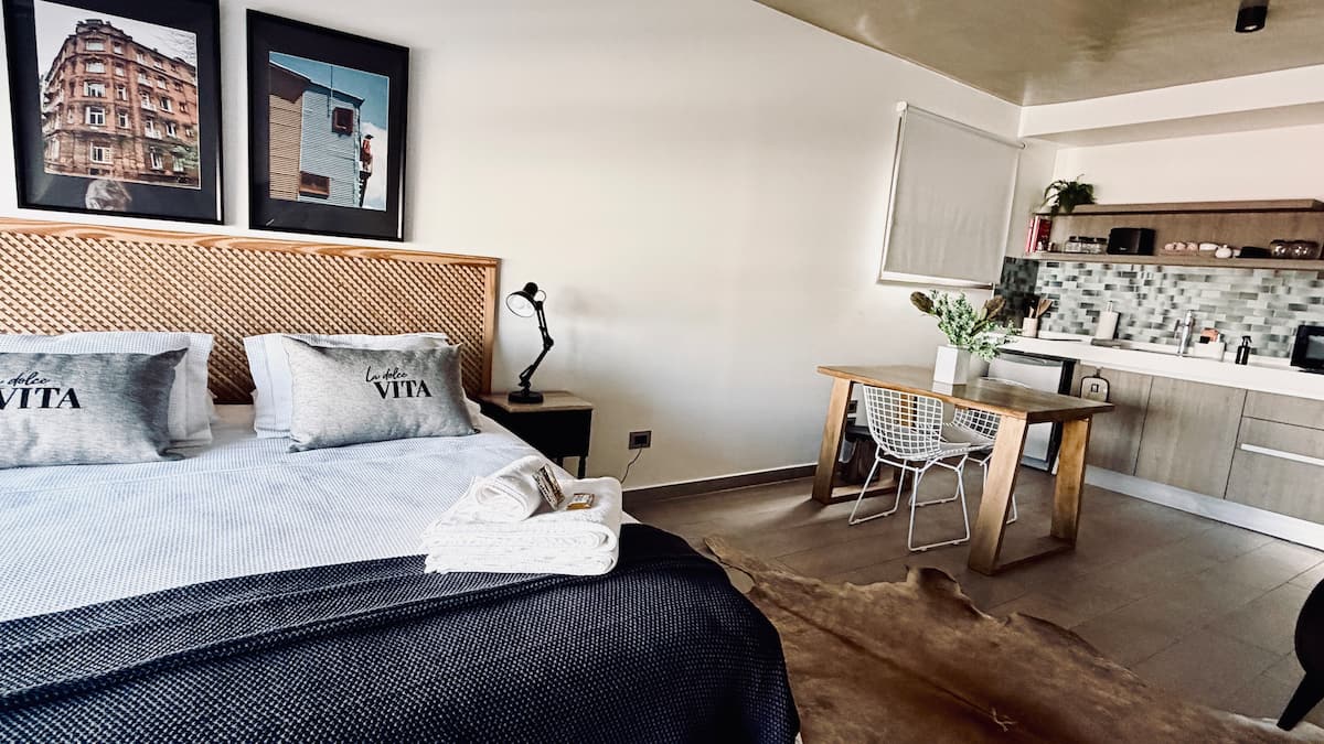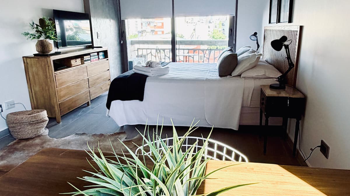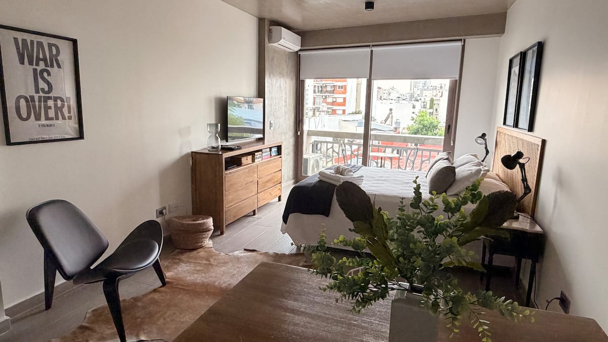 Kitnet mobiliada em Villa Crespo, em um prédio com estilo japonês e murals do artista Adry Balbo. O imóvel conta com área integrada, cama queen, poltrona BKF, TV com streaming e varanda. No último andar há áreas para relaxar ou trabalhar, além de rooftop.