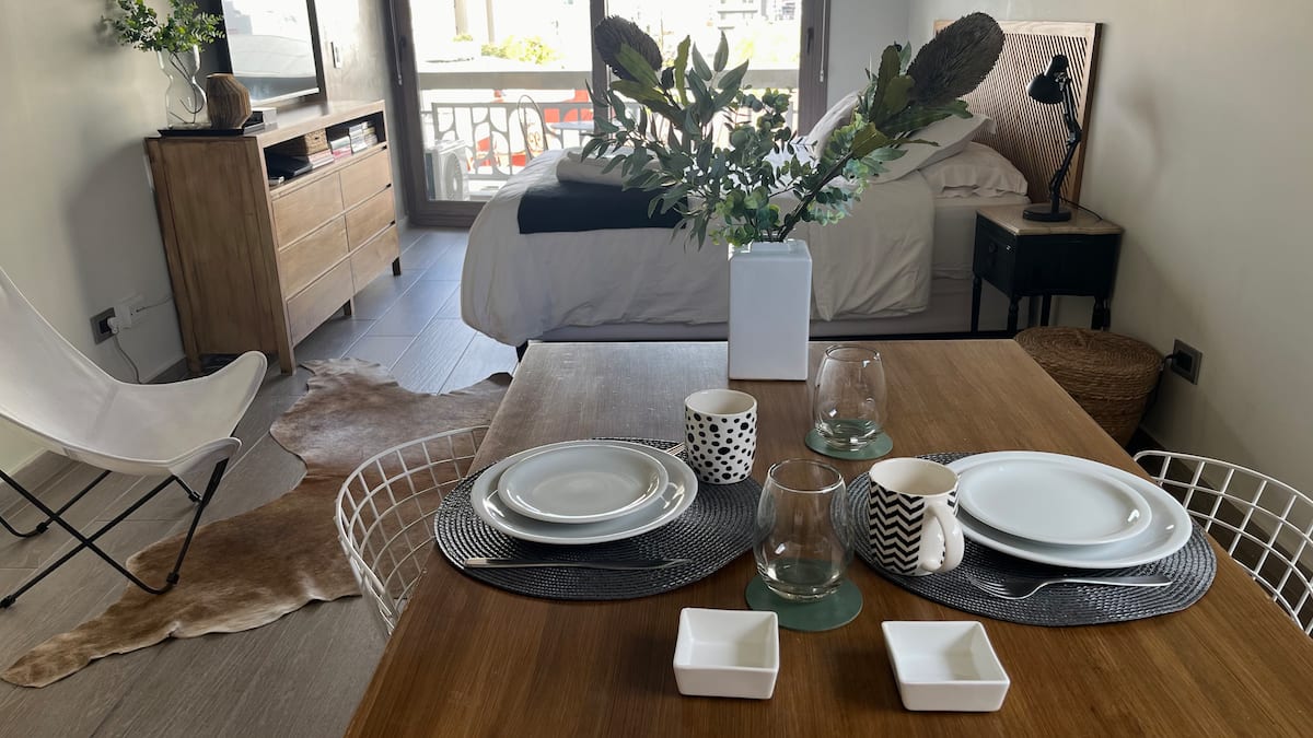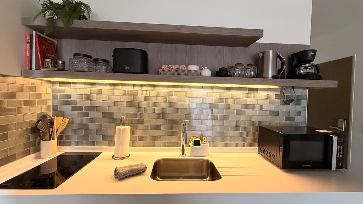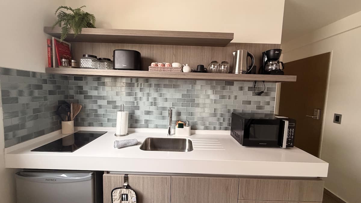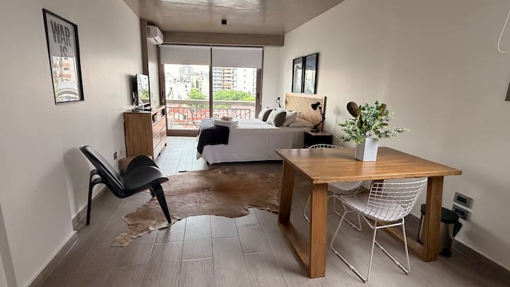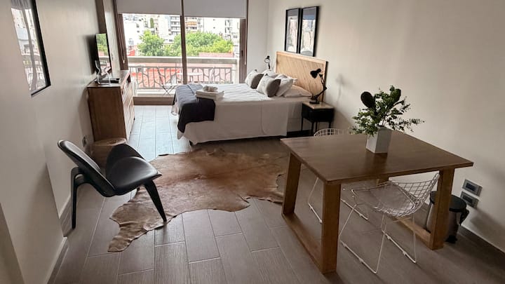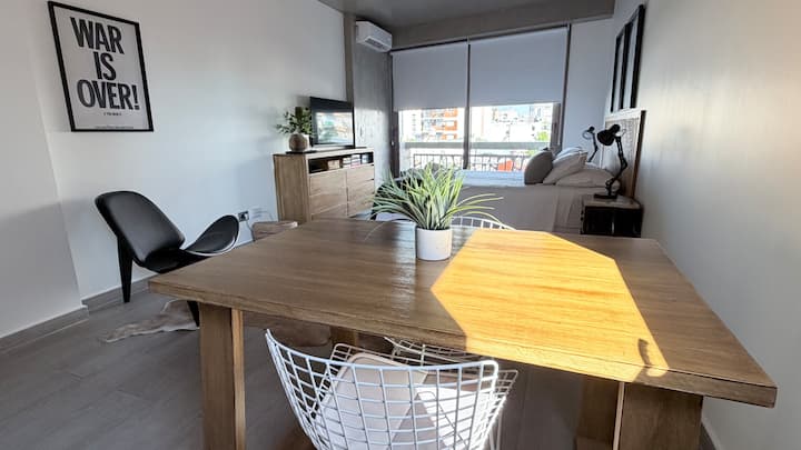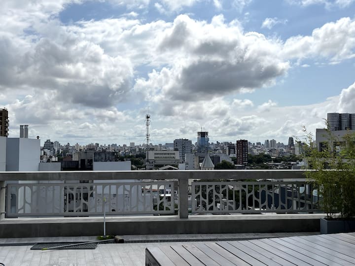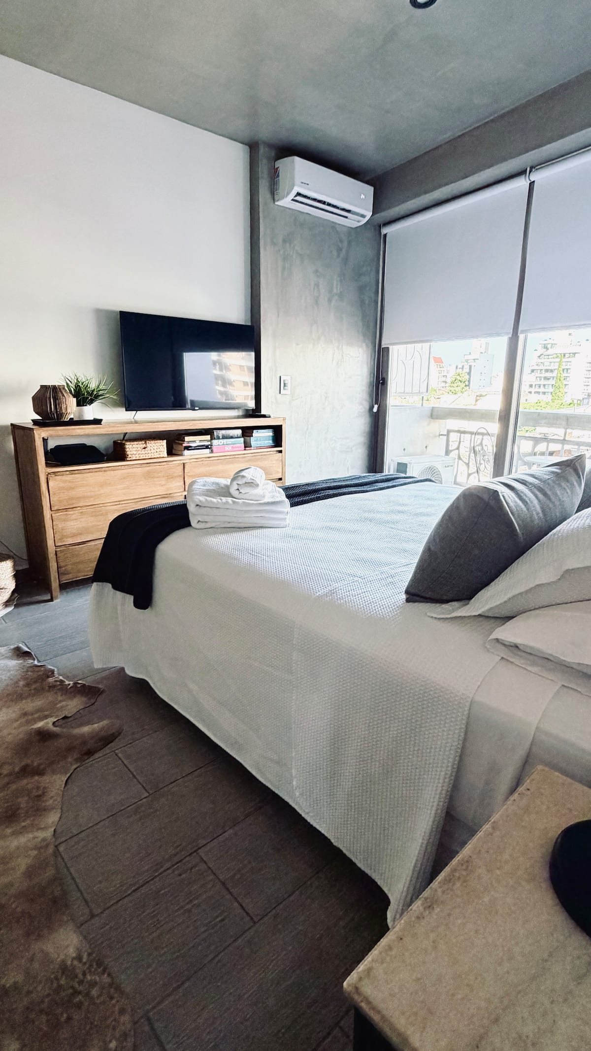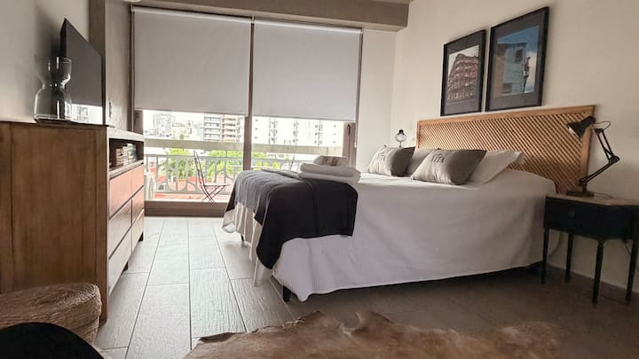 Kitnet mobiliada em Villa Crespo, em um prédio com estilo japonês e murals do artista Adry Balbo. O imóvel conta com área integrada, cama queen, poltrona BKF, TV com streaming e varanda. No último andar há áreas para relaxar ou trabalhar, além de rooftop.