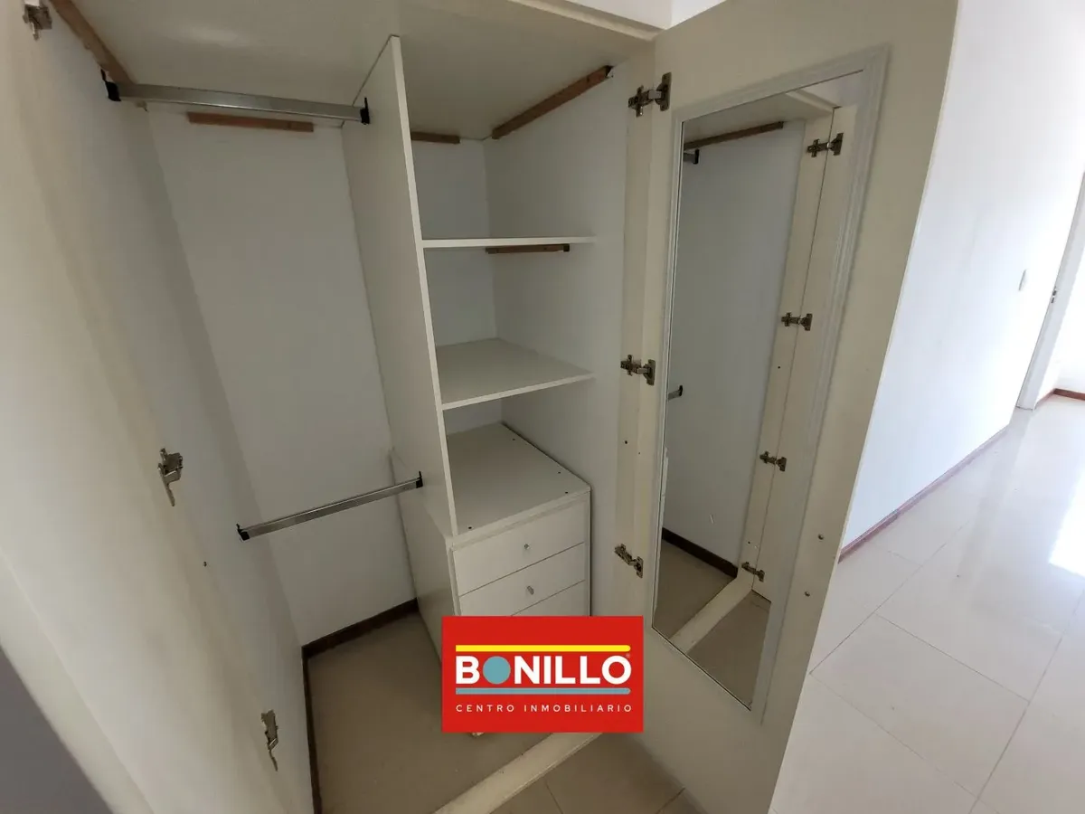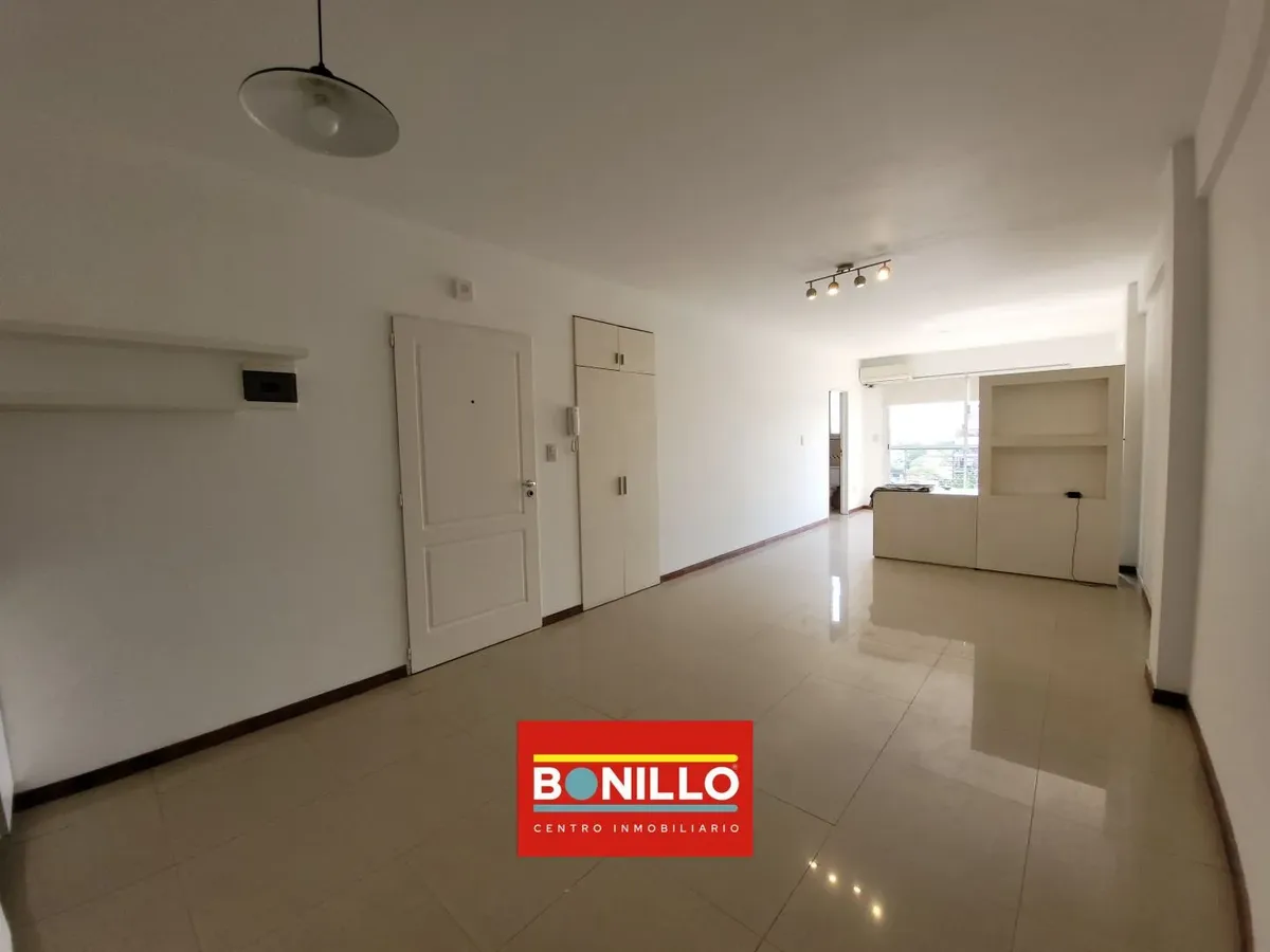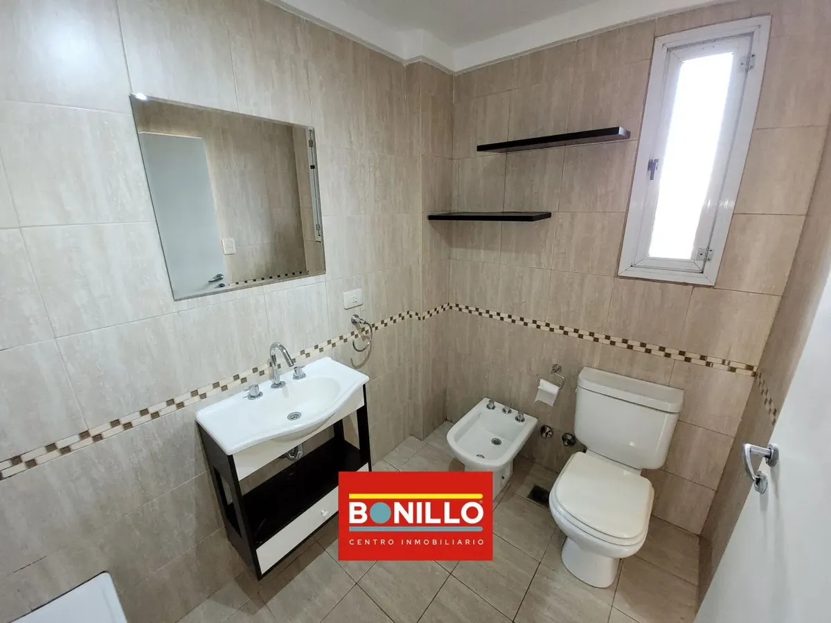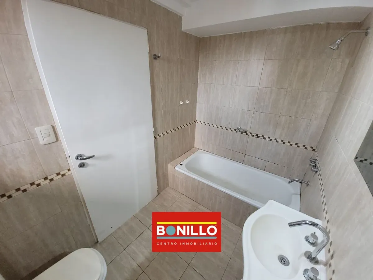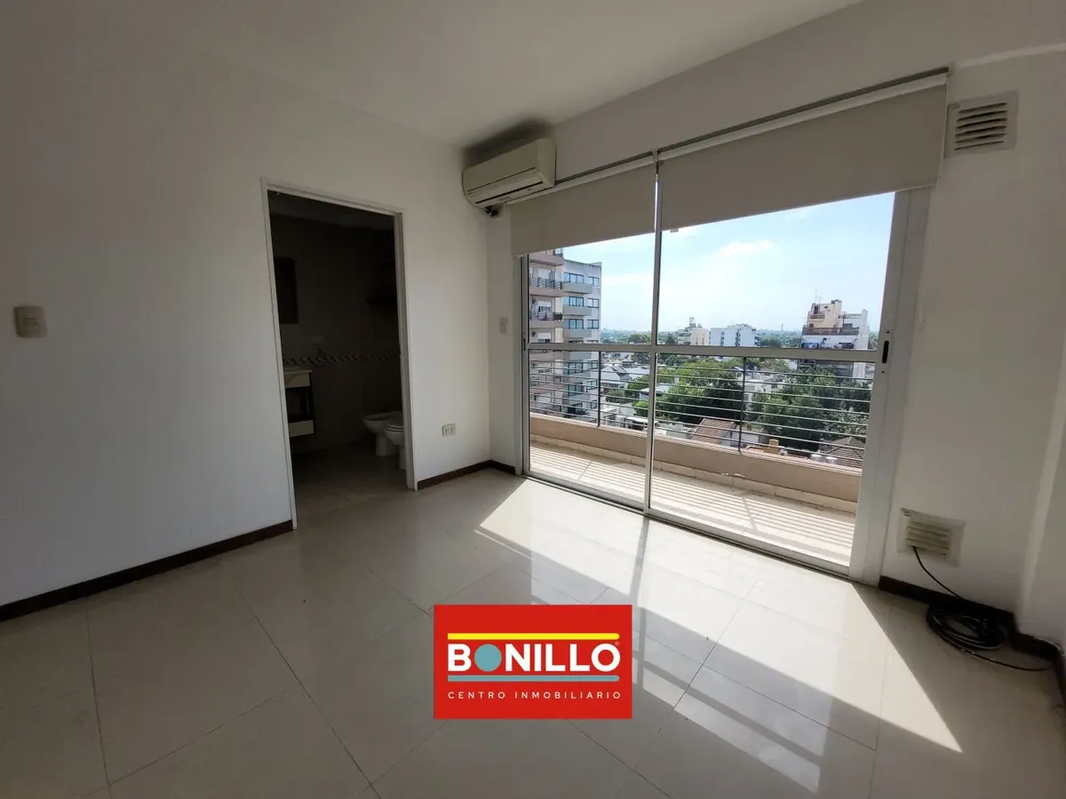 Kitnet (1 ambiente) na parte de fundos (contrafrente), com varanda, para locação em Villa del Parque. Possui aparelho de cozinha com gás natural, conexão para máquina de lavar roupa de carga frontal e pequeno armário. Banheiro completo com janela voltada para a varanda e janela na cozinha, permitindo ventilação cruzada. Contrato de 2 anos com reajuste trimestral pelo IPC. Não aceita animais.