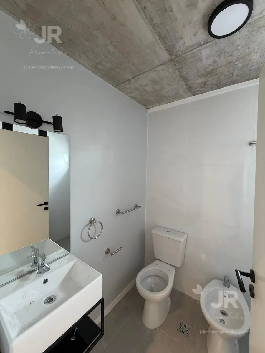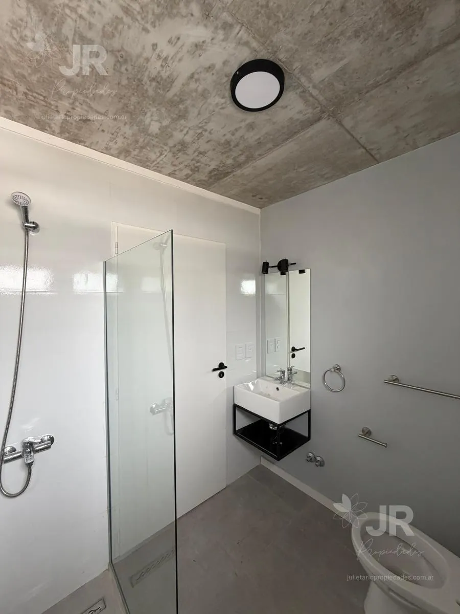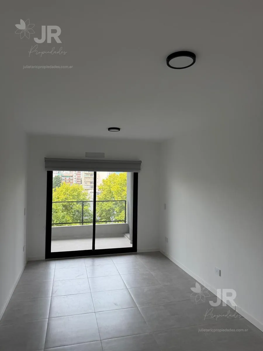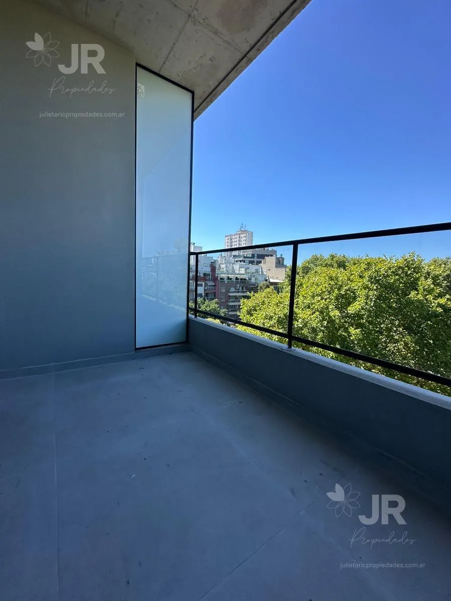 Kitnet novo (nunca habitado) em Villa del Parque, com 1 ambiente e varanda. Cozinha integrada com móveis planejados (bancada e armários aéreos), banheiro completo e pisos de porcelanato. Janelas de alumínio e pré-instalação para ar-condicionado. Varanda descrita como espaçosa. Fica a 200 metros do centro comercial da Calle Cuenca e a 3 quadras da Estação Villa del Parque (Trem San Martín). Há linhas de coletivos e acesso ao Metrobús na Av. San Martín; o anúncio menciona também a proximidade da á